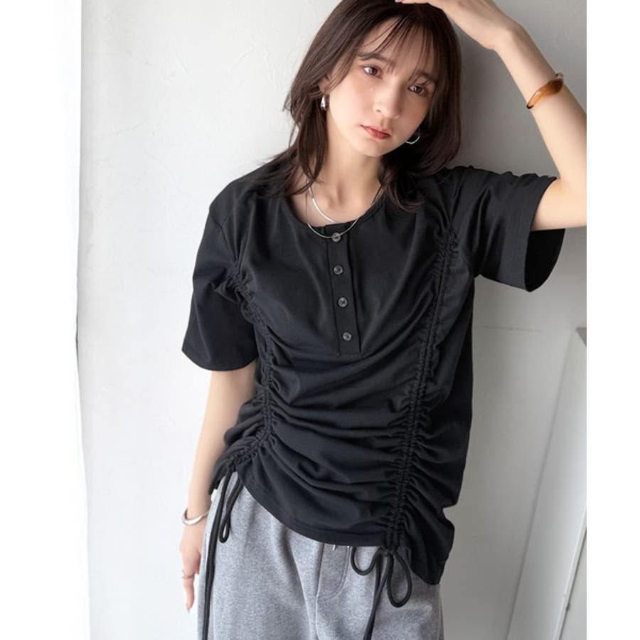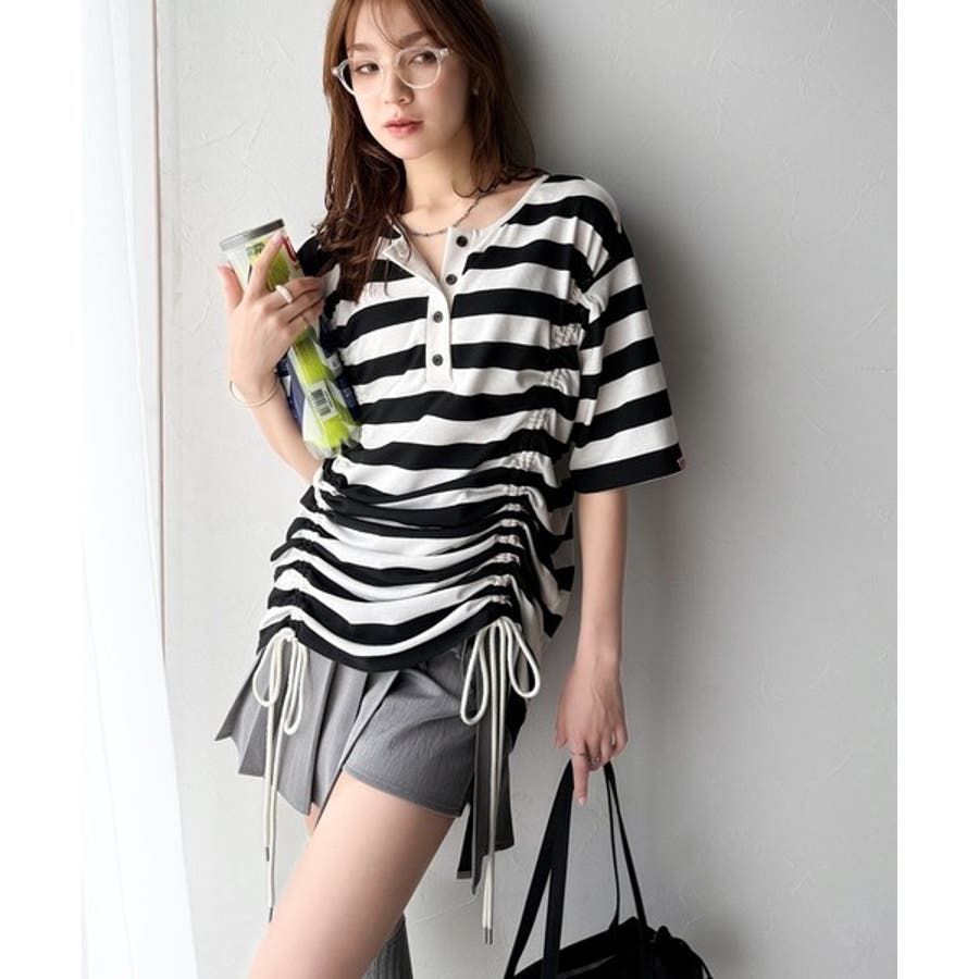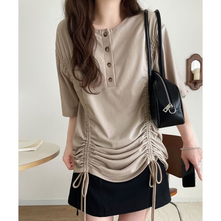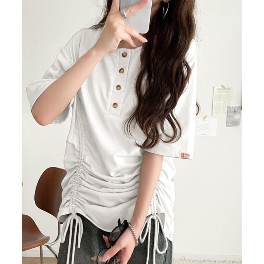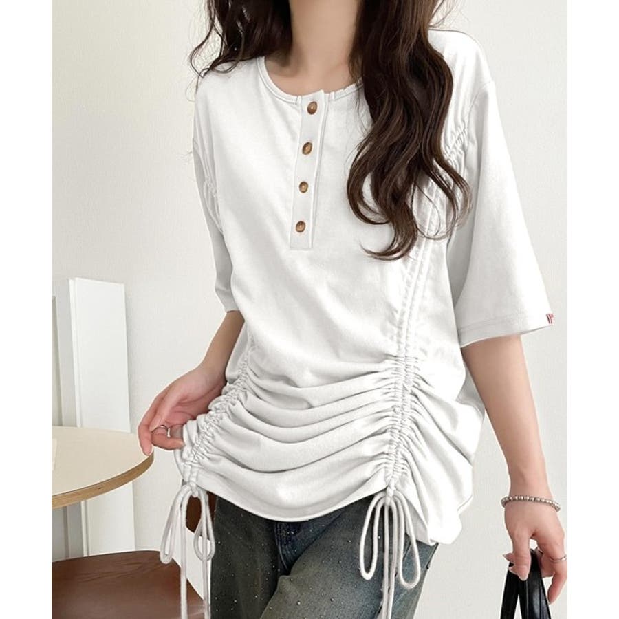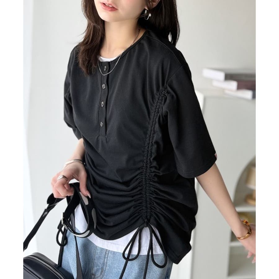 アレンジを楽しむ、私だけの一枚。前後2wayヘンリーネックドロストチュニックTシ…