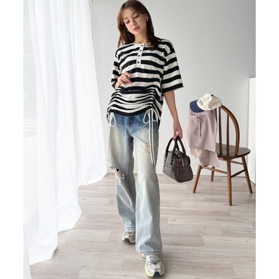 ドロストを絞ってTシャツとしてコーディネートするときは、