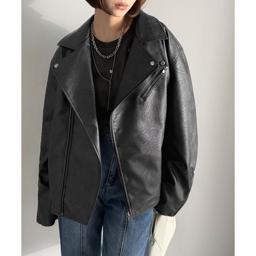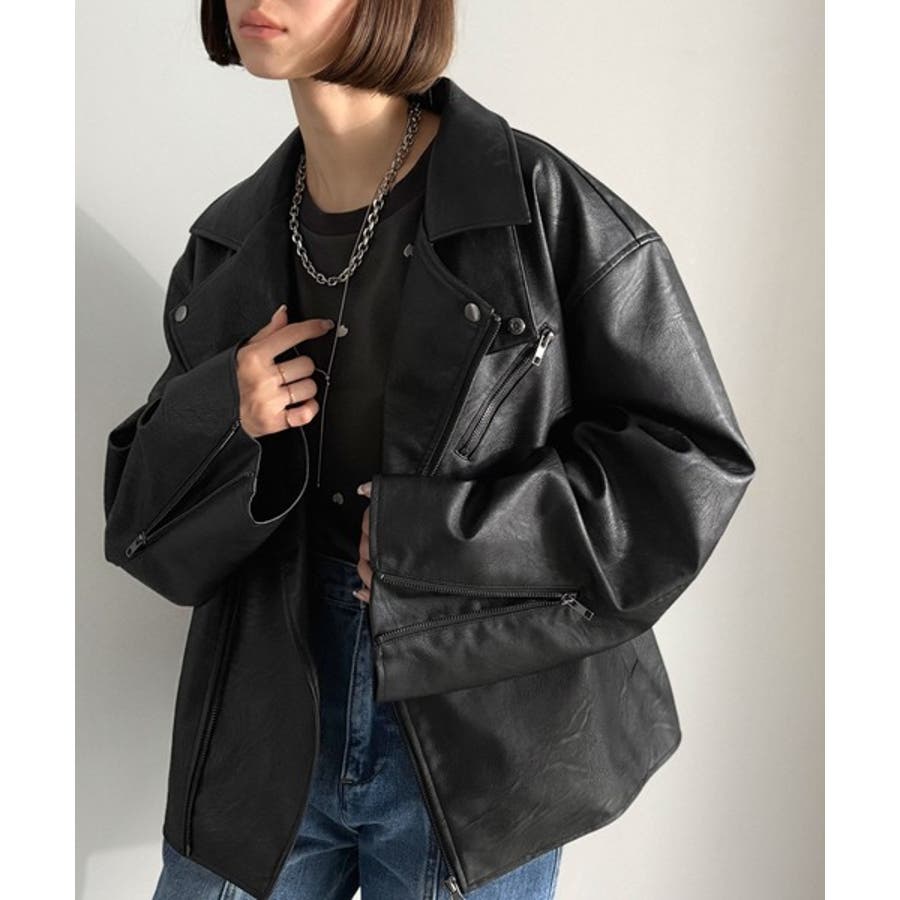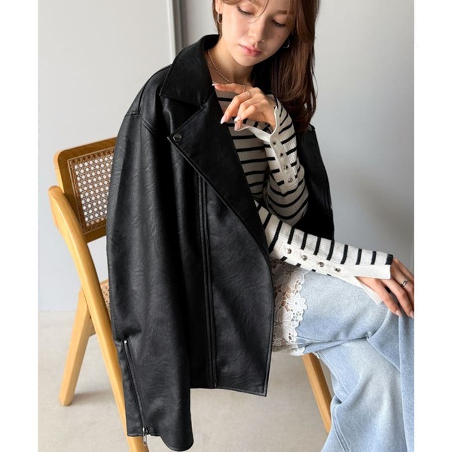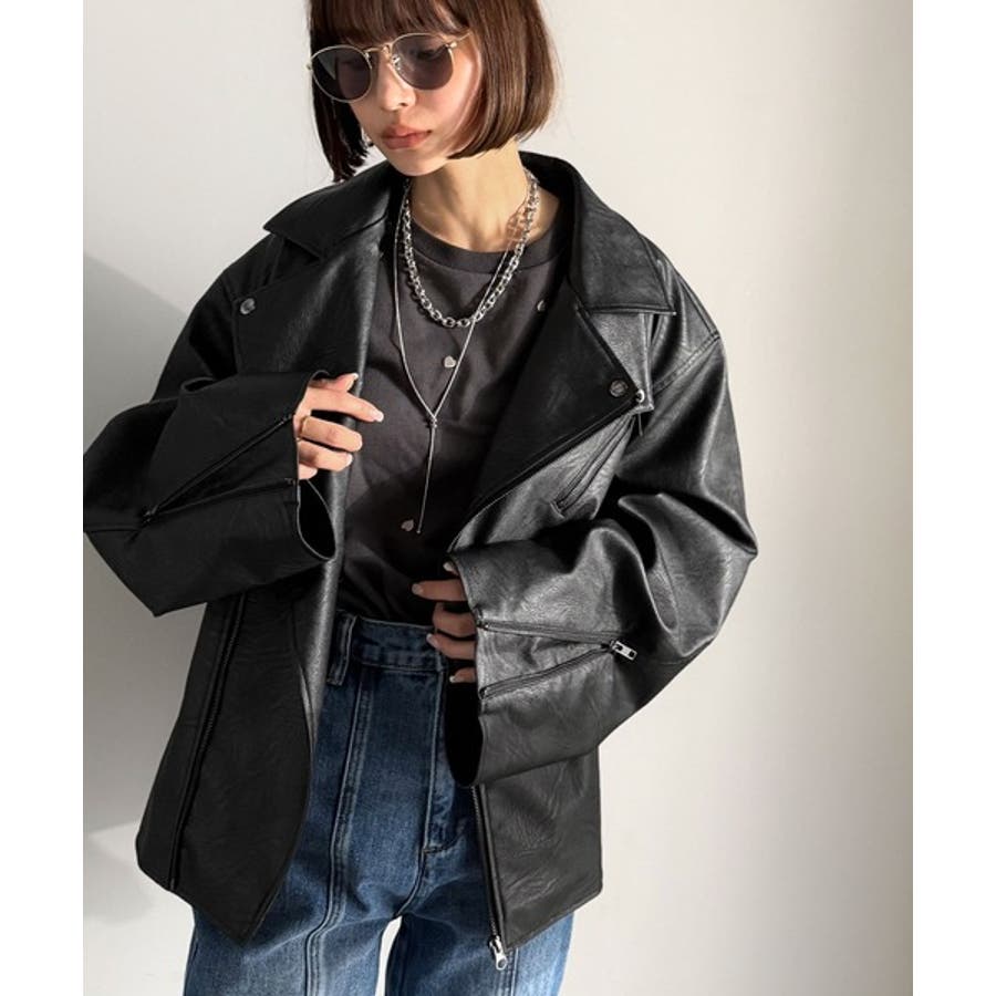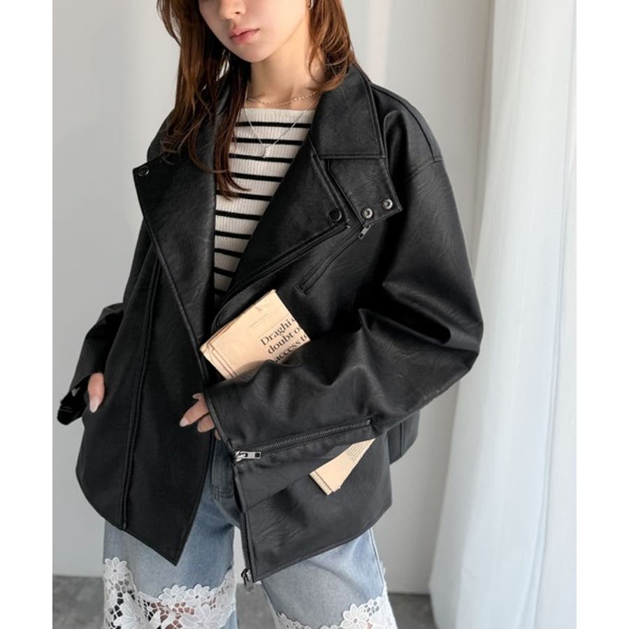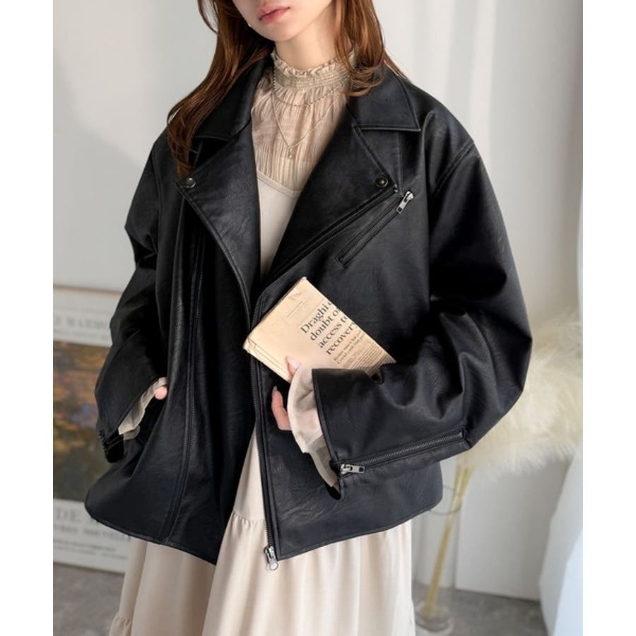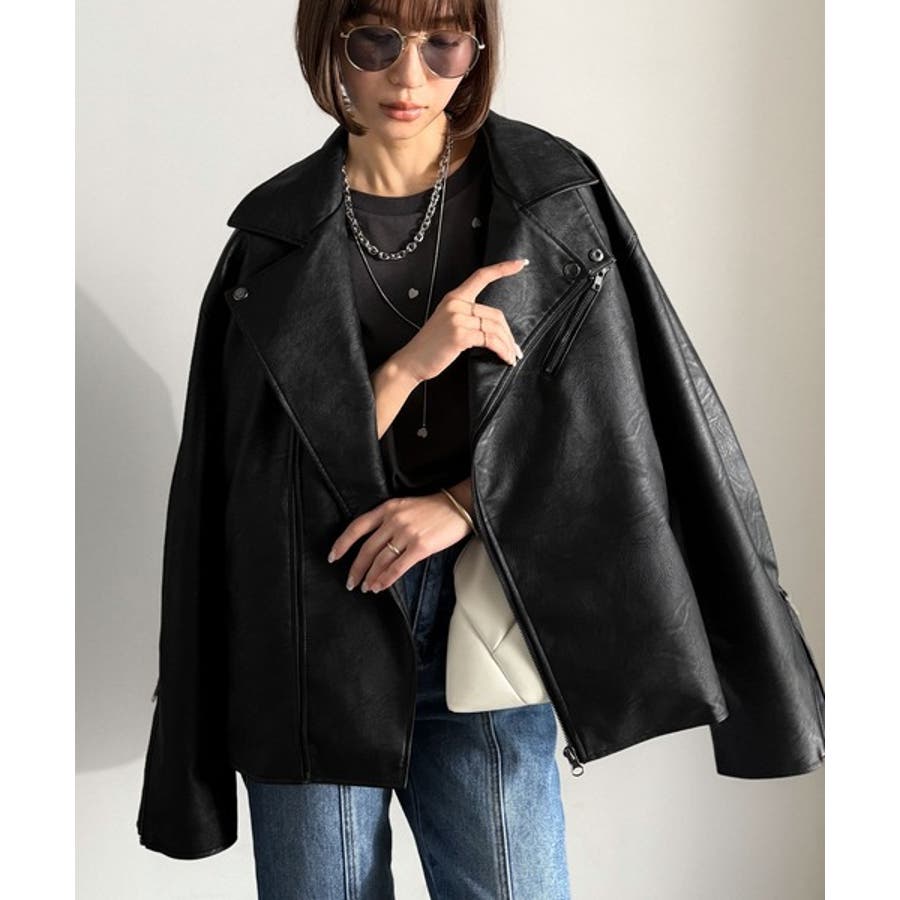 甘さ控えめ、無敵の女っぽさ。フェイクレザーダブルライダースジャケット