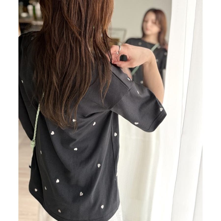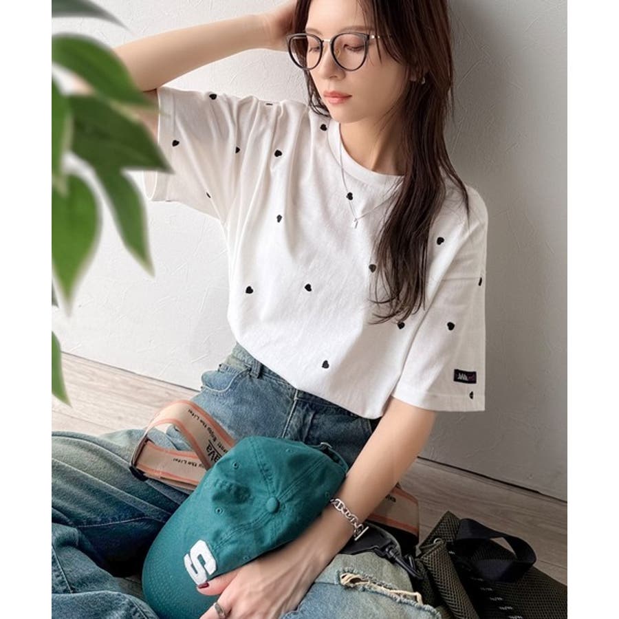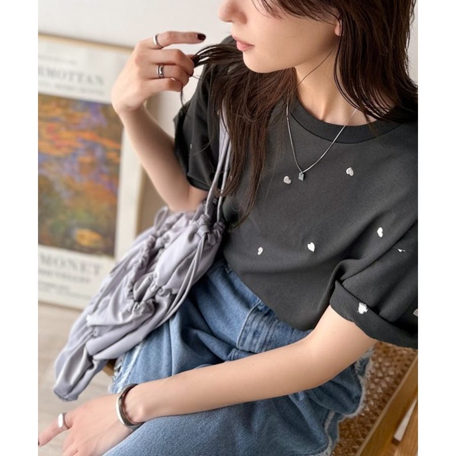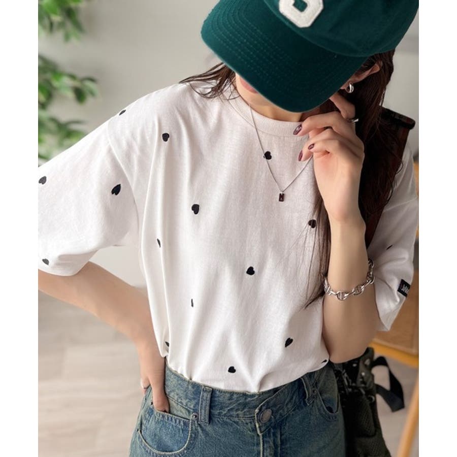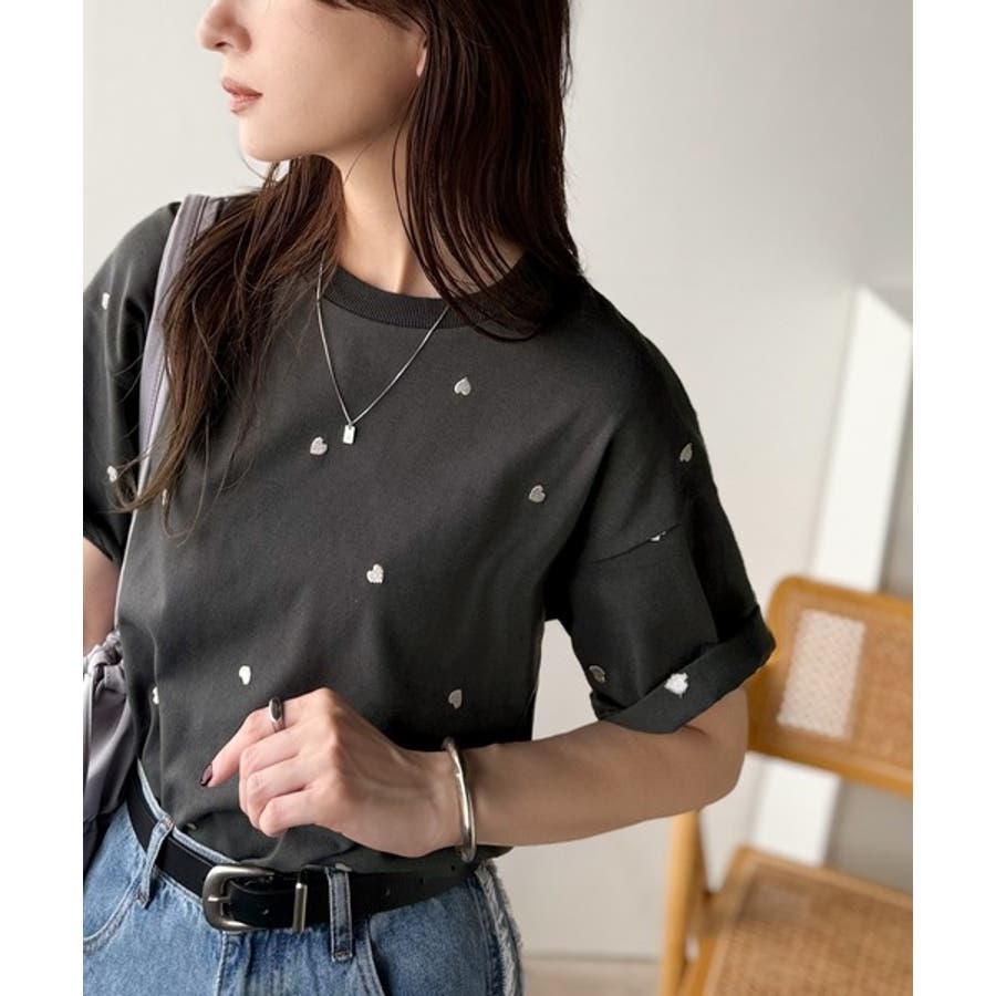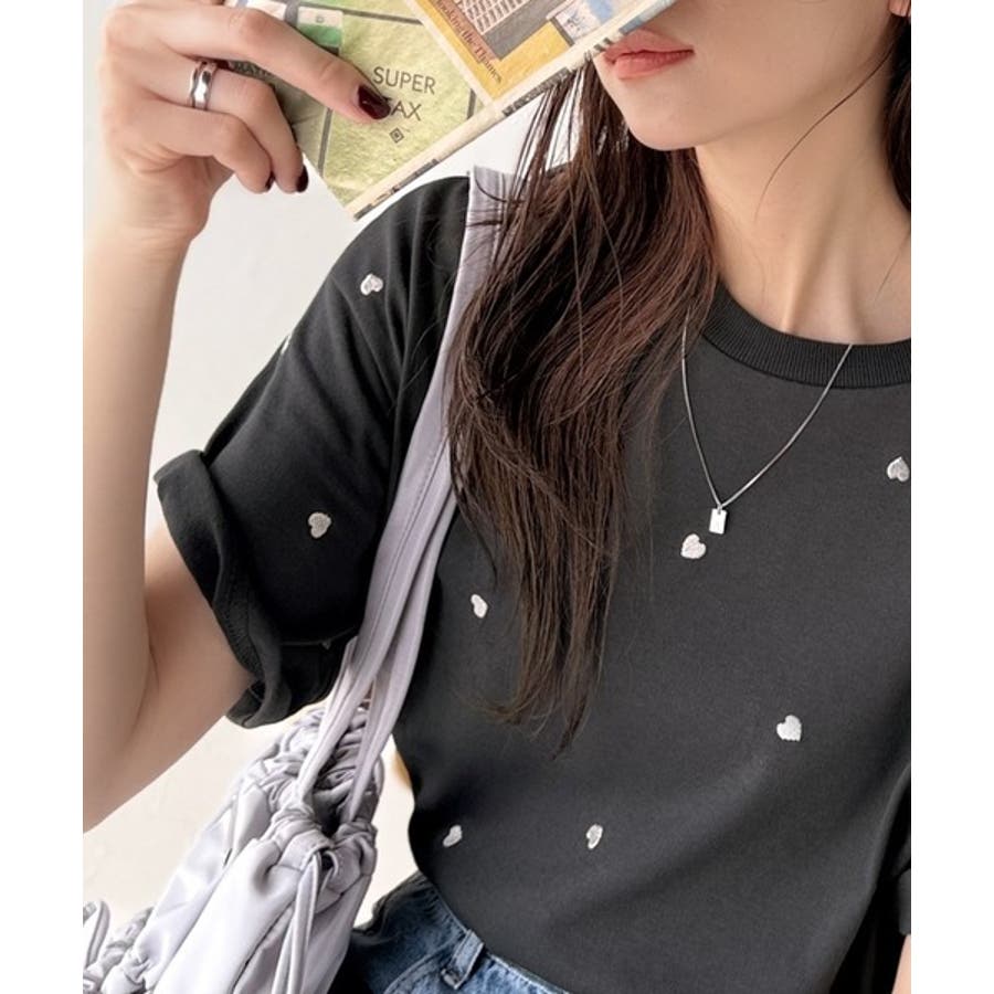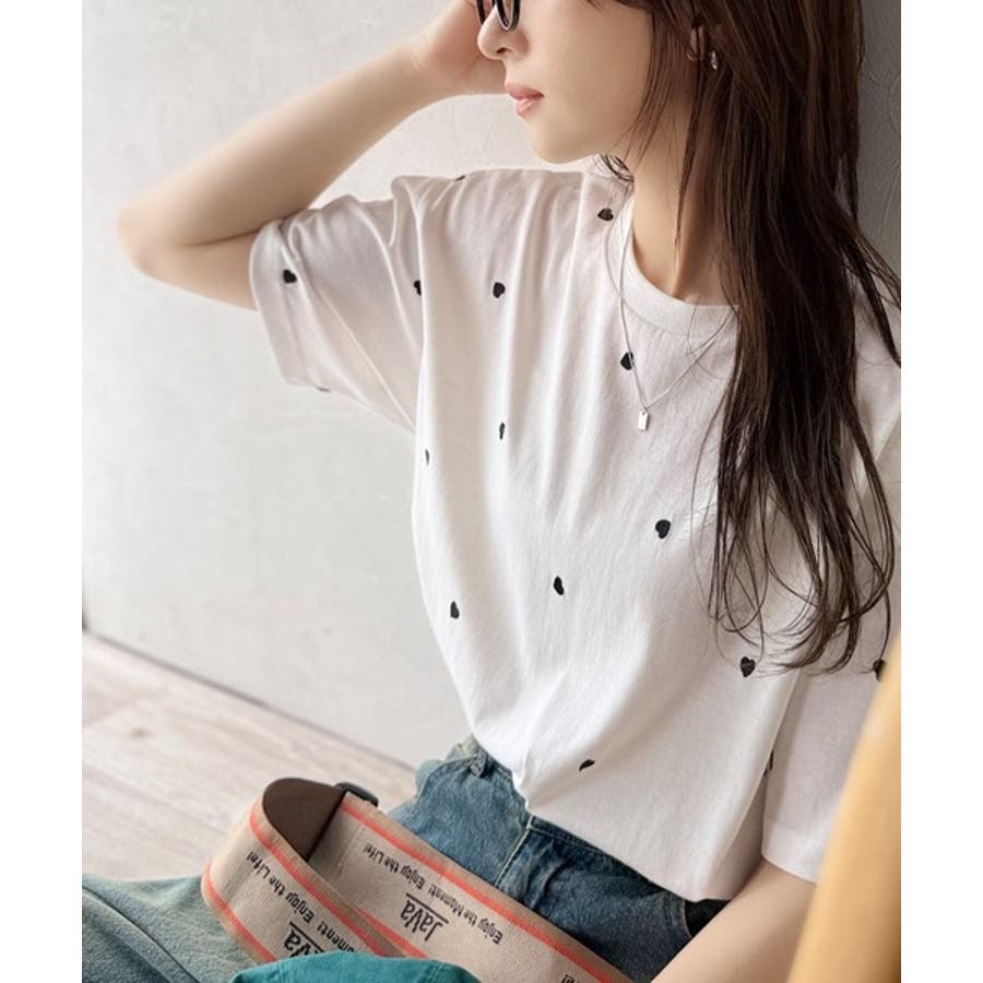 ミニハート刺繍をランダムに散りばめた大人キュートなTシャツ♪