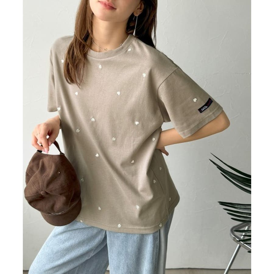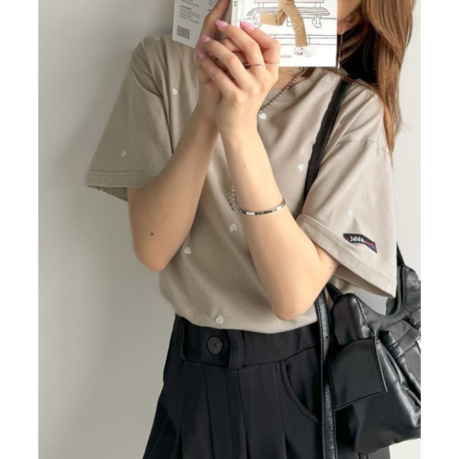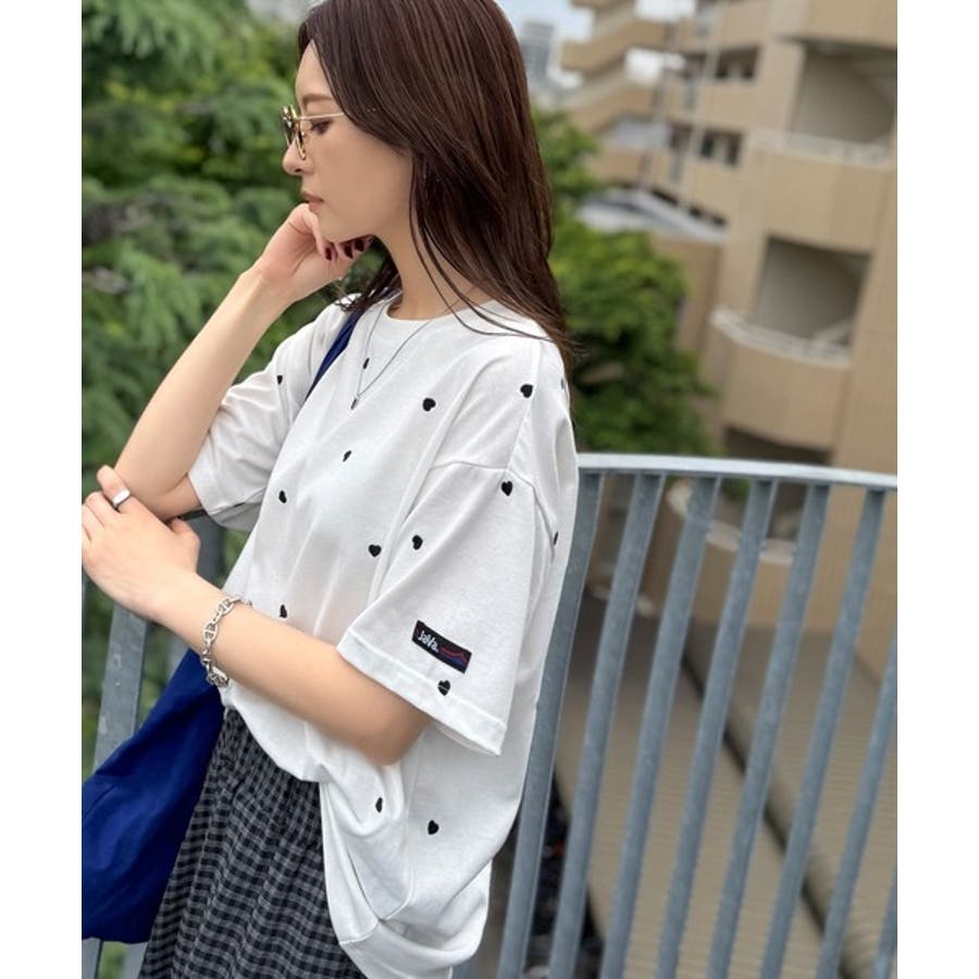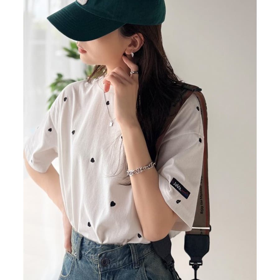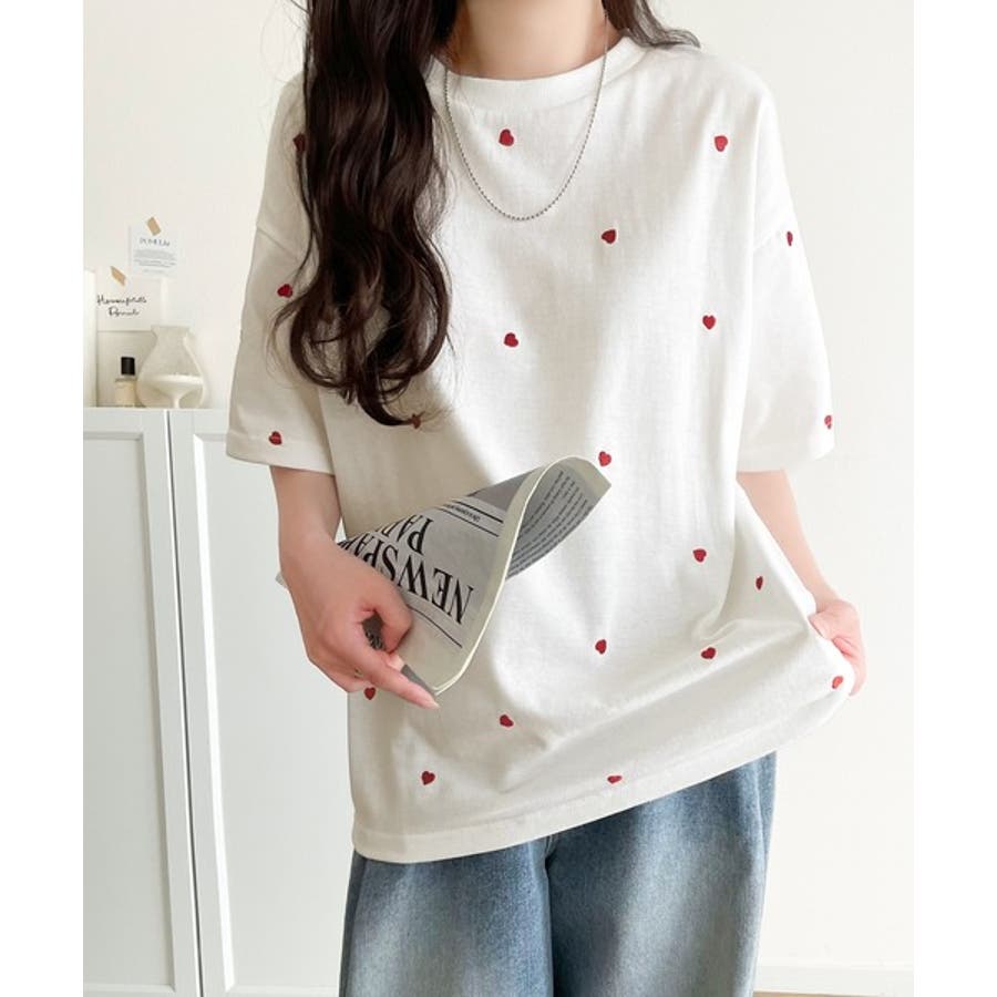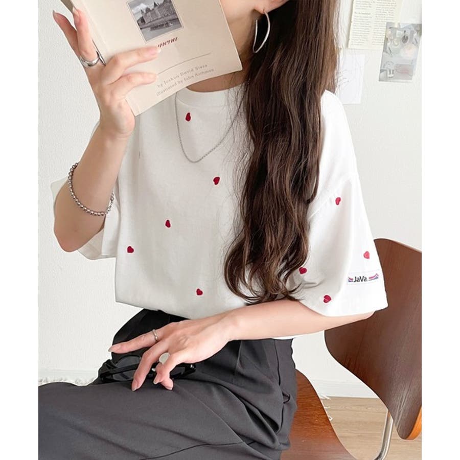 ミニハート刺繍をランダムに散りばめた大人キュートなTシャツ♪