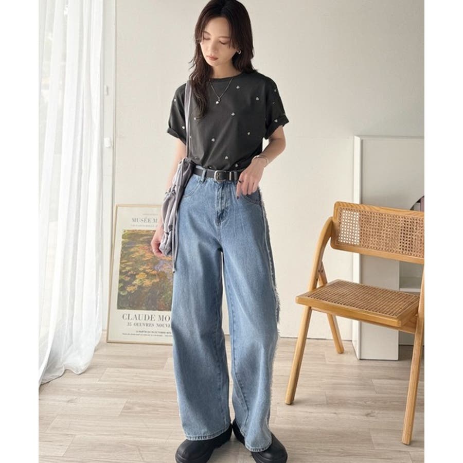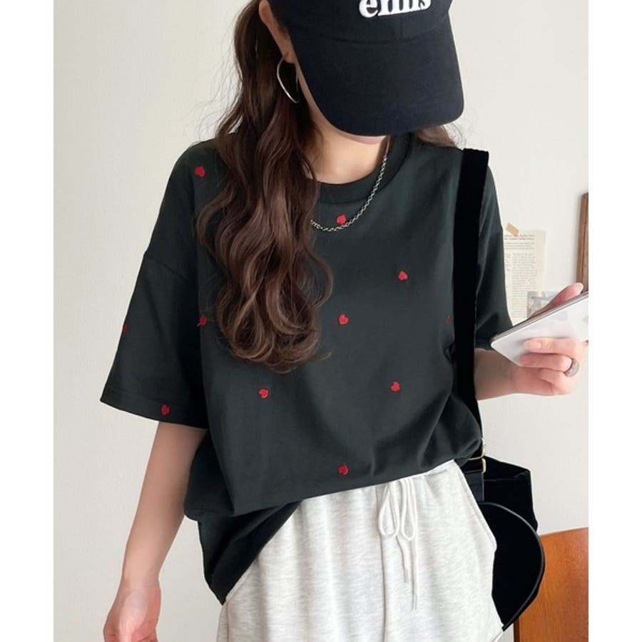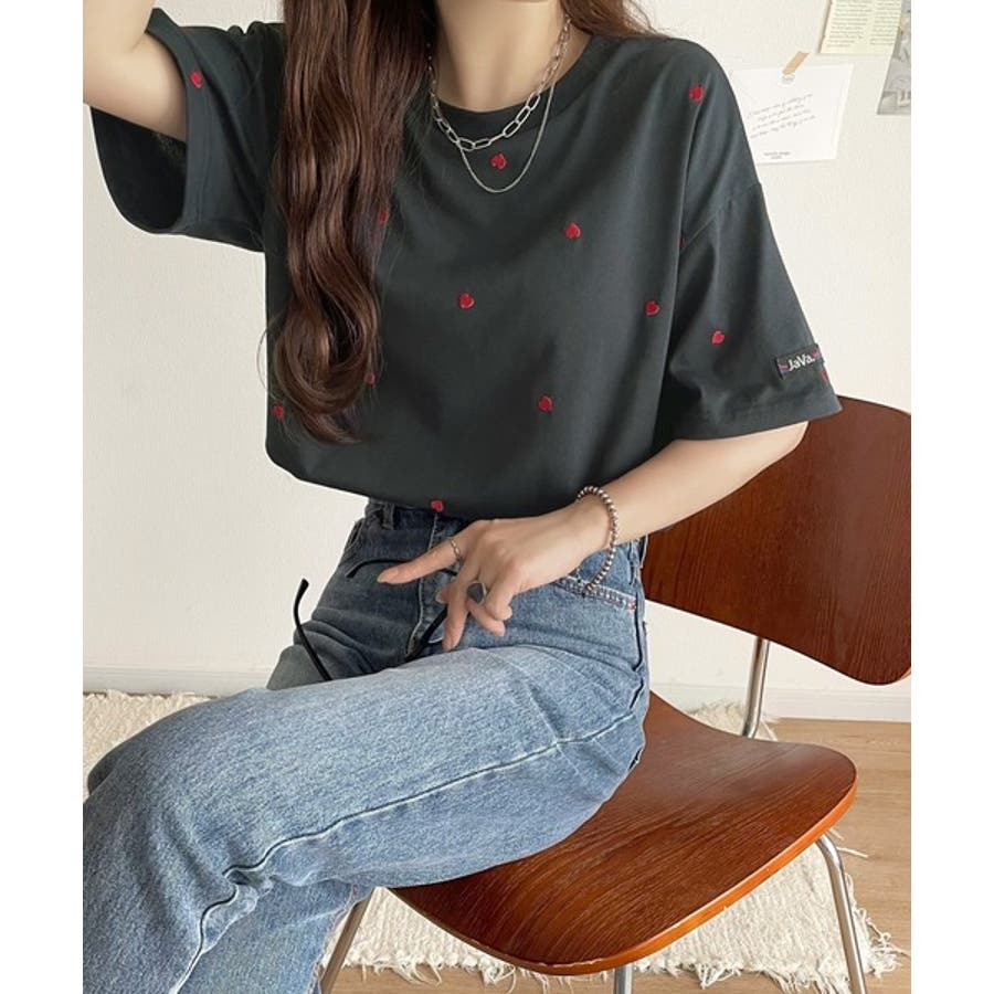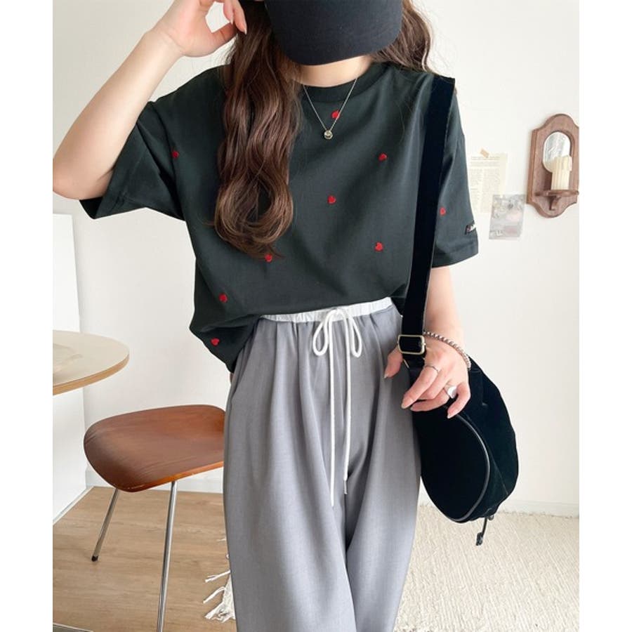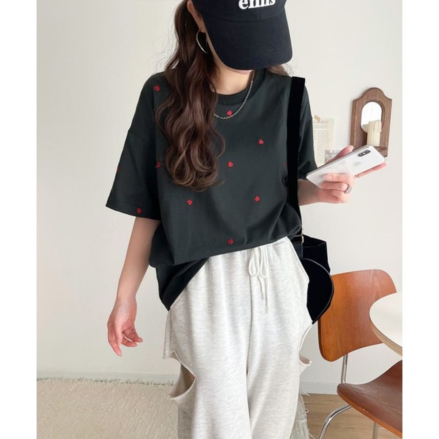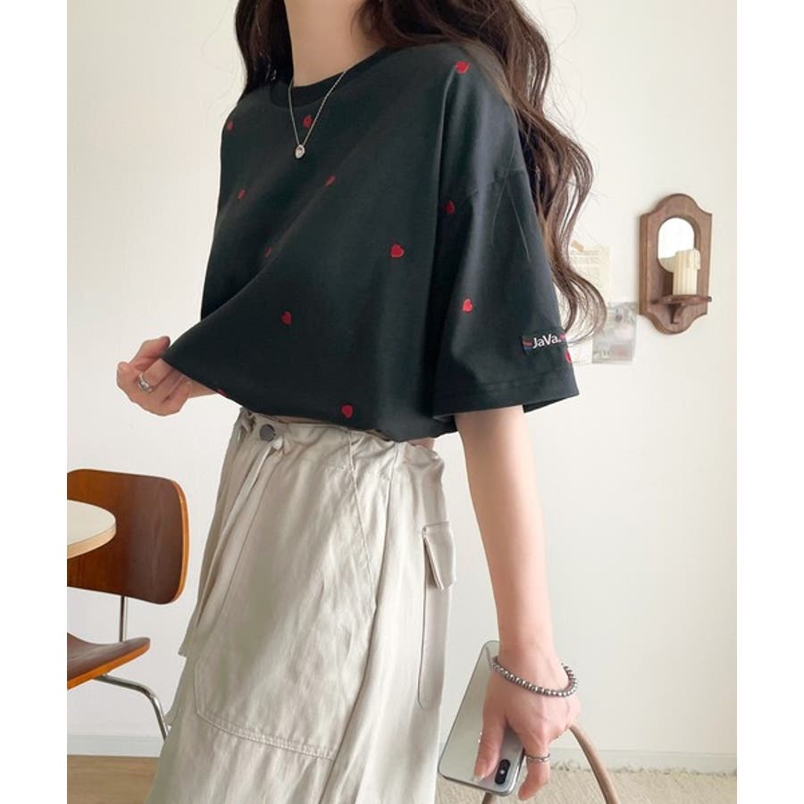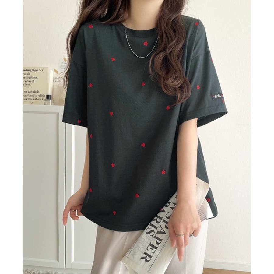 ミニハート刺繍をランダムに散りばめた大人キュートなTシャツ♪