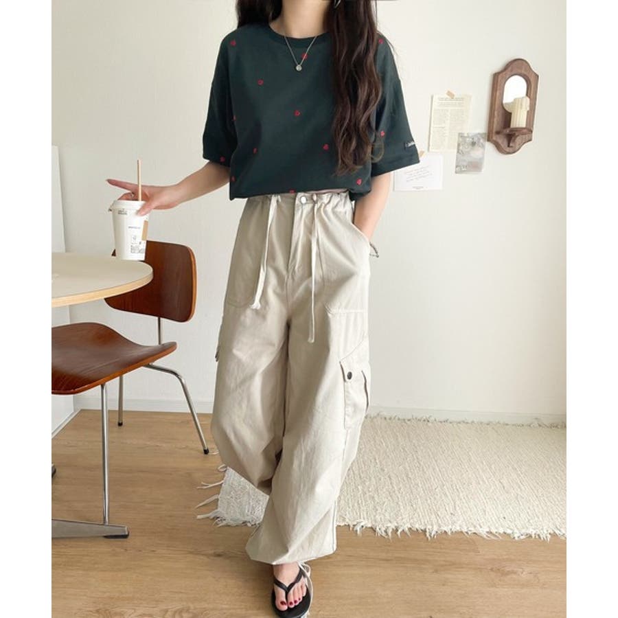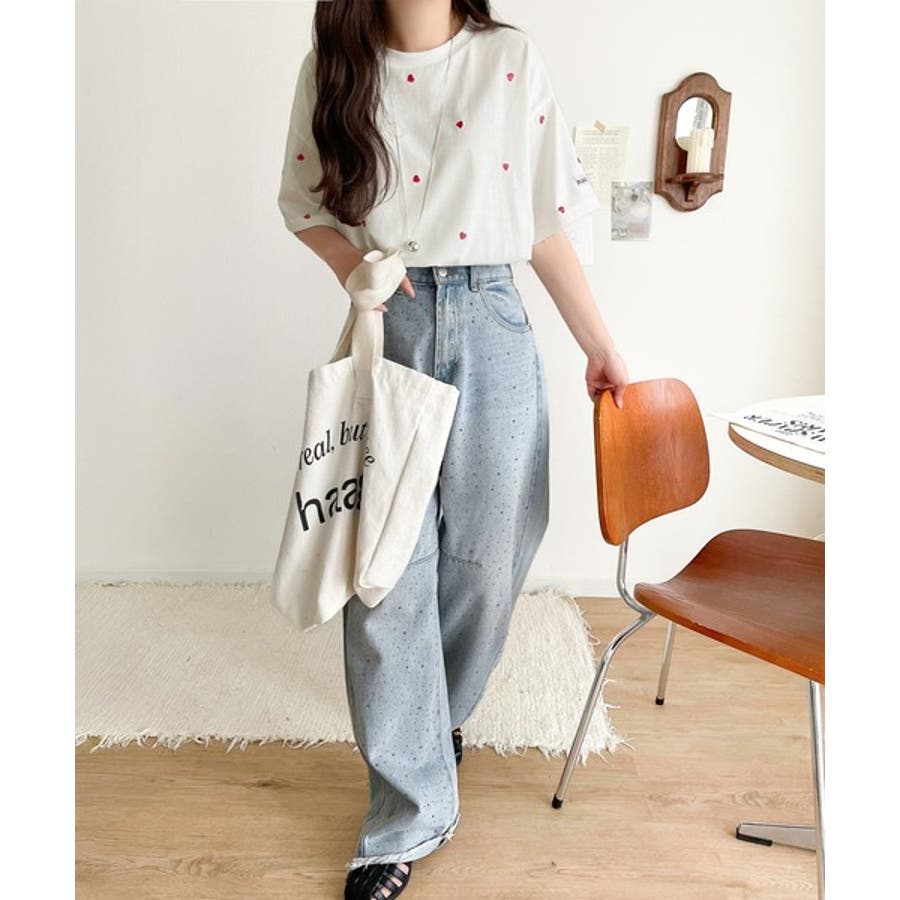 カジュアルなコーデにハートの存在感がアクセントになり、使い勝手の良い1枚です。