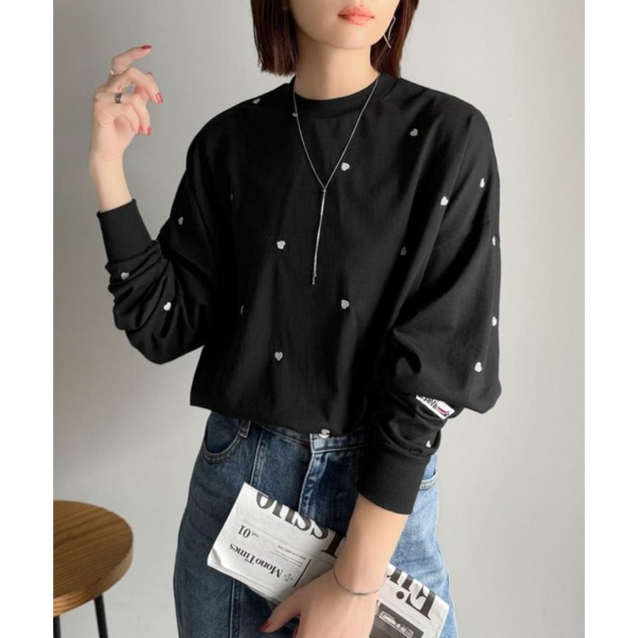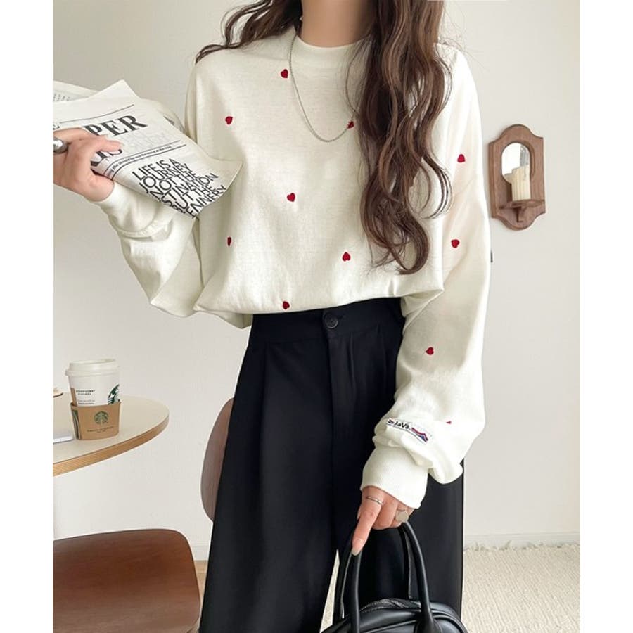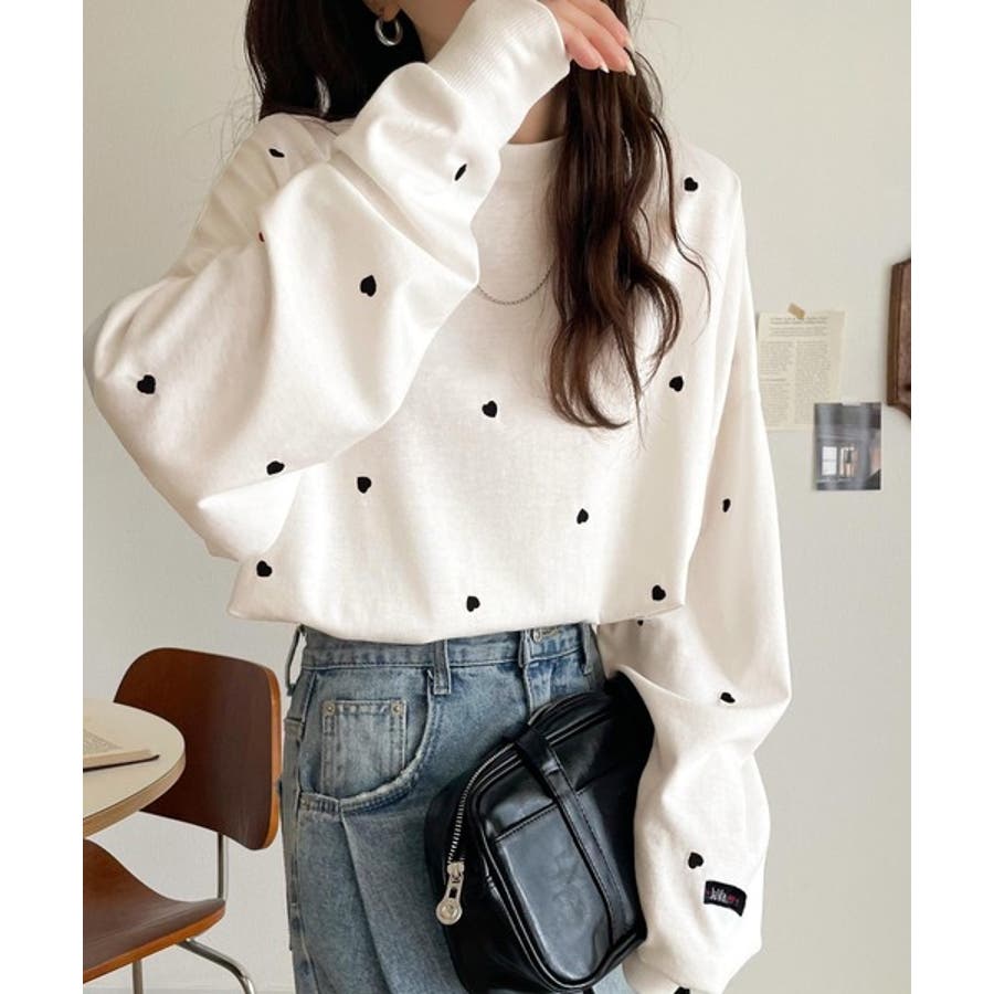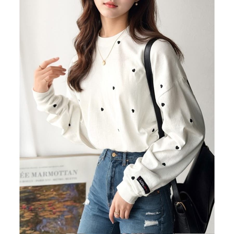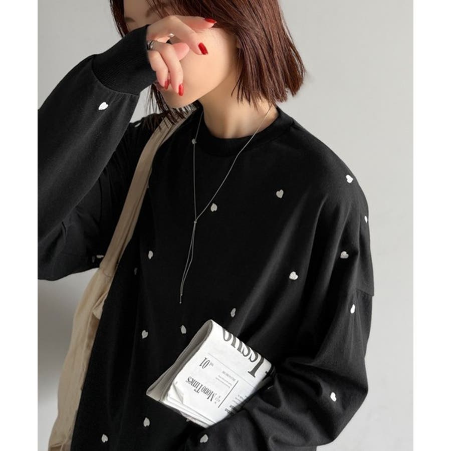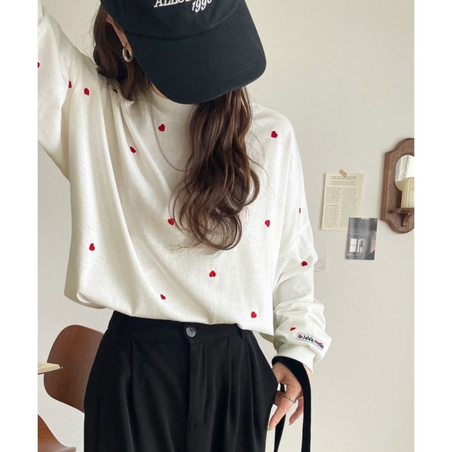 ミニハート刺繍×ゆったりロンTの最愛バランスで、