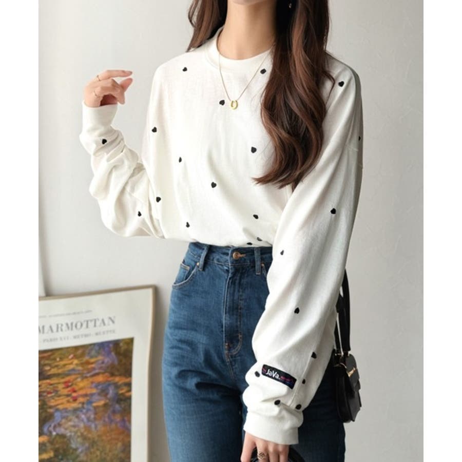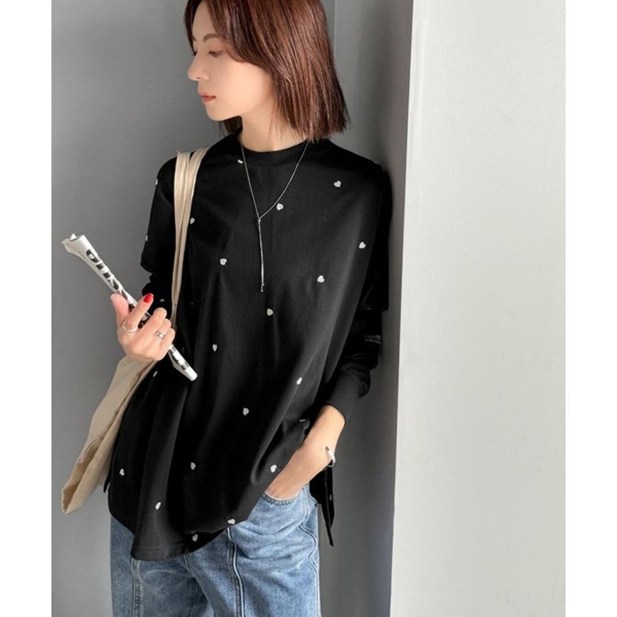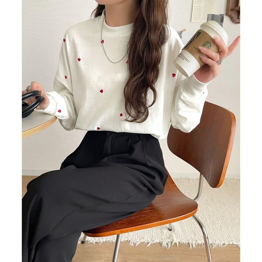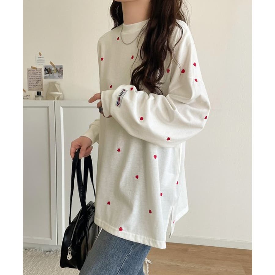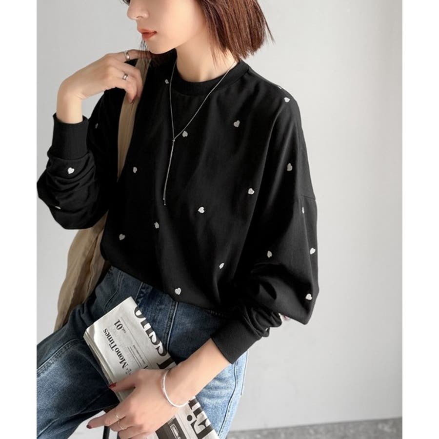ミニハート刺繍×ゆったりロンTの最愛バランスで、