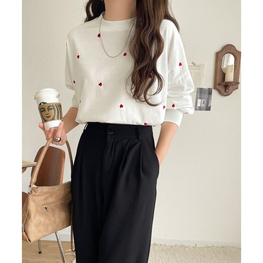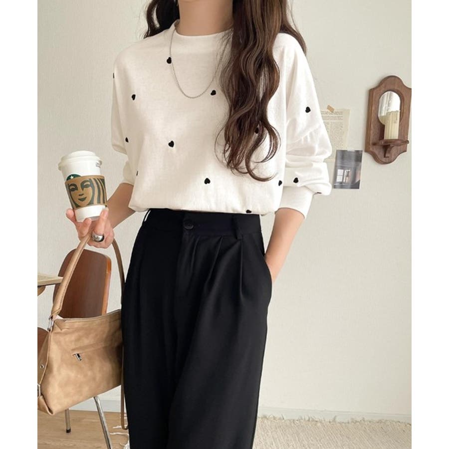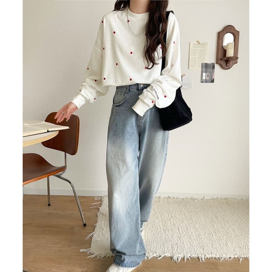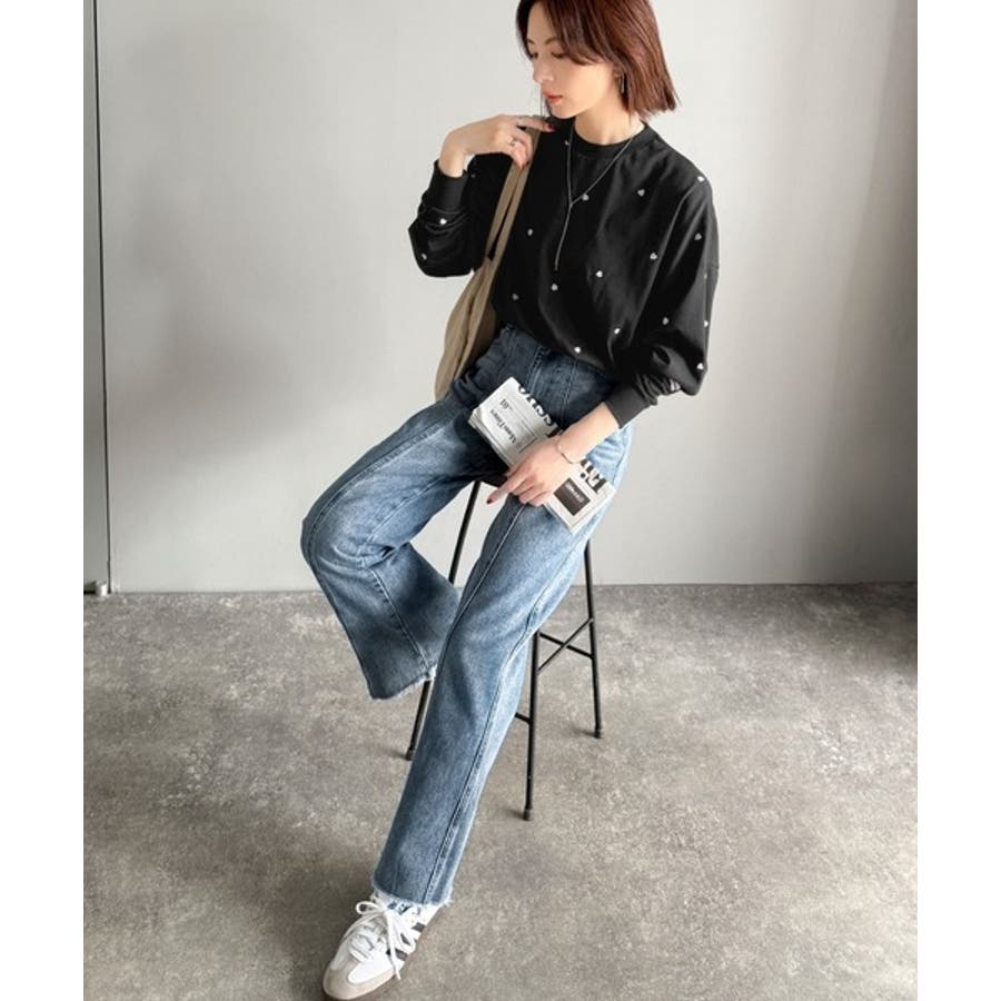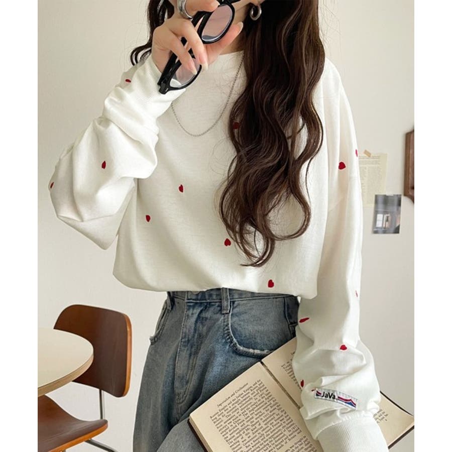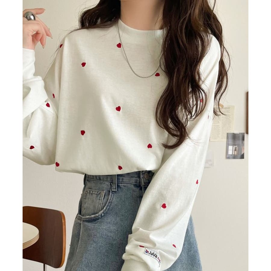 ミニハート刺繍×ゆったりロンTの最愛バランスで、