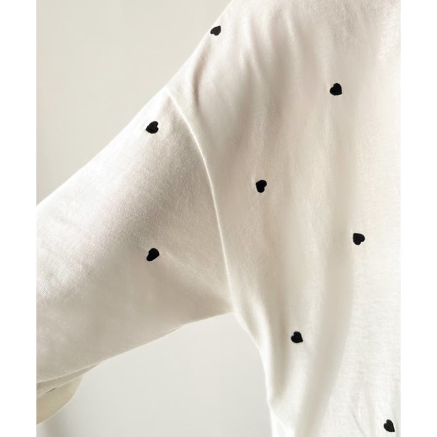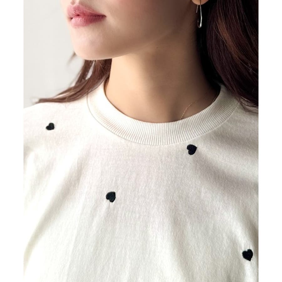 “可愛い”がさりげなく溶け込む。袖ネーム付きミニハート総刺繍Tシャツ