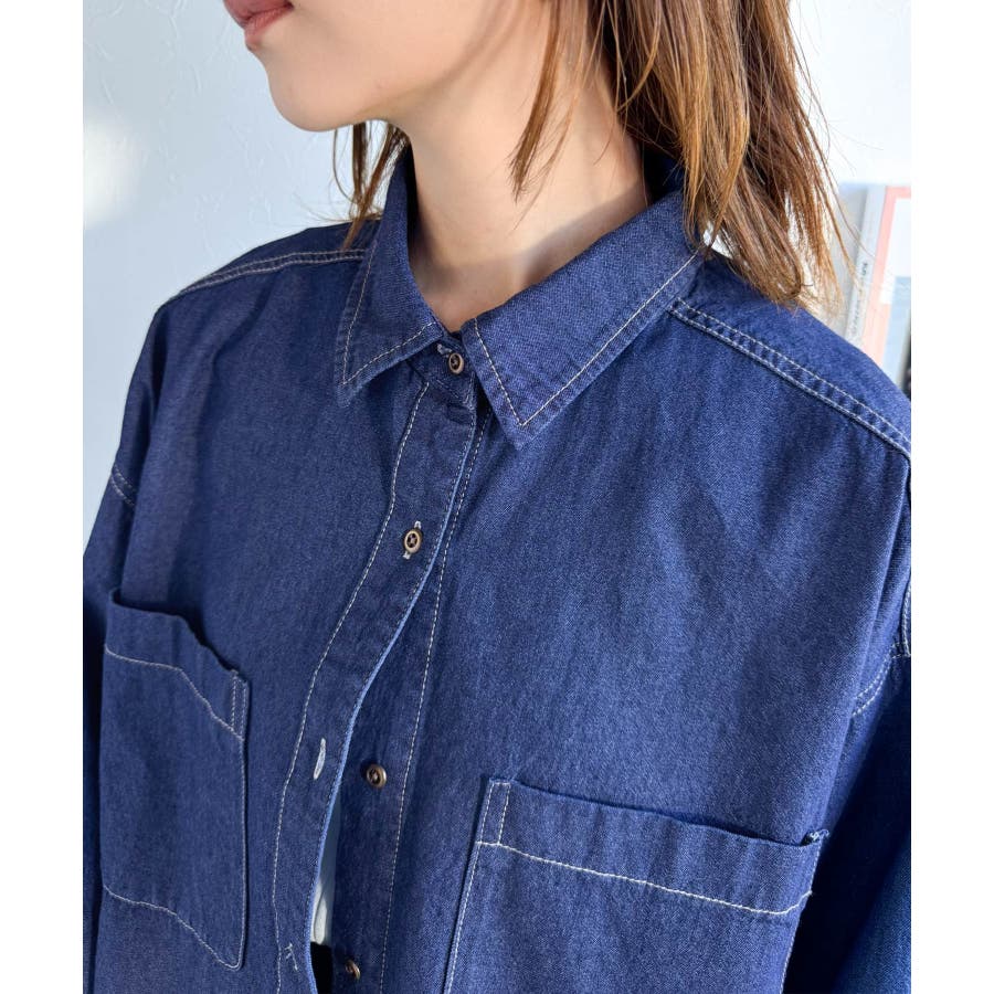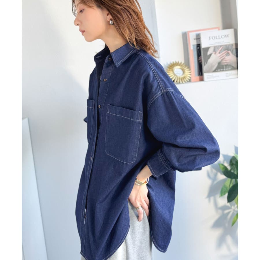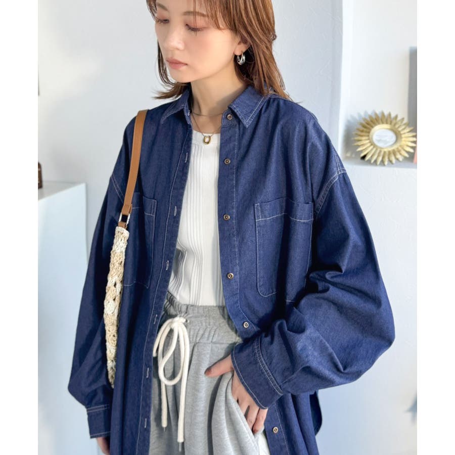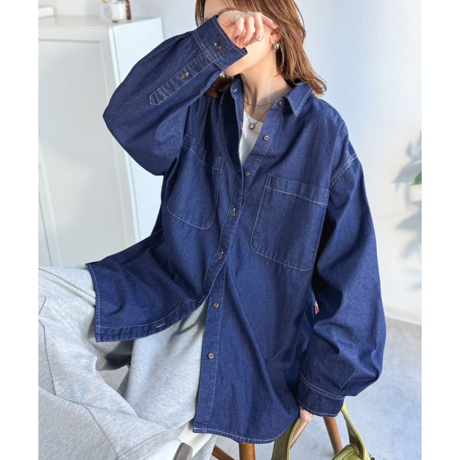 オーバーサイズでリラックス感のある着こなしを楽しめるデニムシャツ。