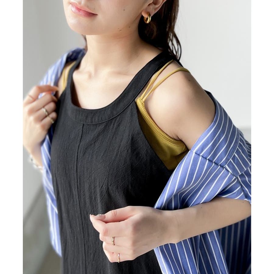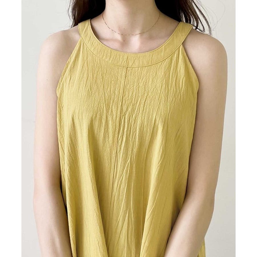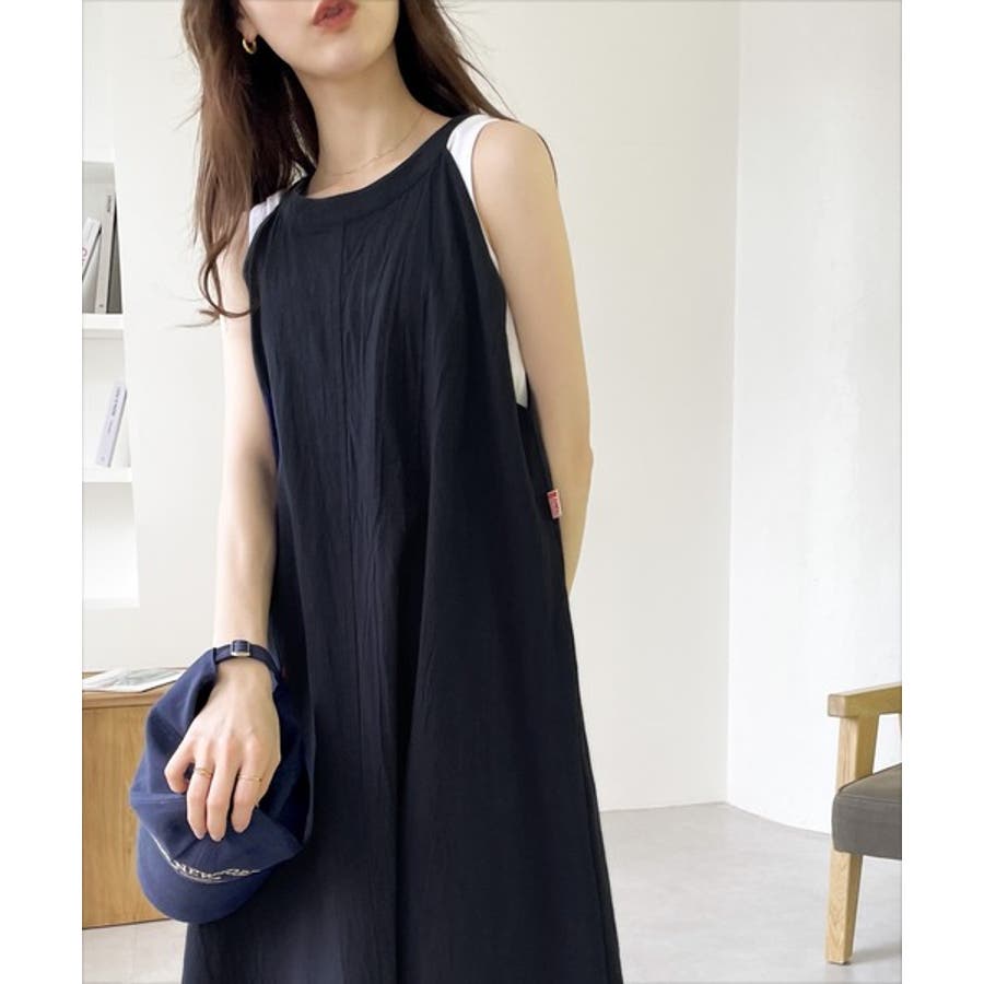 大人カジュアル。綿100%ワッシャー素材アメリカンスリーブワンピース
