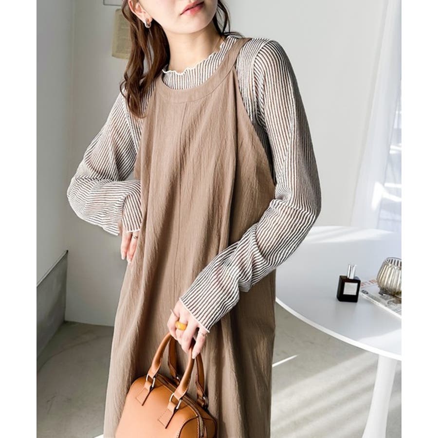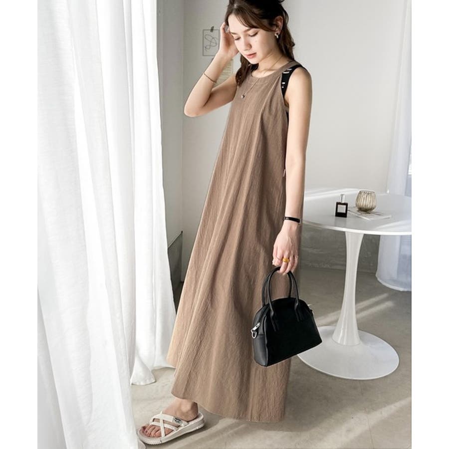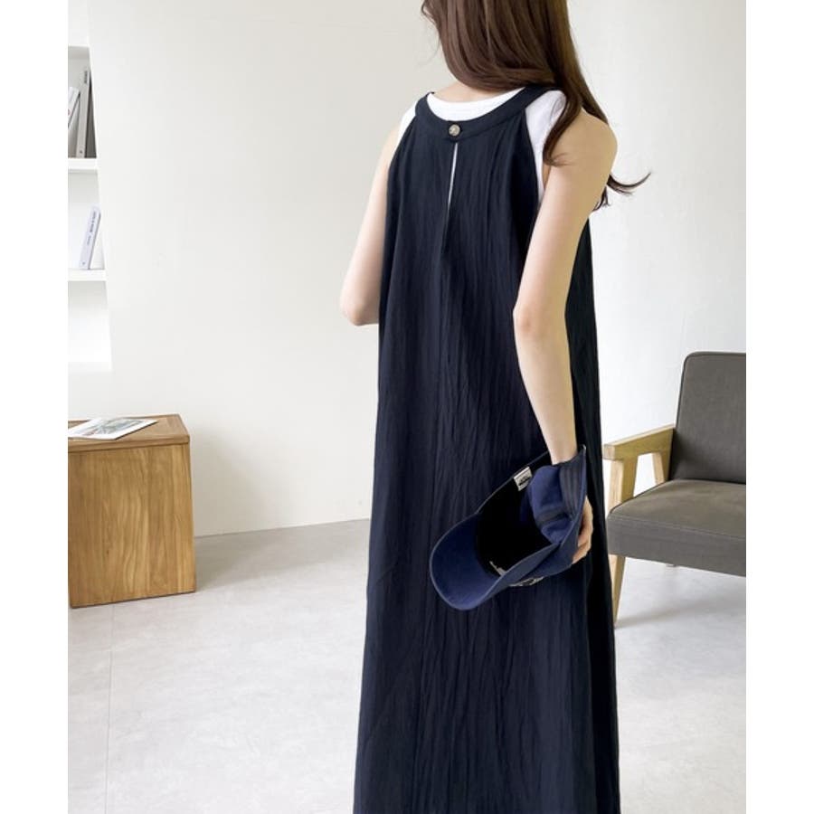 ワッシャー加工を施したナチュラルな雰囲気のロング丈のワンピース。