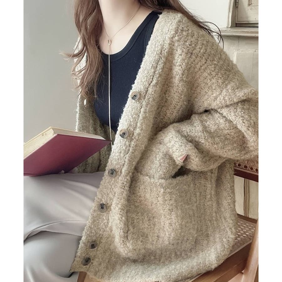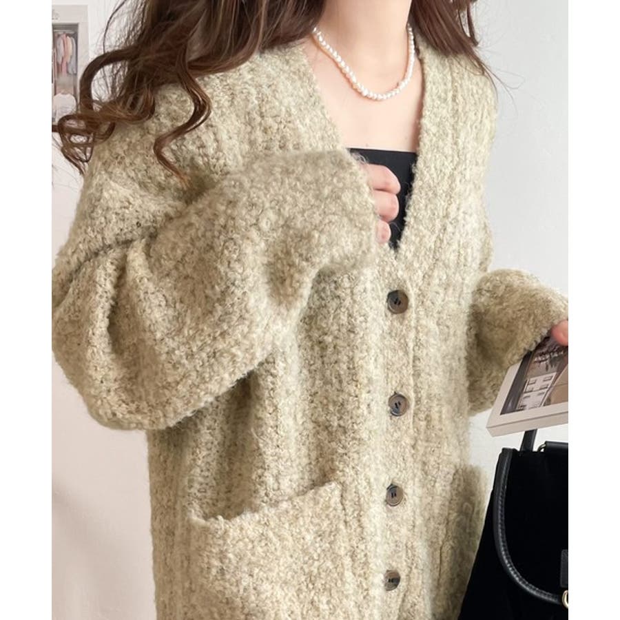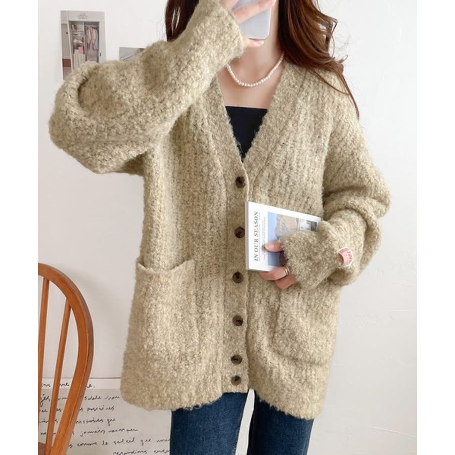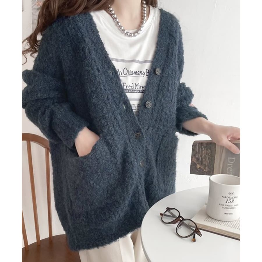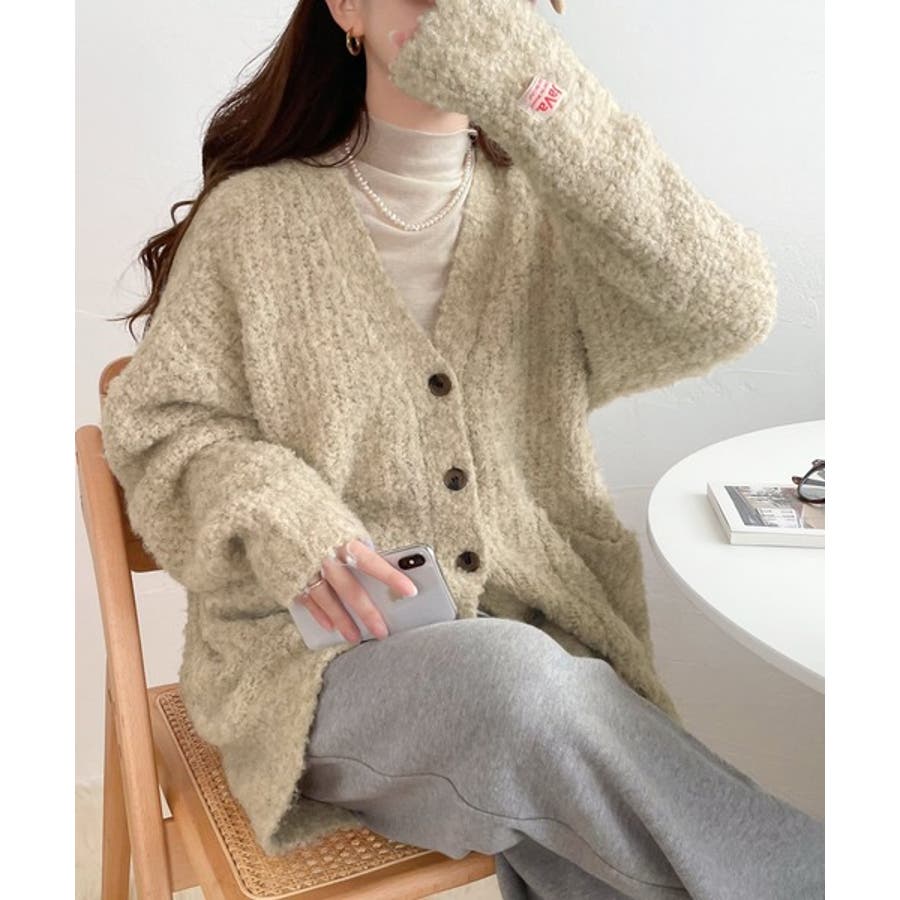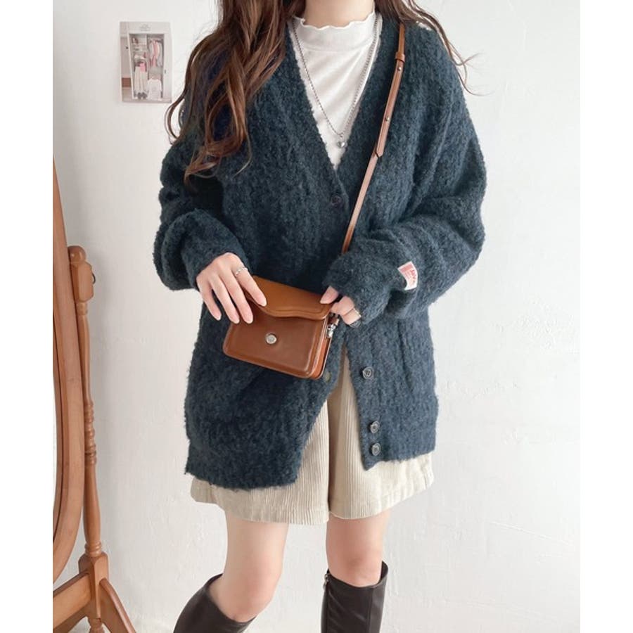 シンプルながらもデザインが効いているふんわりカーディガン。