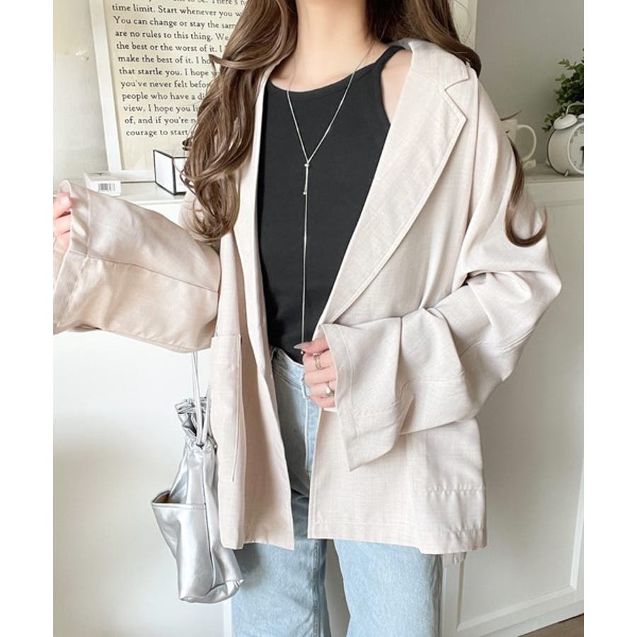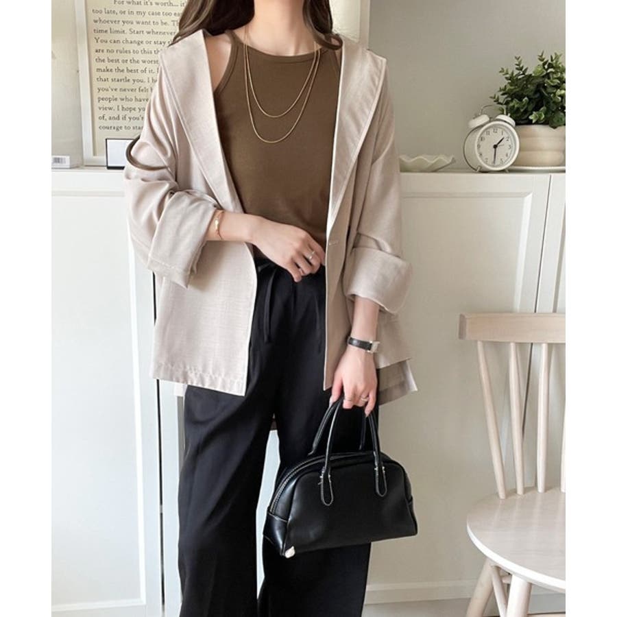 また、流行のテーラードジャケットを軽く羽織れば、きちんと感のあるオフィススタイルにも。