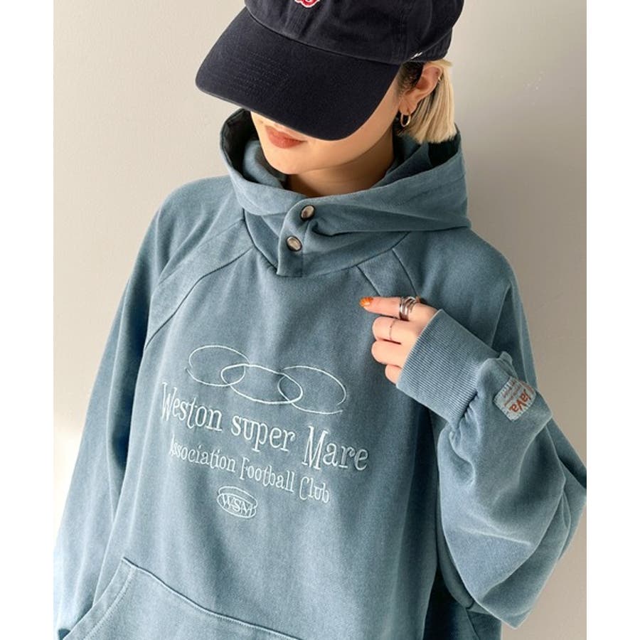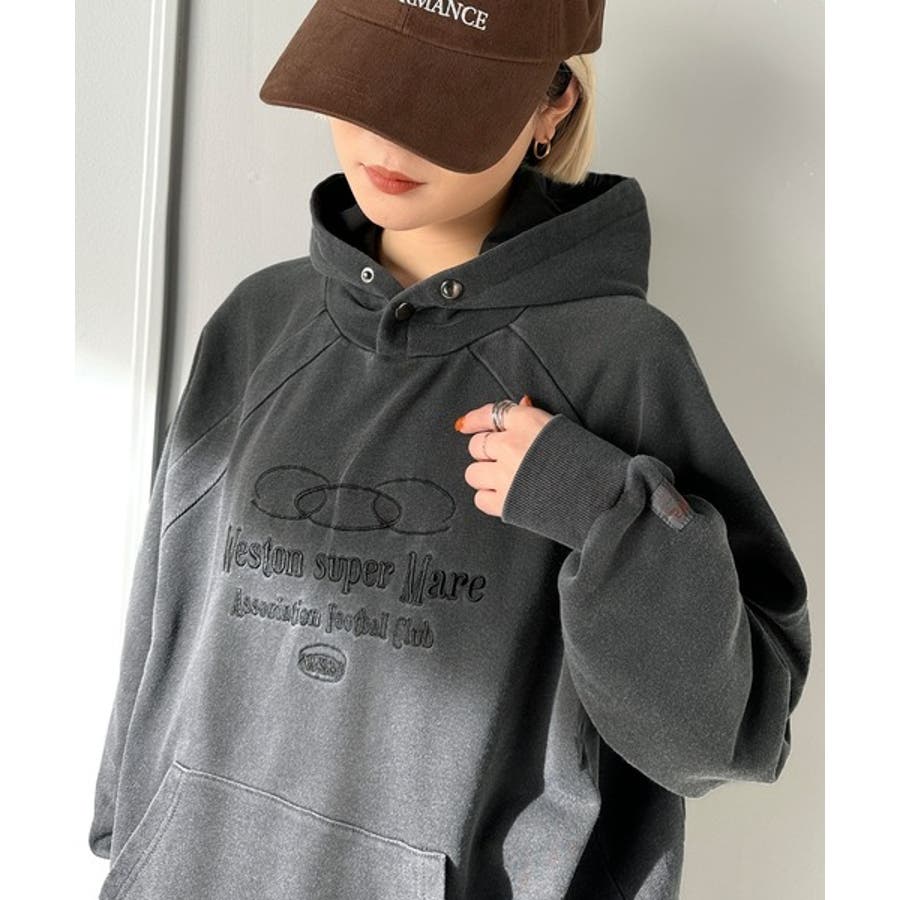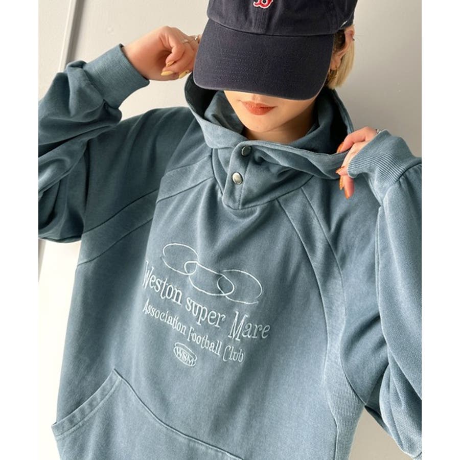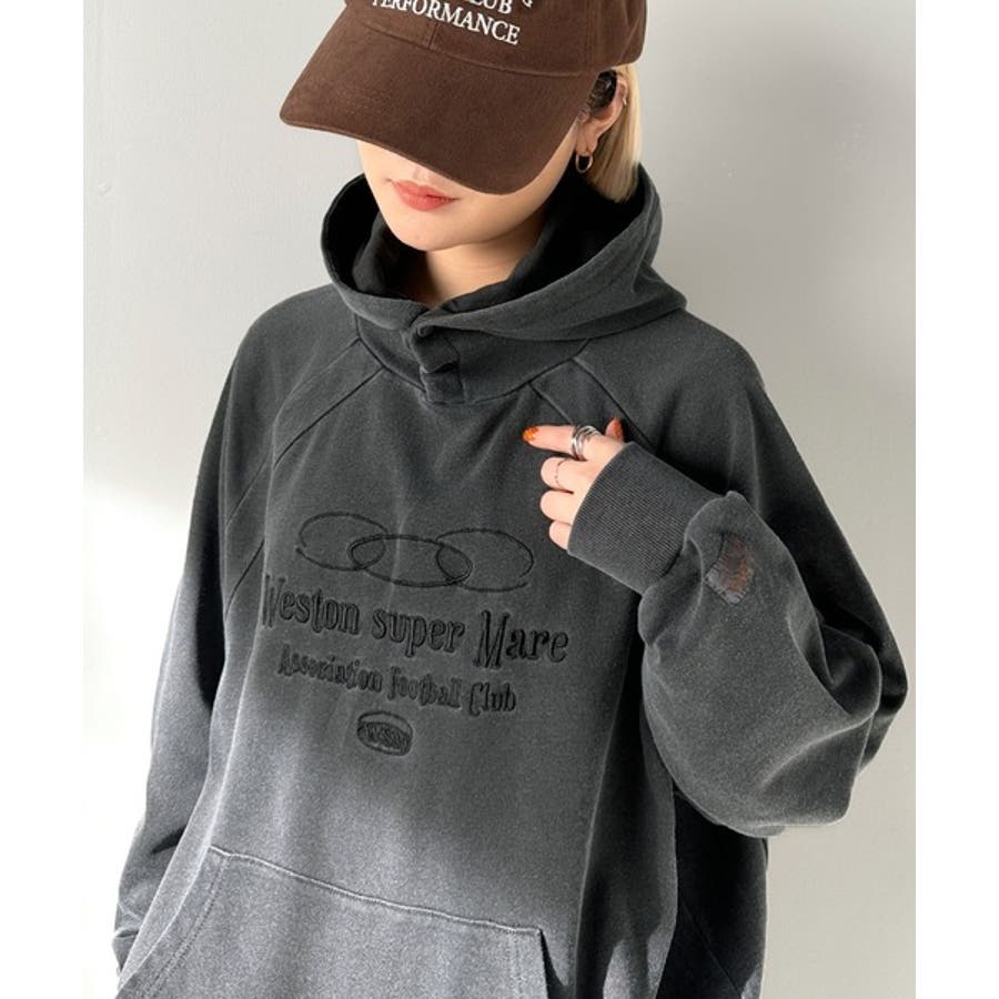 個性が際立つアートな一着!ヴィンテージ風フットボールデザインピグメントパーカー