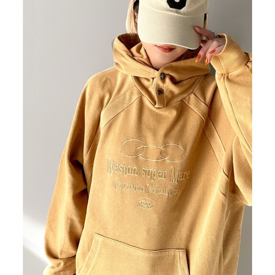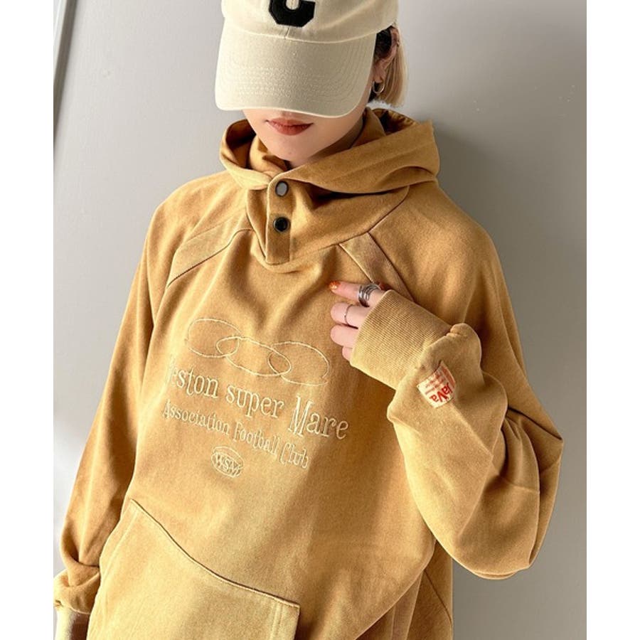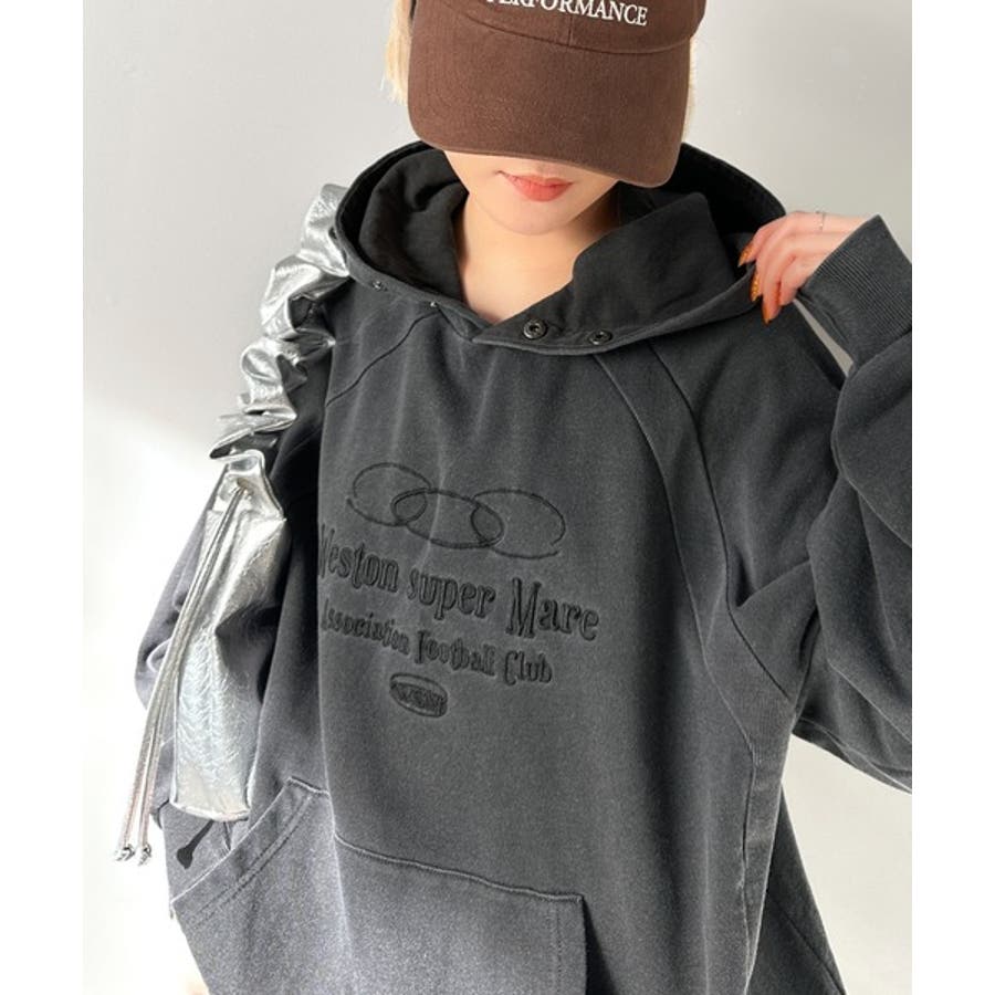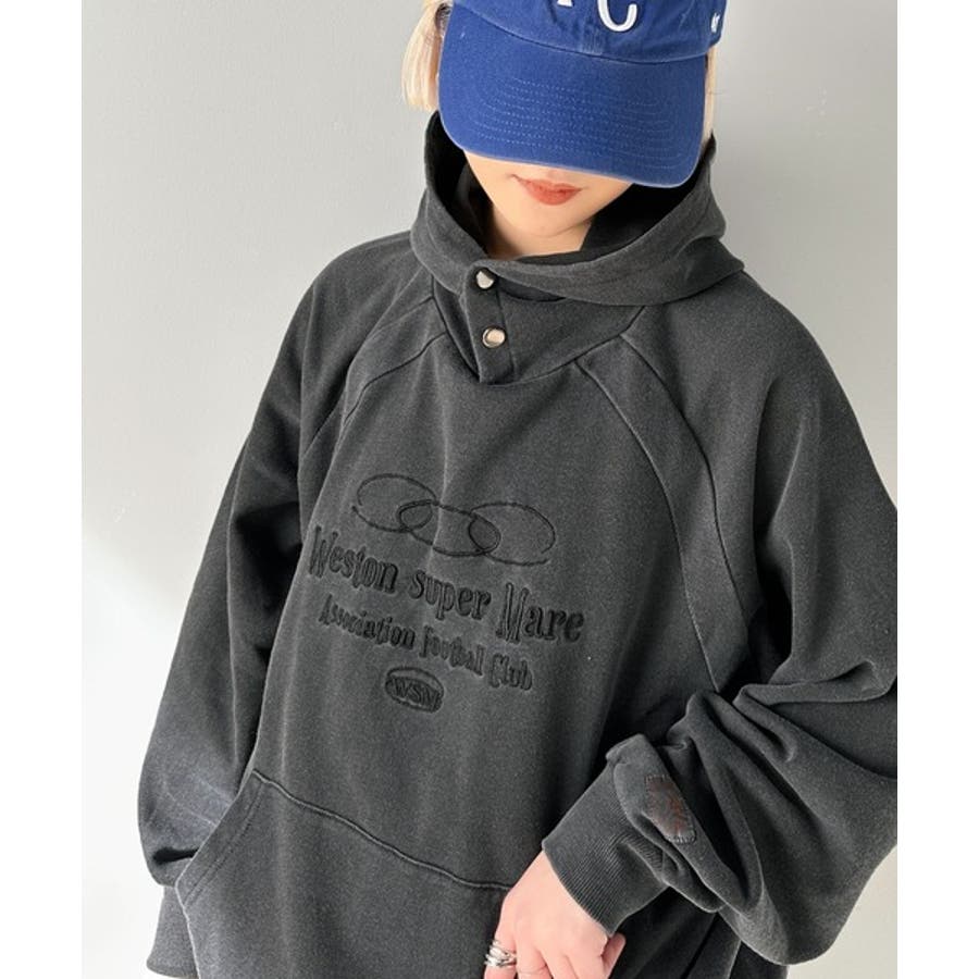 個性が際立つアートな一着!ヴィンテージ風フットボールデザインピグメントパーカー