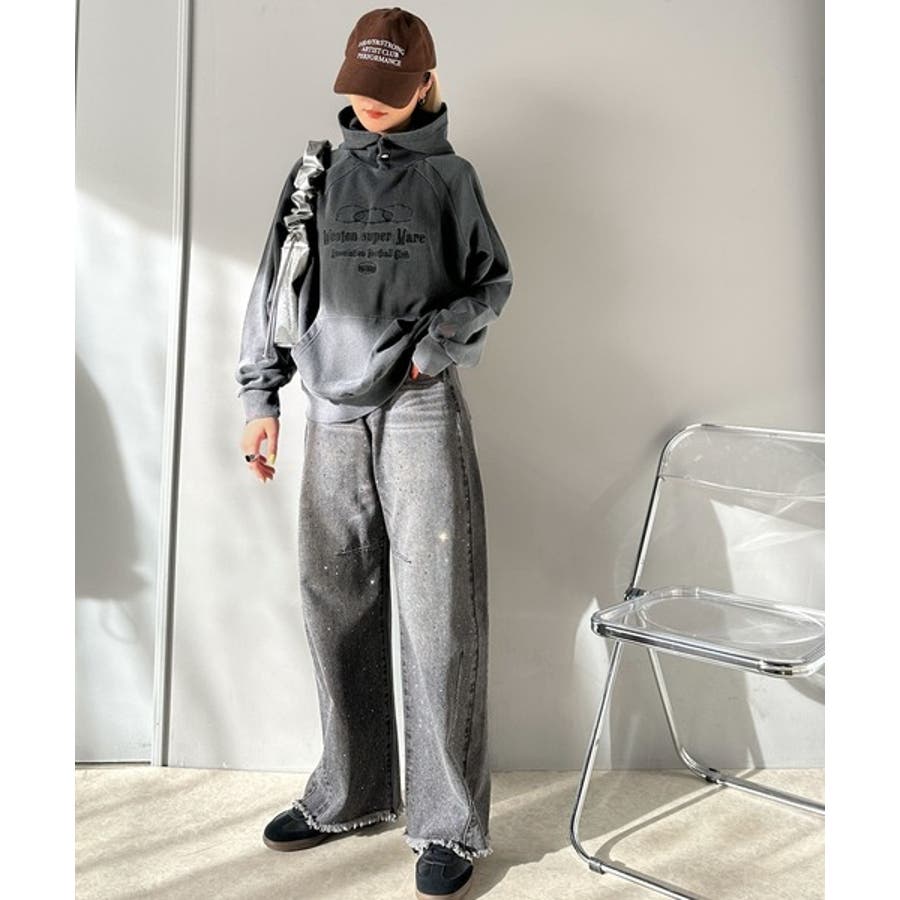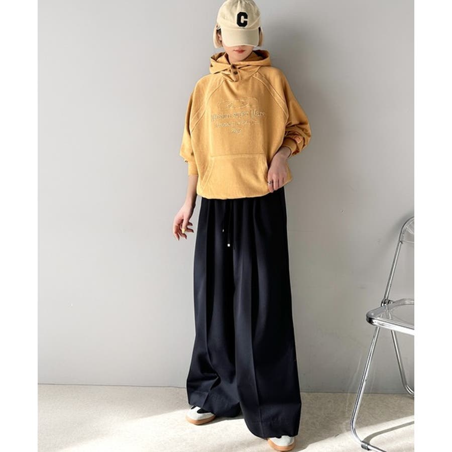 スウェット素材のやわらかい質感で、ゆったりとしたシルエットは