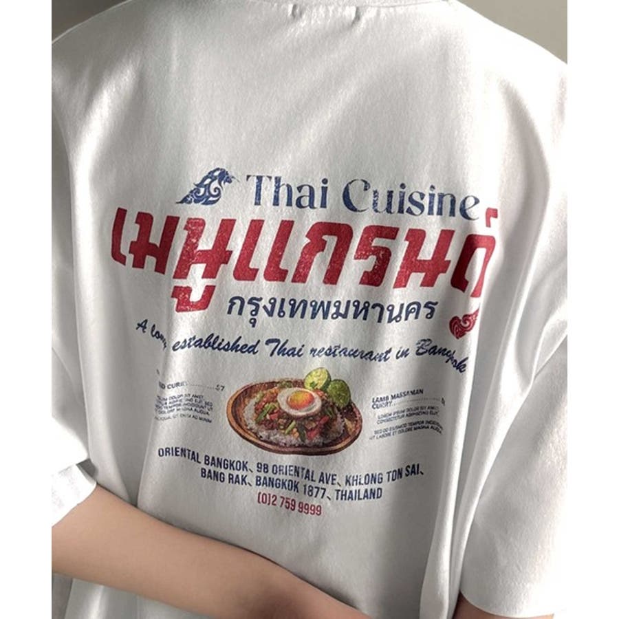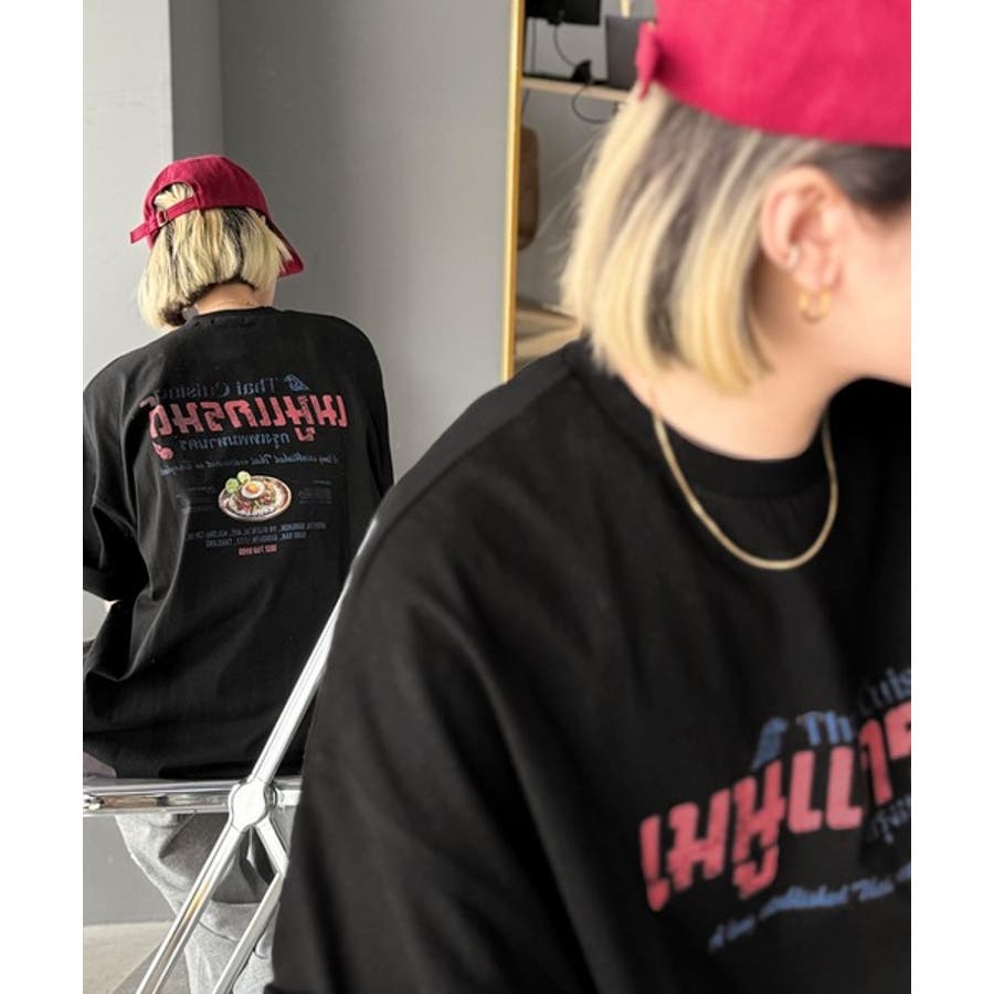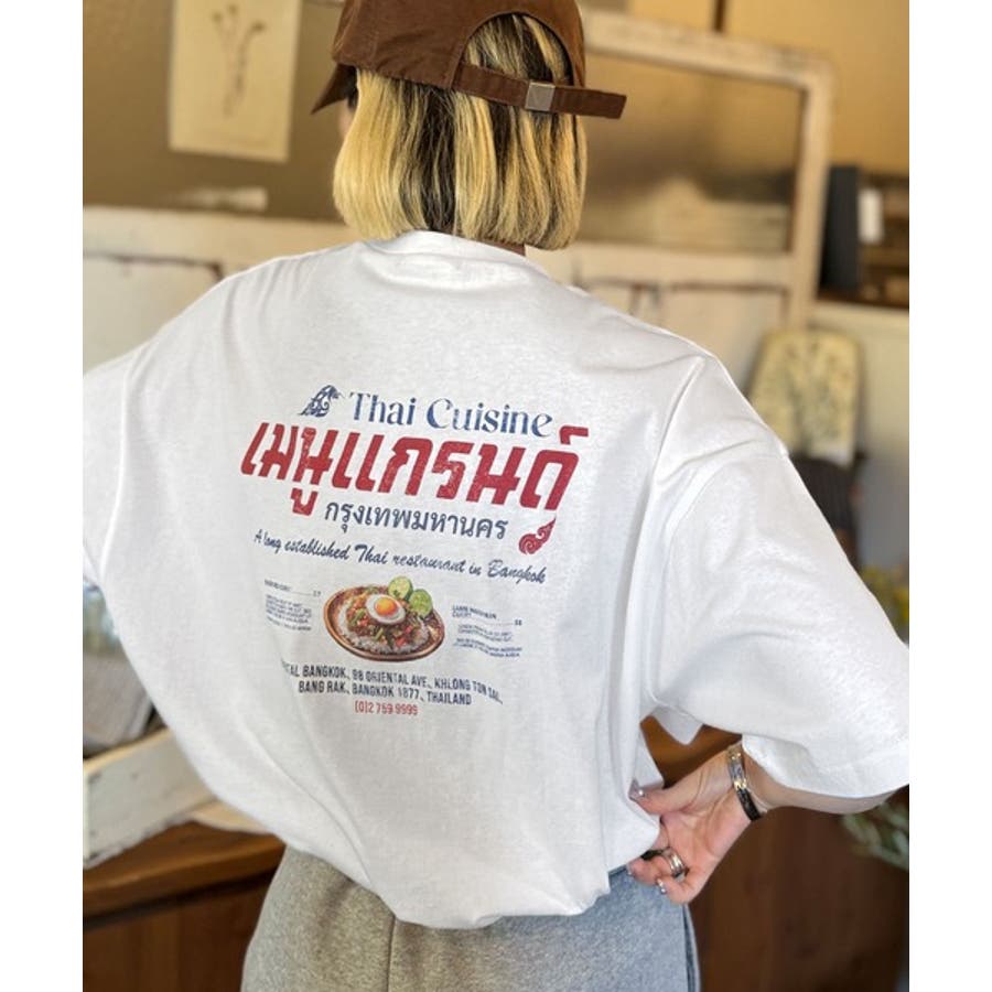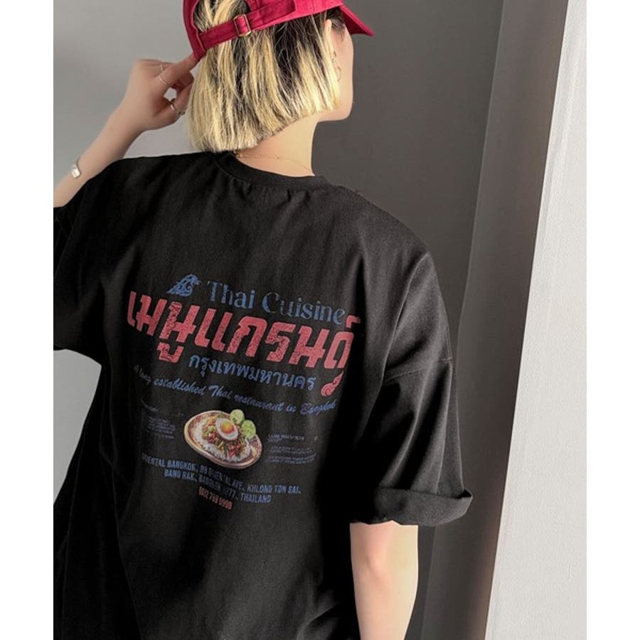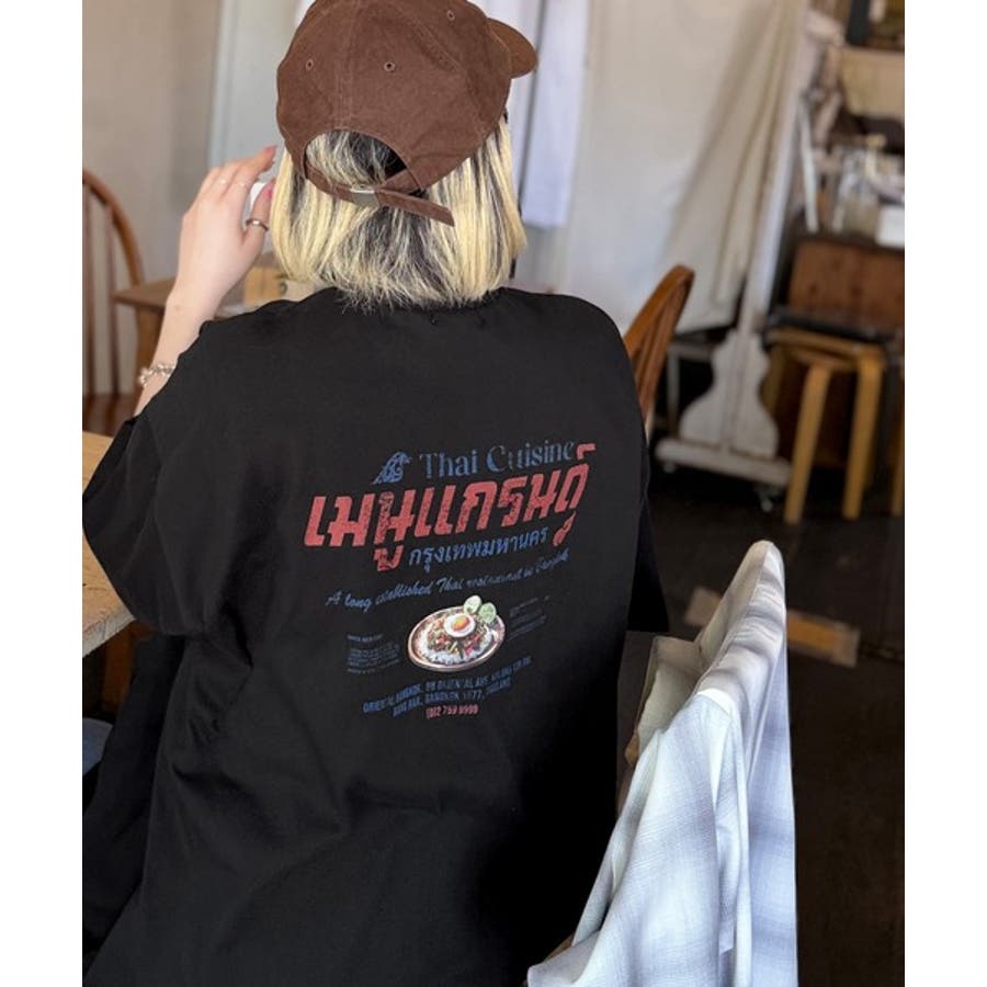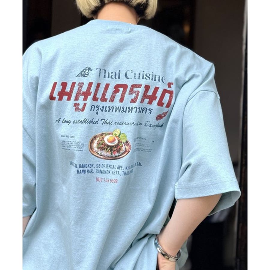 《JaVaジャバコラボ》お洒落見え確定。綿100%タイ料理メニュー風プリントルー…