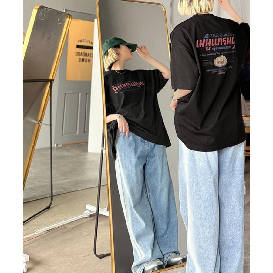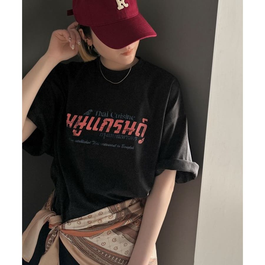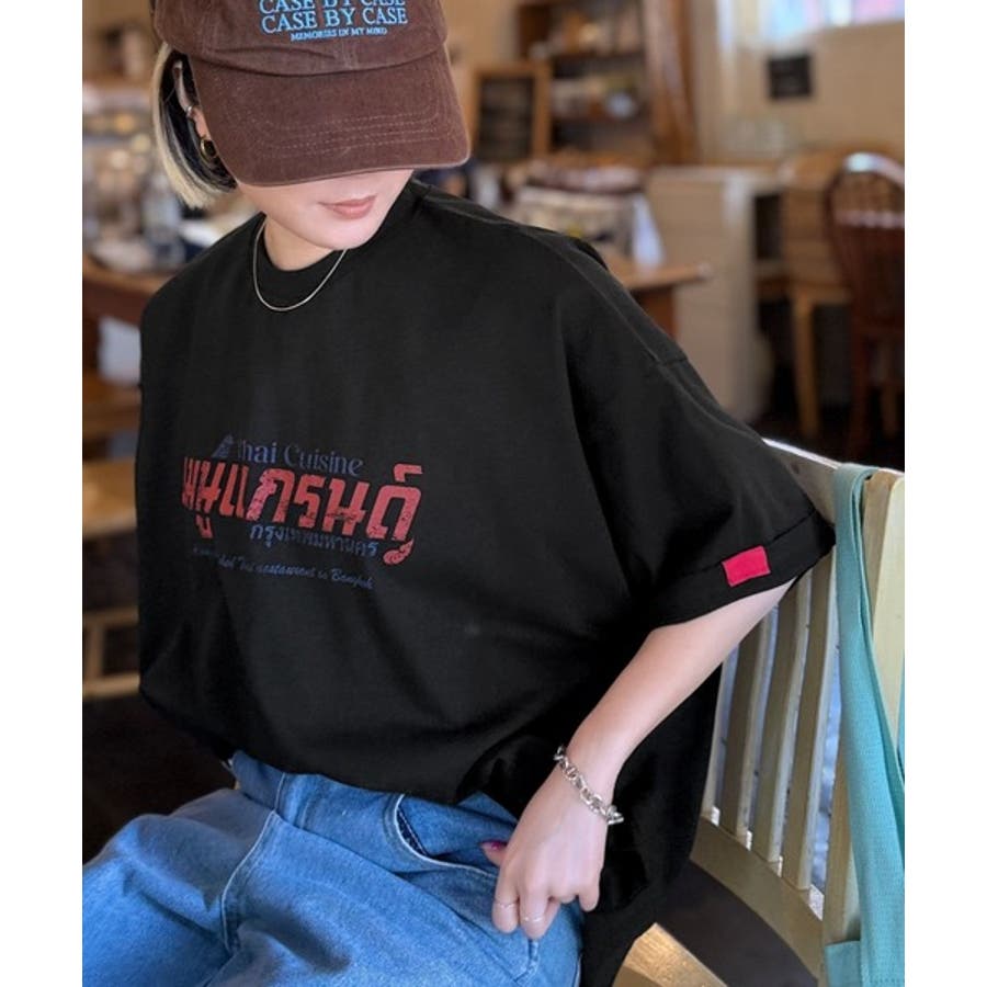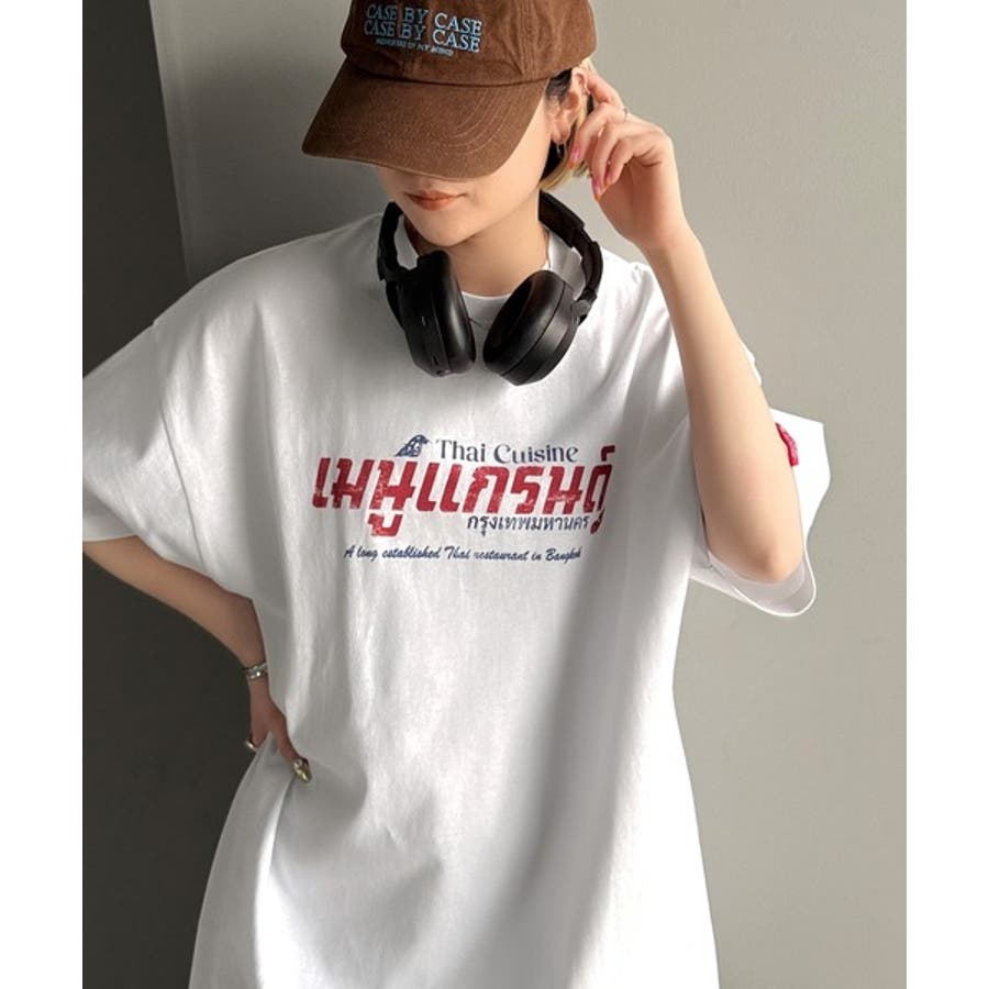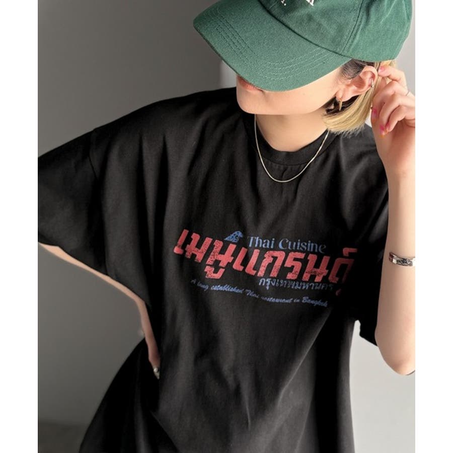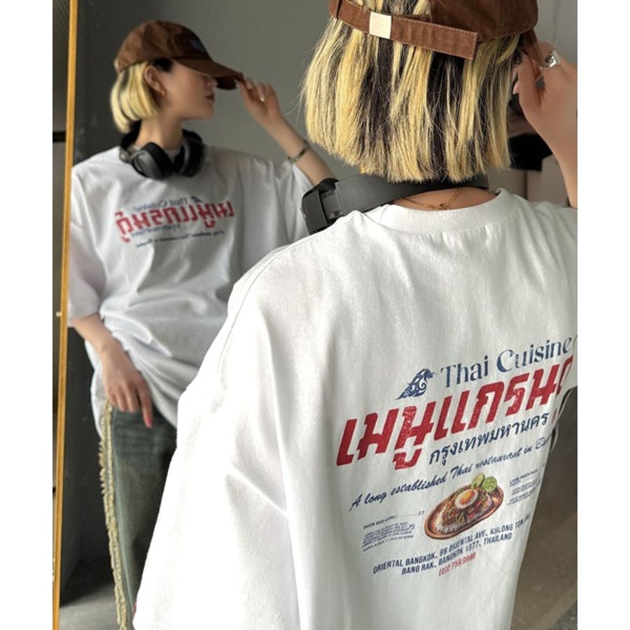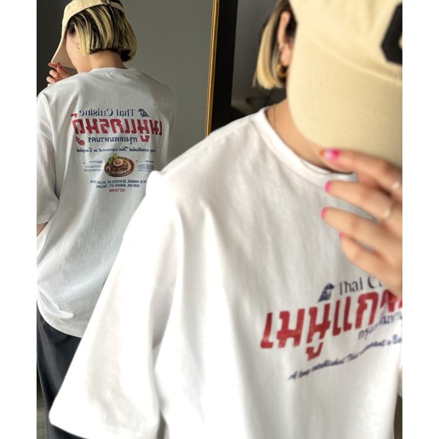 《JaVaジャバコラボ》お洒落見え確定。綿100%タイ料理メニュー風プリントルー…
