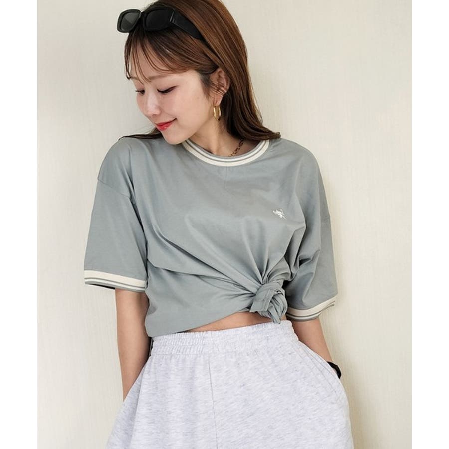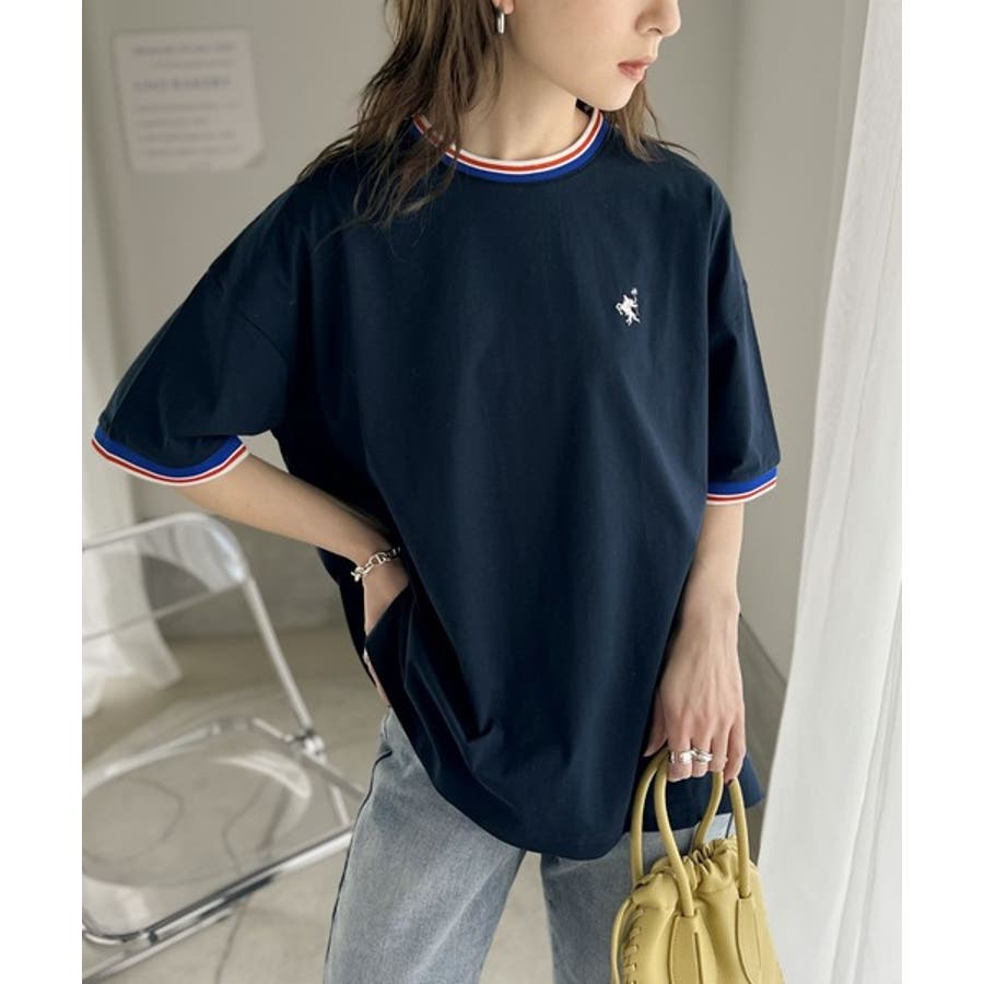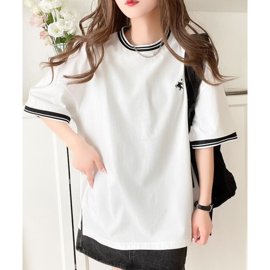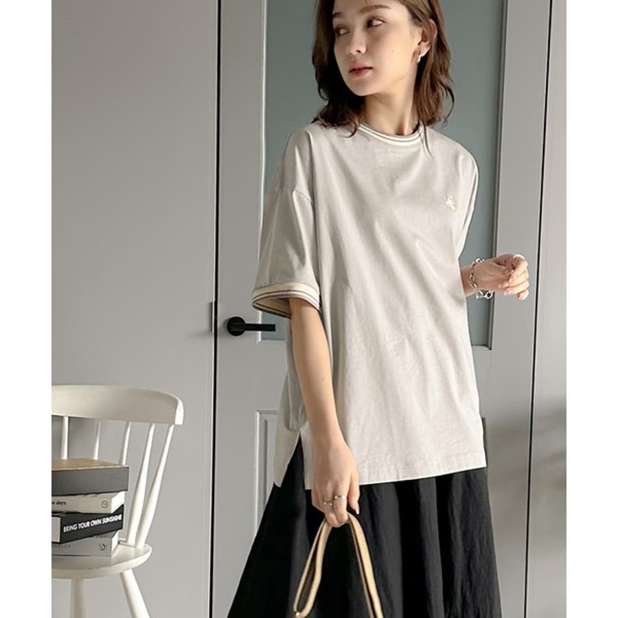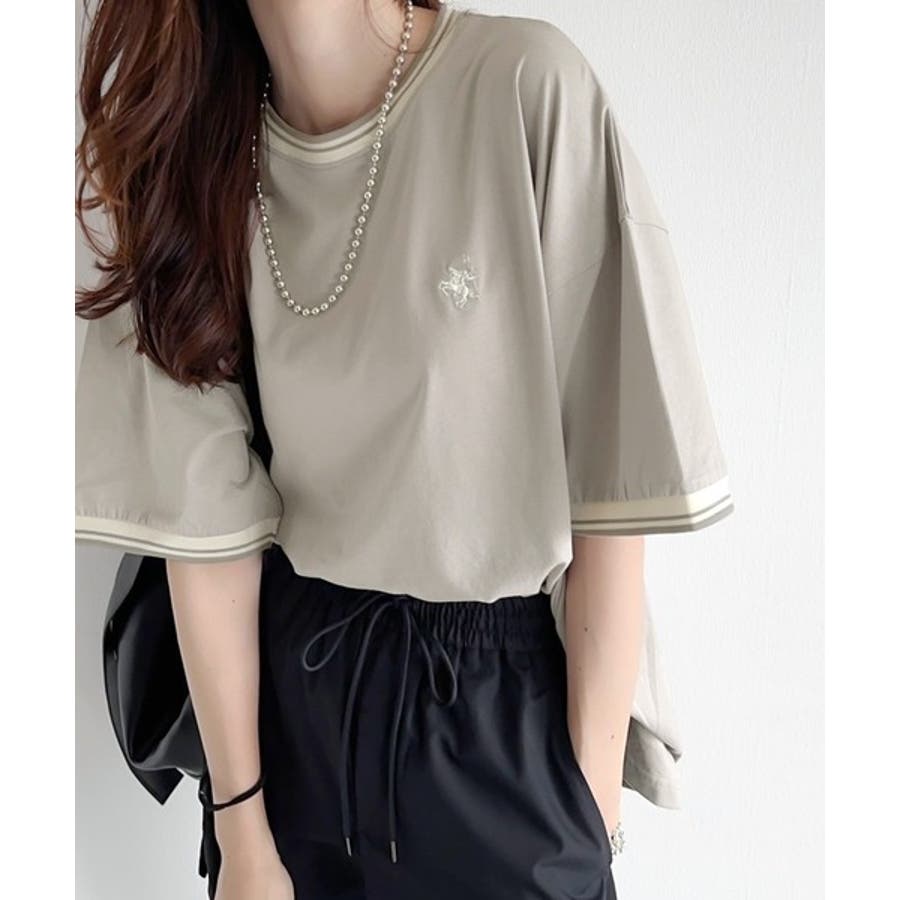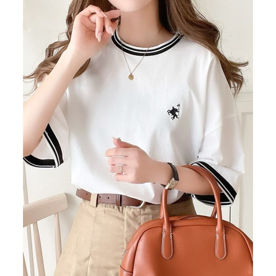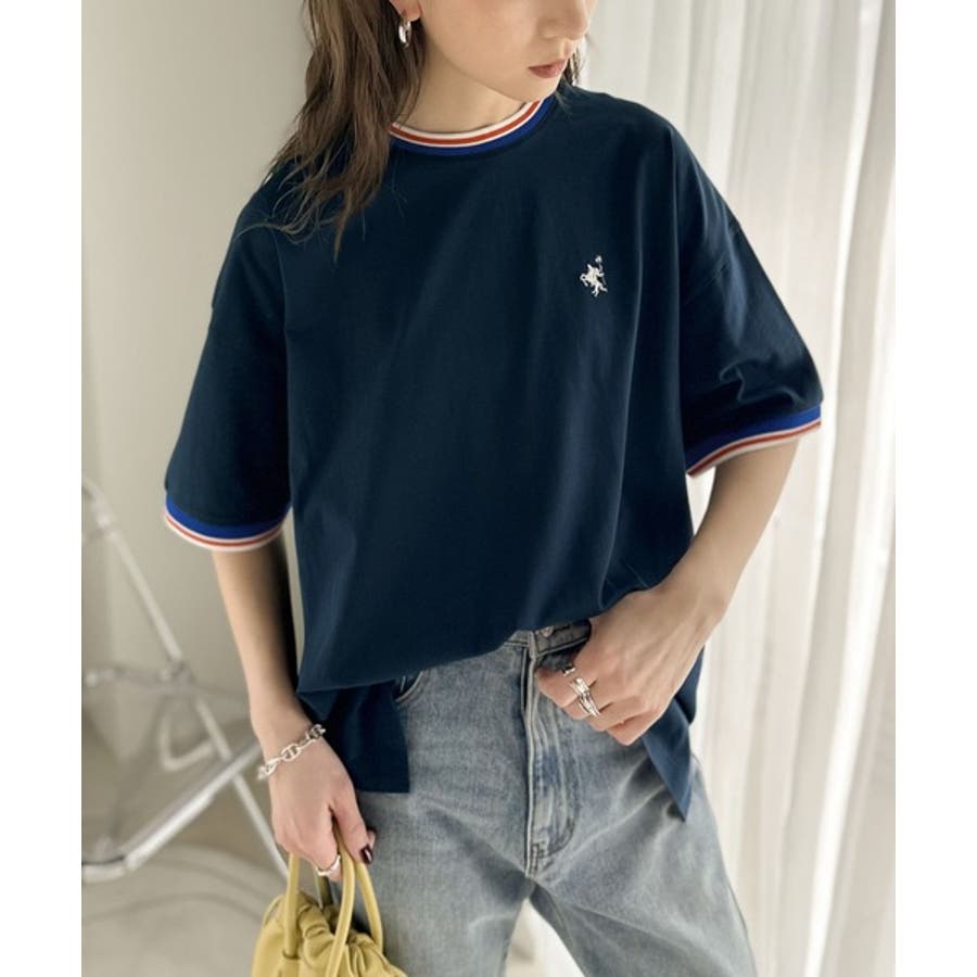 大人スポーティー。綿100%シルケット 配色刺繍Tシャツ