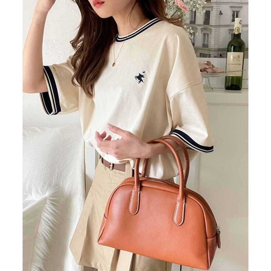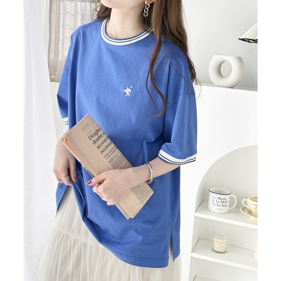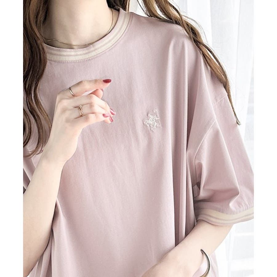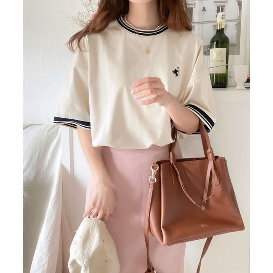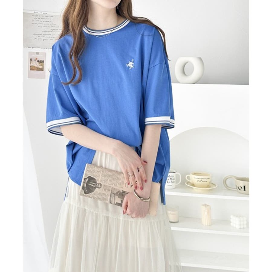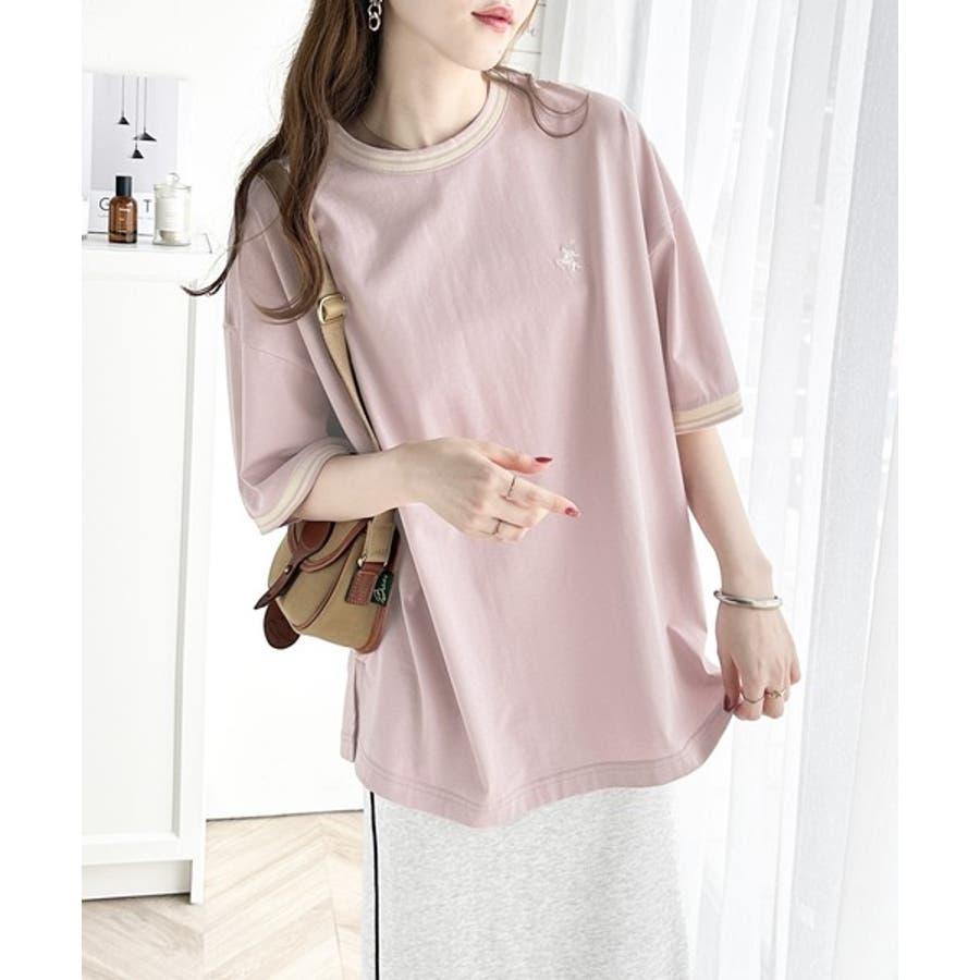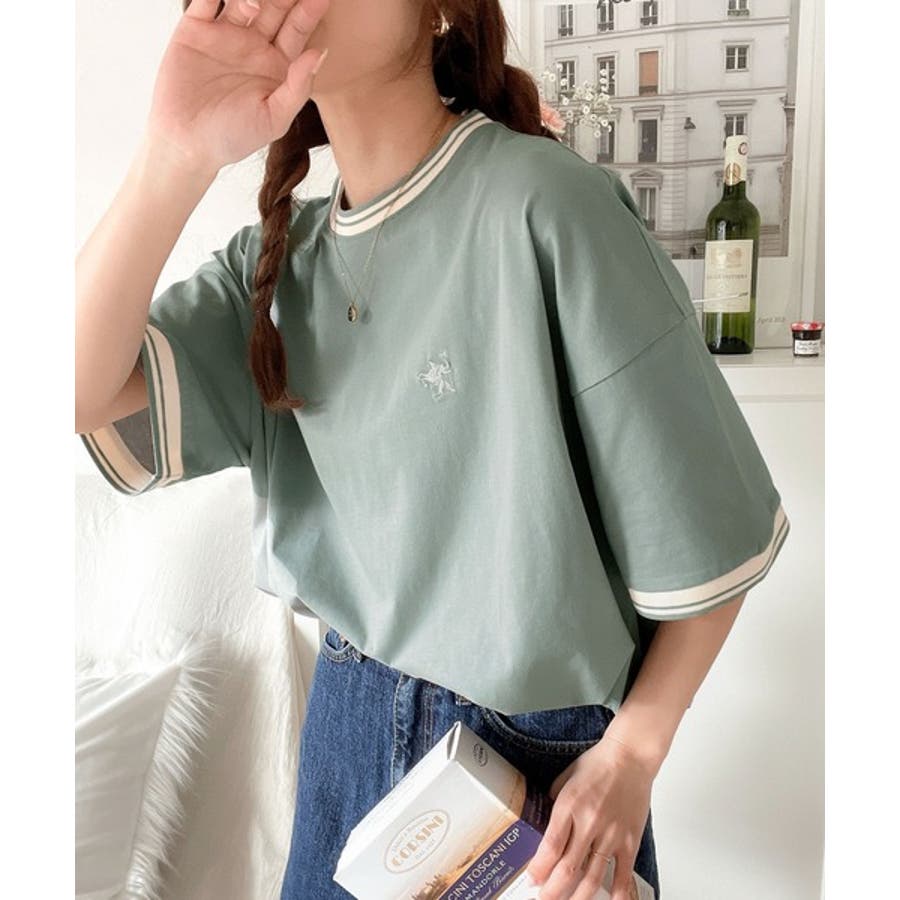 大人スポーティー。綿100%シルケット 配色刺繍Tシャツ