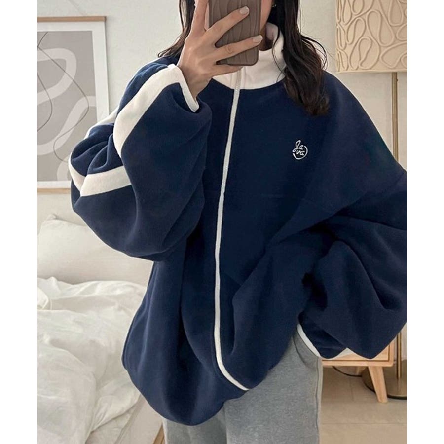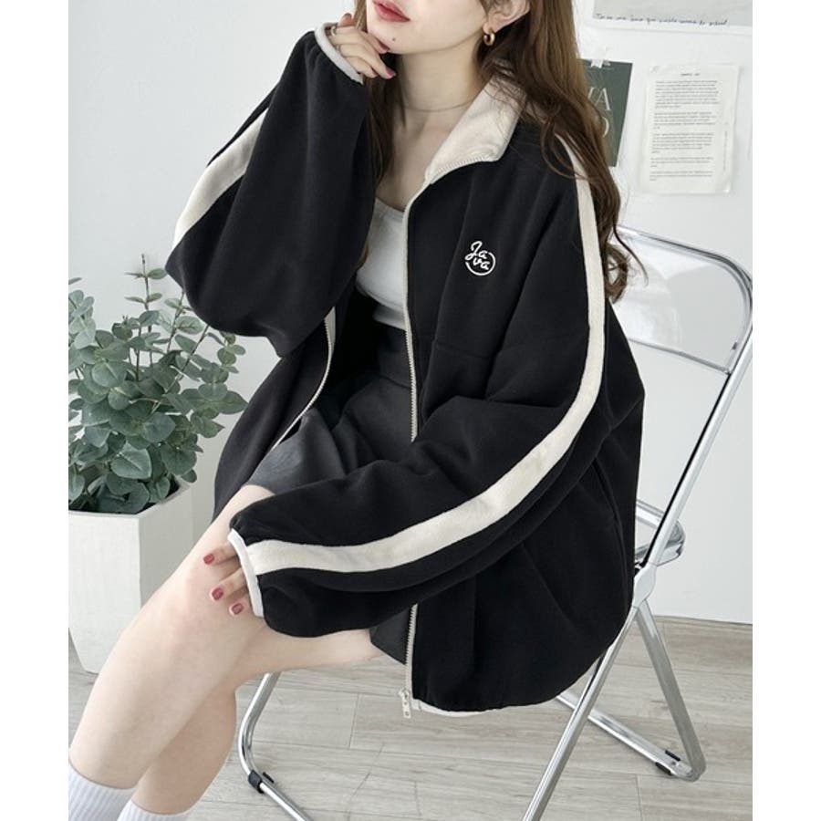 大人スポーティ ロゴ刺繍 フリースサイドライン配色フルジップトップス