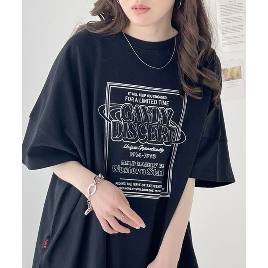 メンズライクなオーバーサイズTにレトロポスターグラフィックをふんだんに刺繍した主役級Tシャツ。