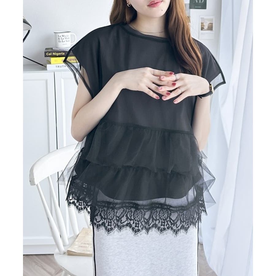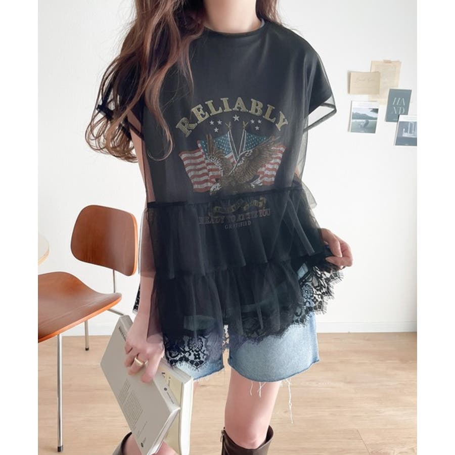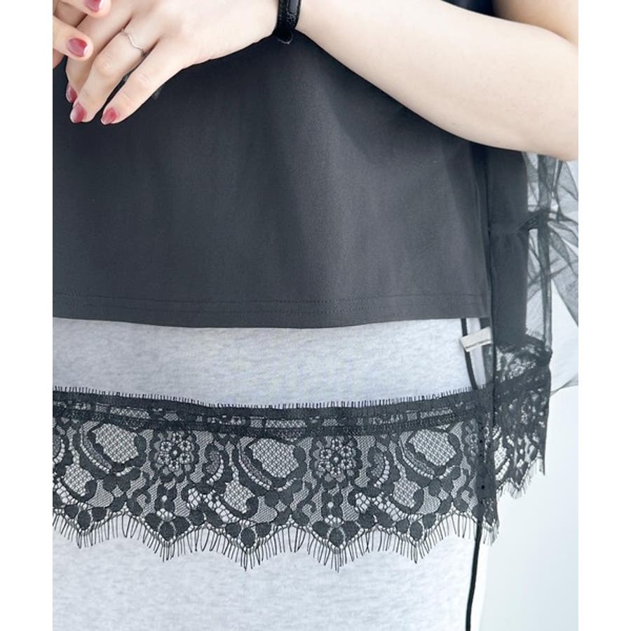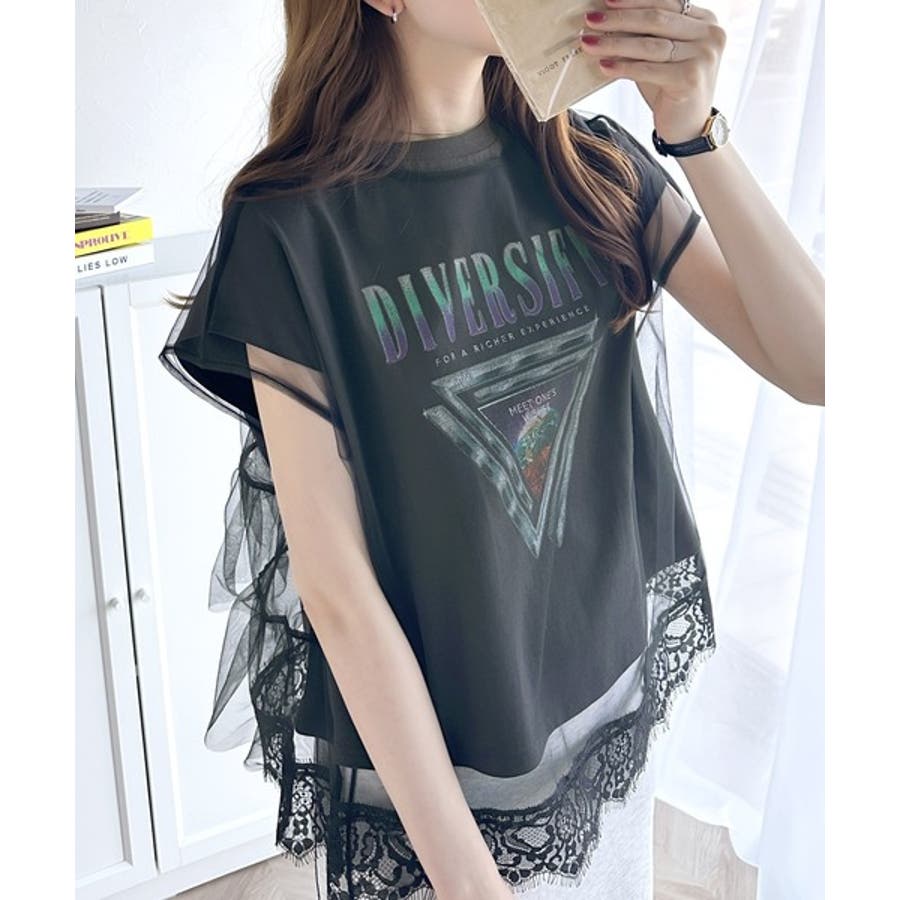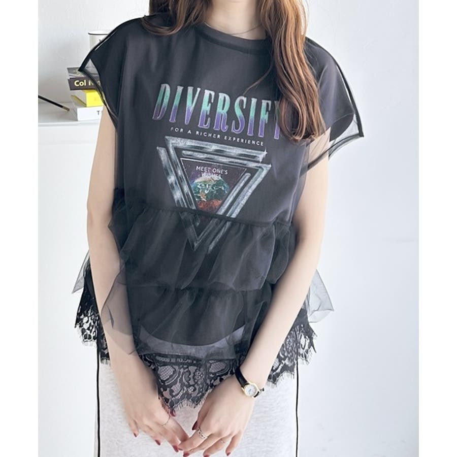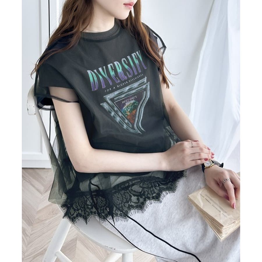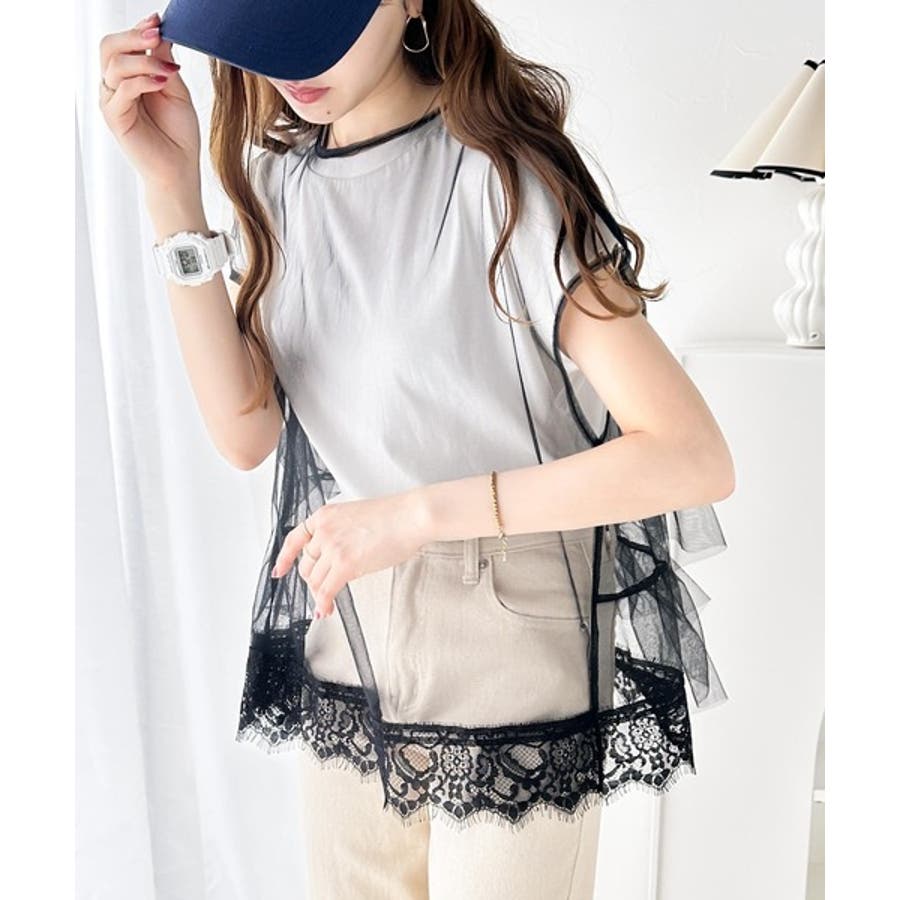 繊細で透明感のあるチュールにTシャツをドッキングした技ありデザイン。