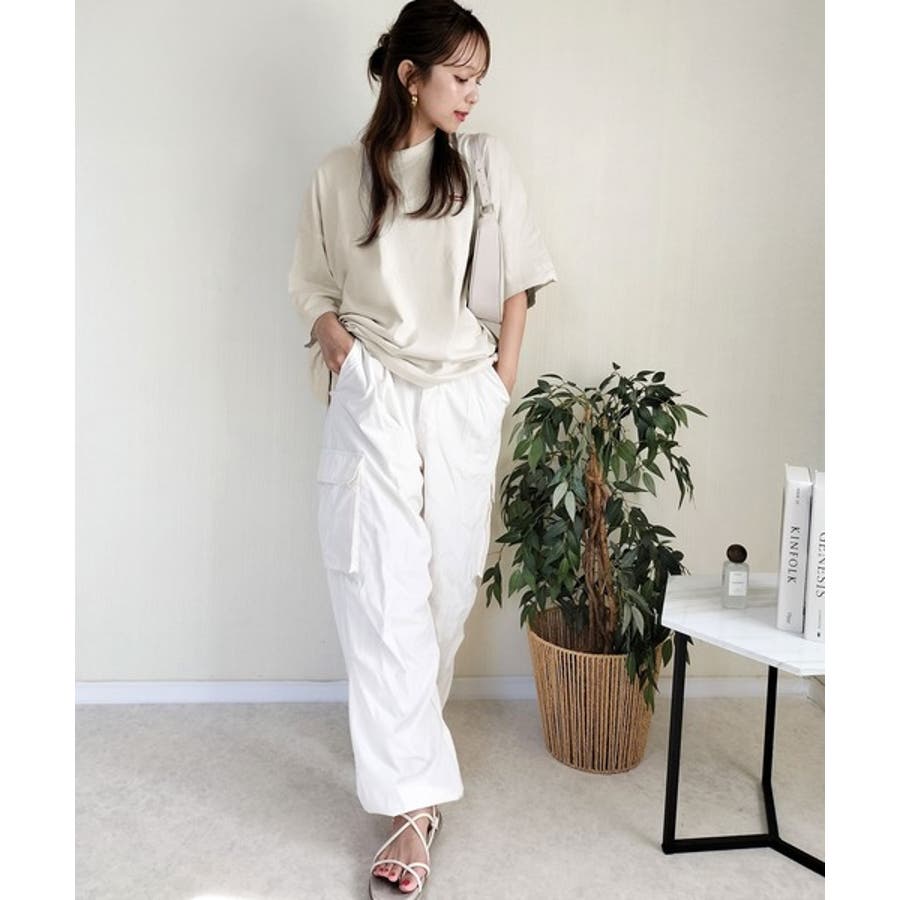 ゆったりしたビッグシルエットと、肩を落としたドロップショルダーデザインがトレンドライクな印象に。
