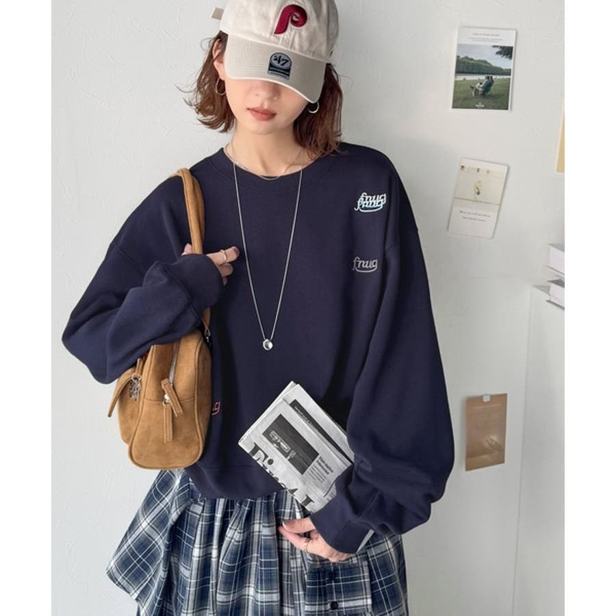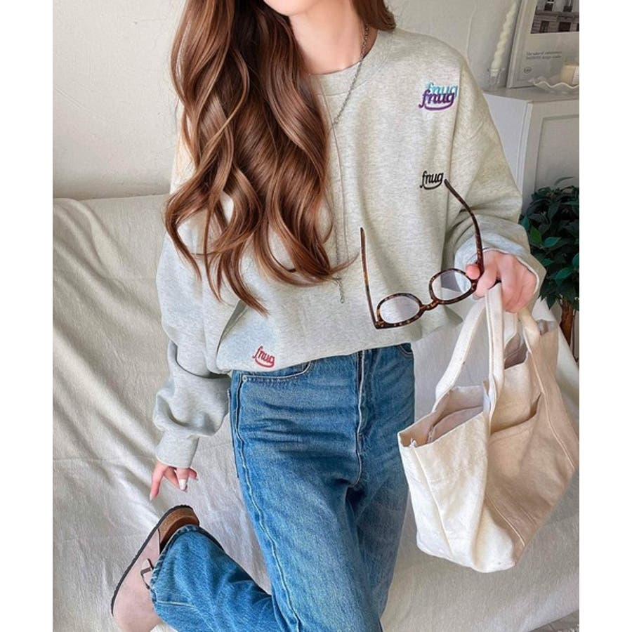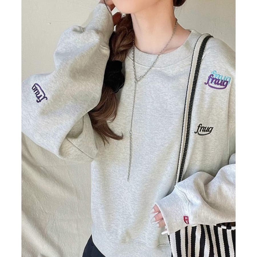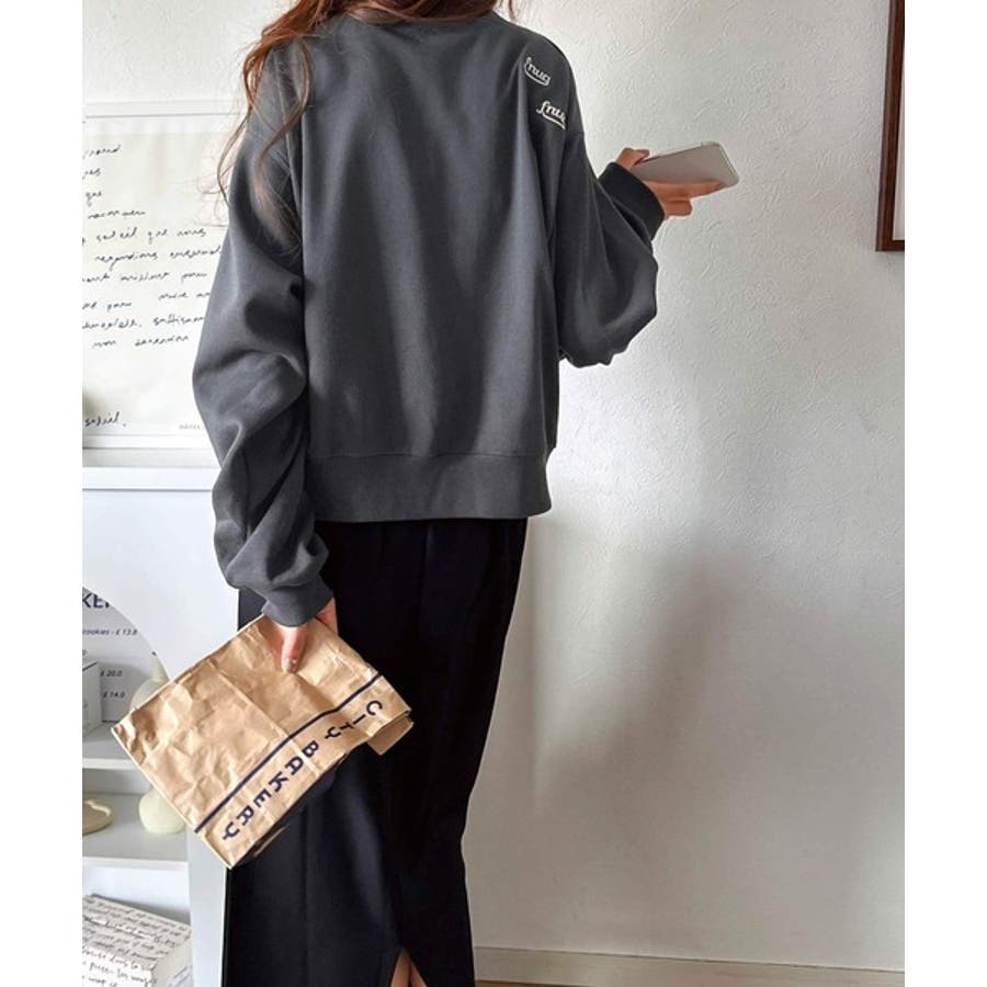 トレンドのランダム刺繍を施したこなれ感のある短丈のスウェット。