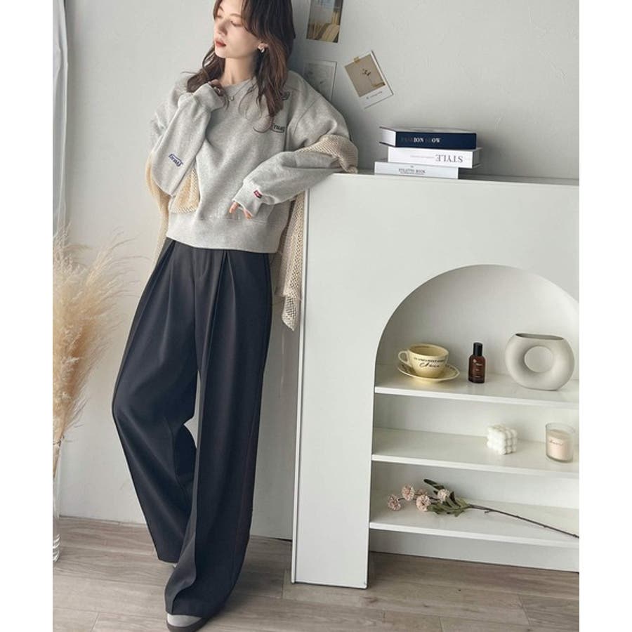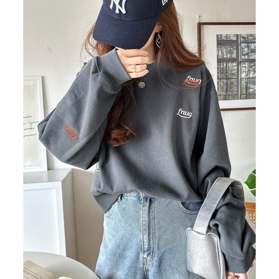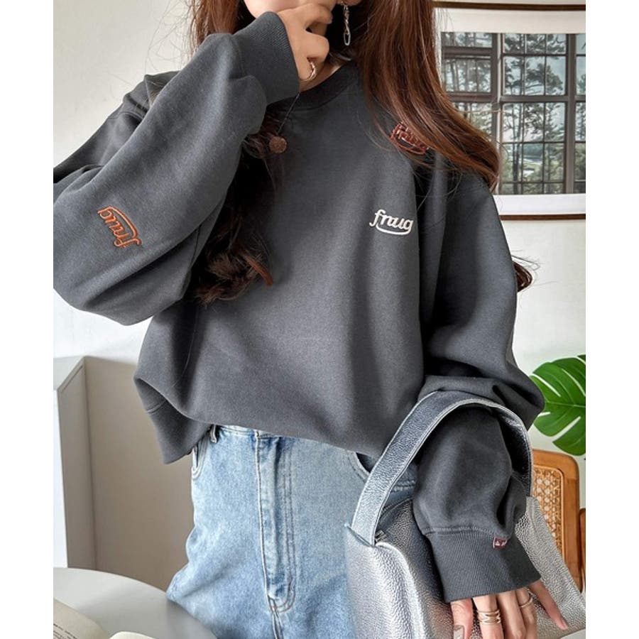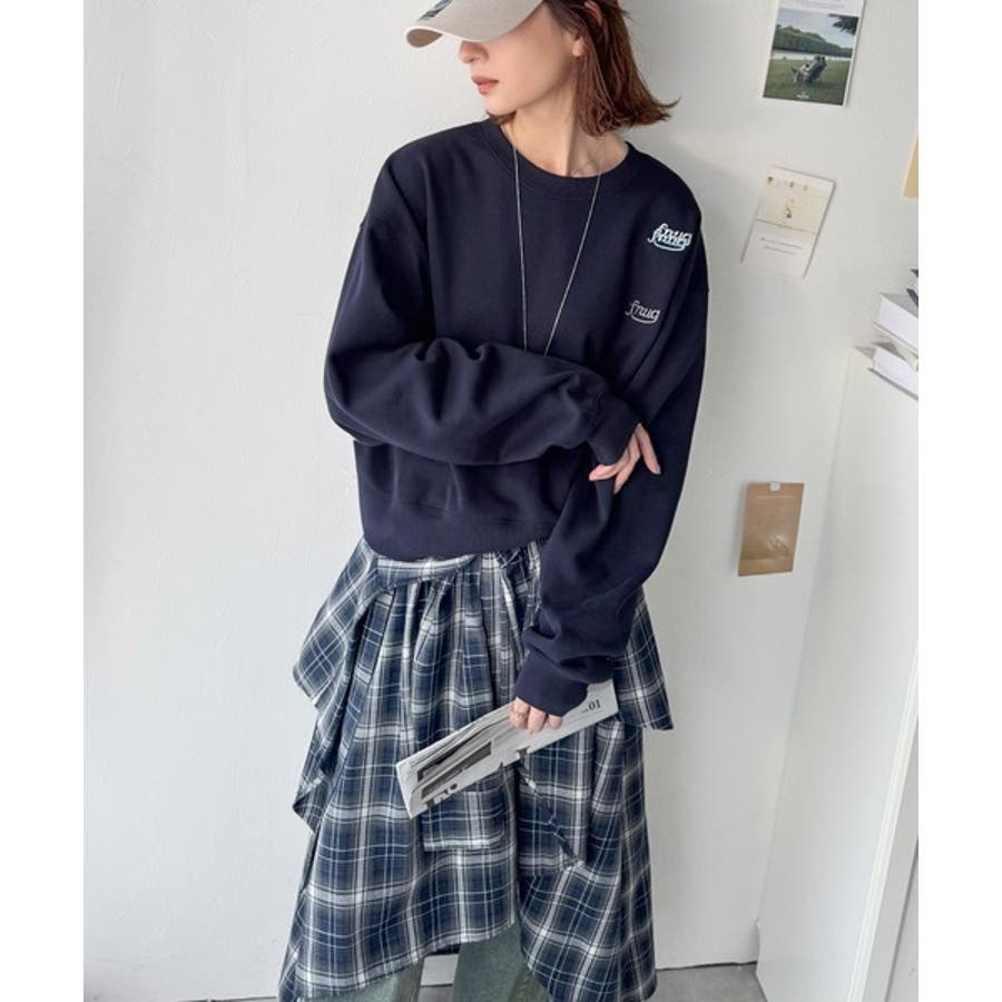 トレンドのランダム刺繍を施したこなれ感のある短丈のスウェット。