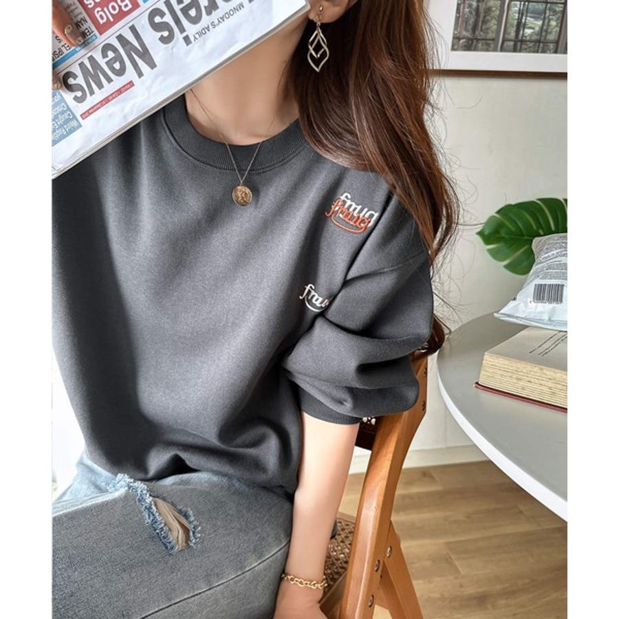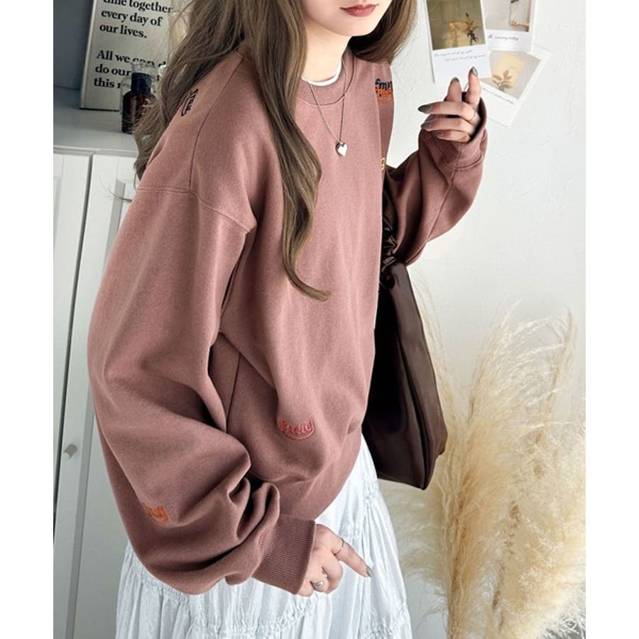 ランダム刺繍をあしらったデザイン性のある裏起毛スウェット。