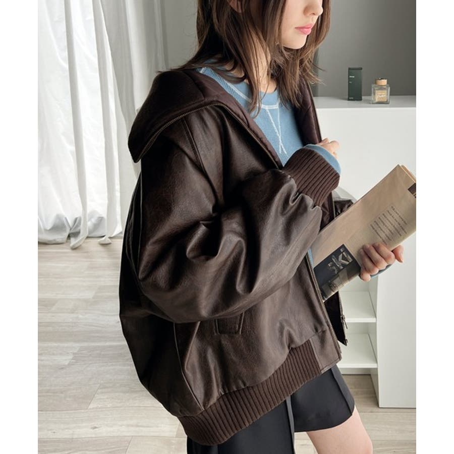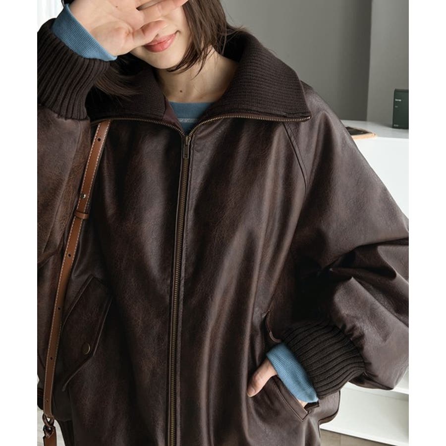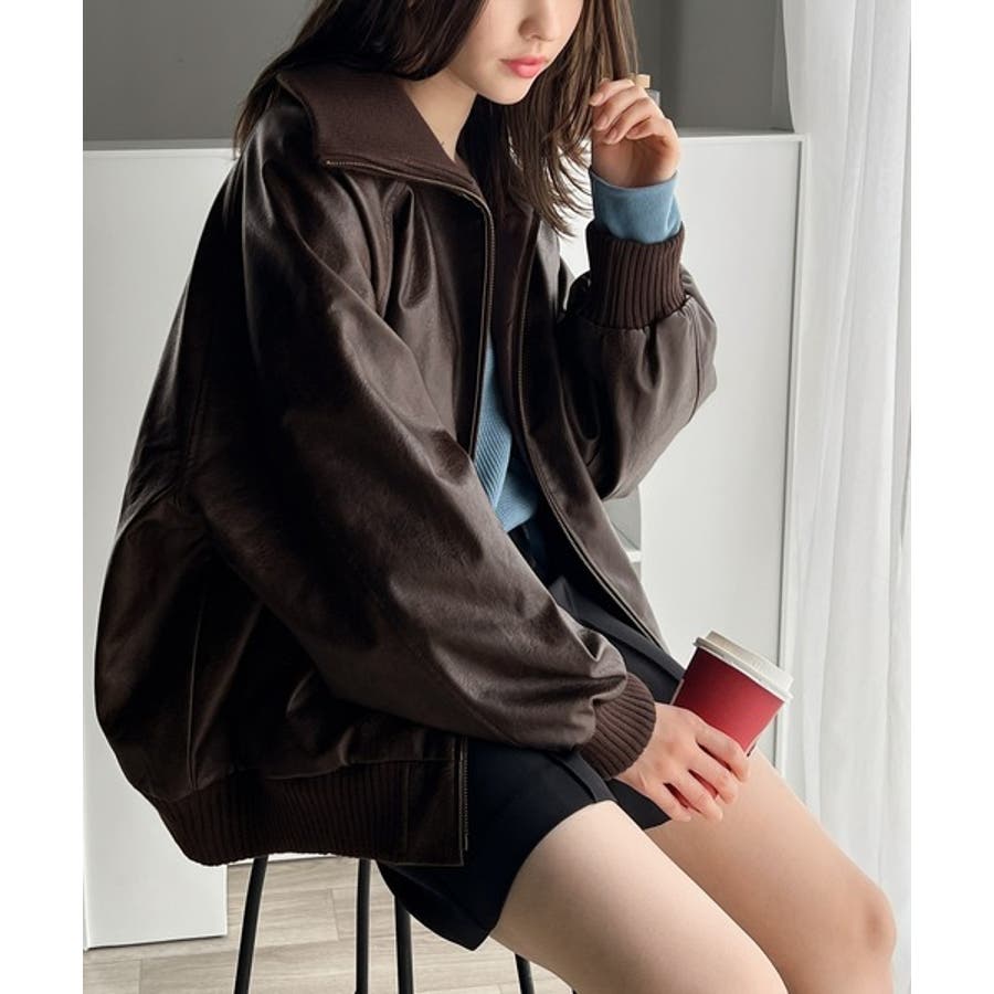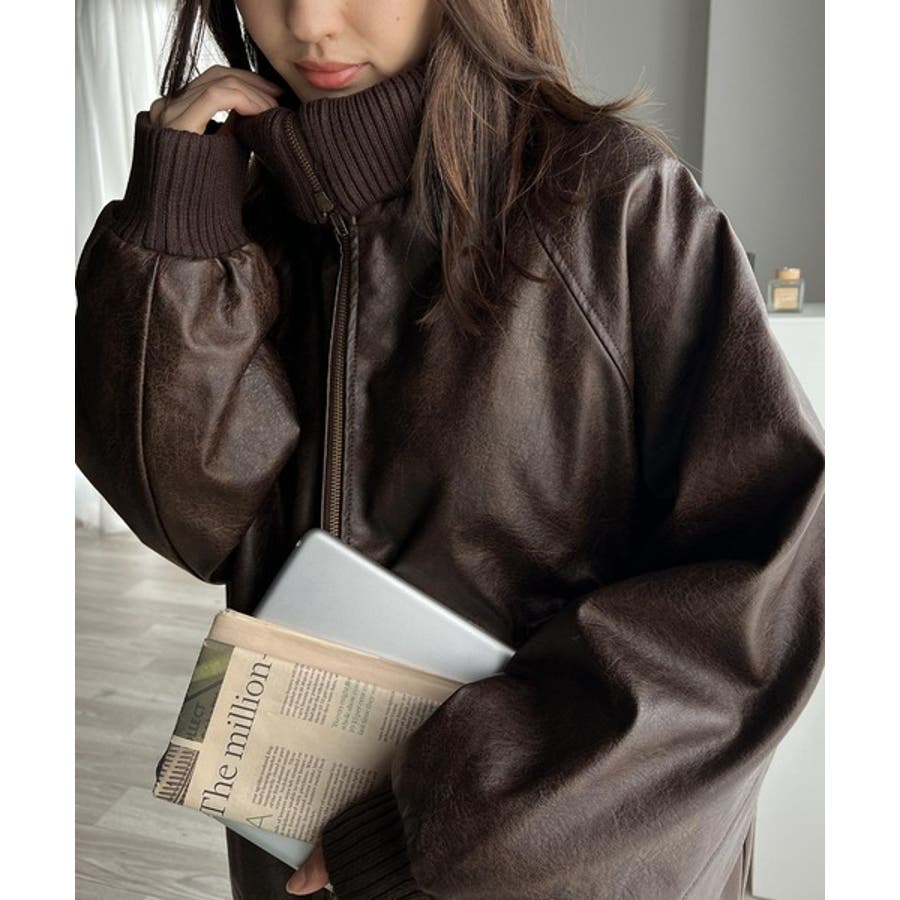 トレンドの古着にあるようなオーバーサイズのフェイクレザーブルゾン。