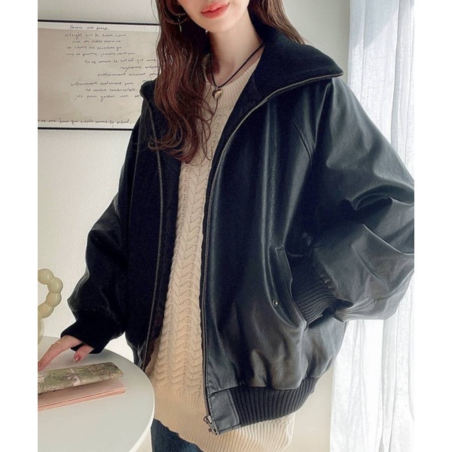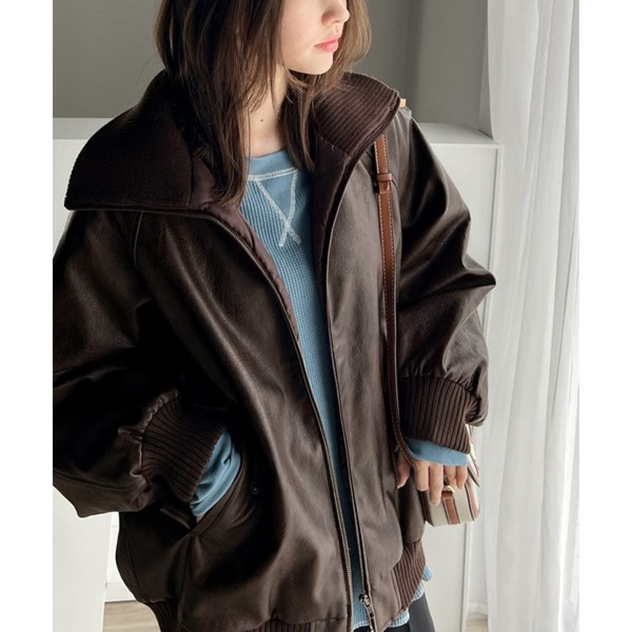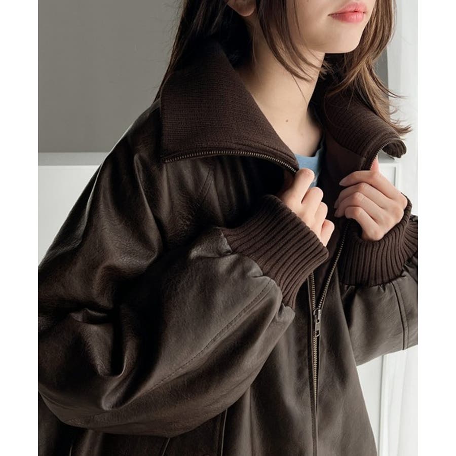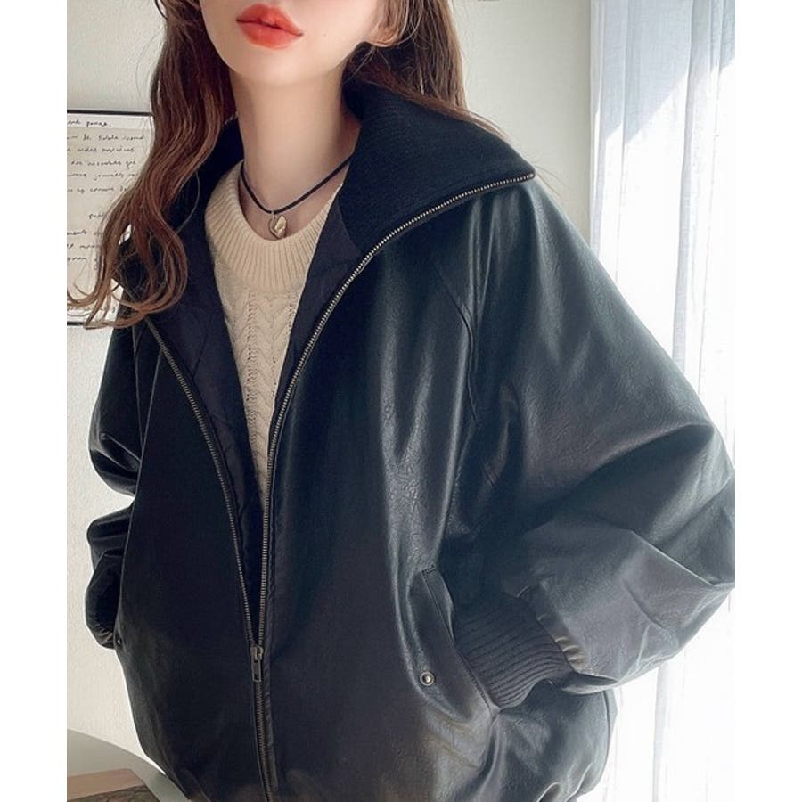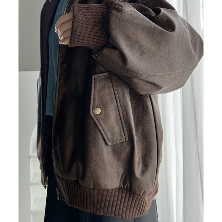 トレンドの古着にあるようなオーバーサイズのフェイクレザーブルゾン。