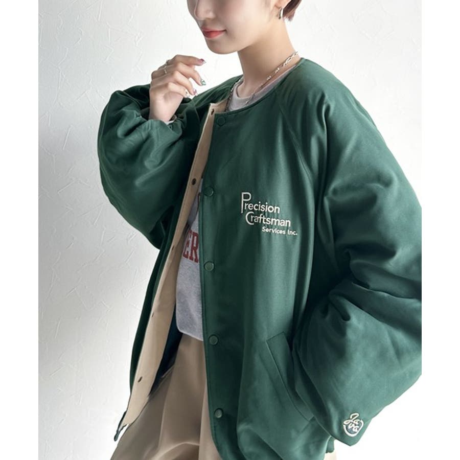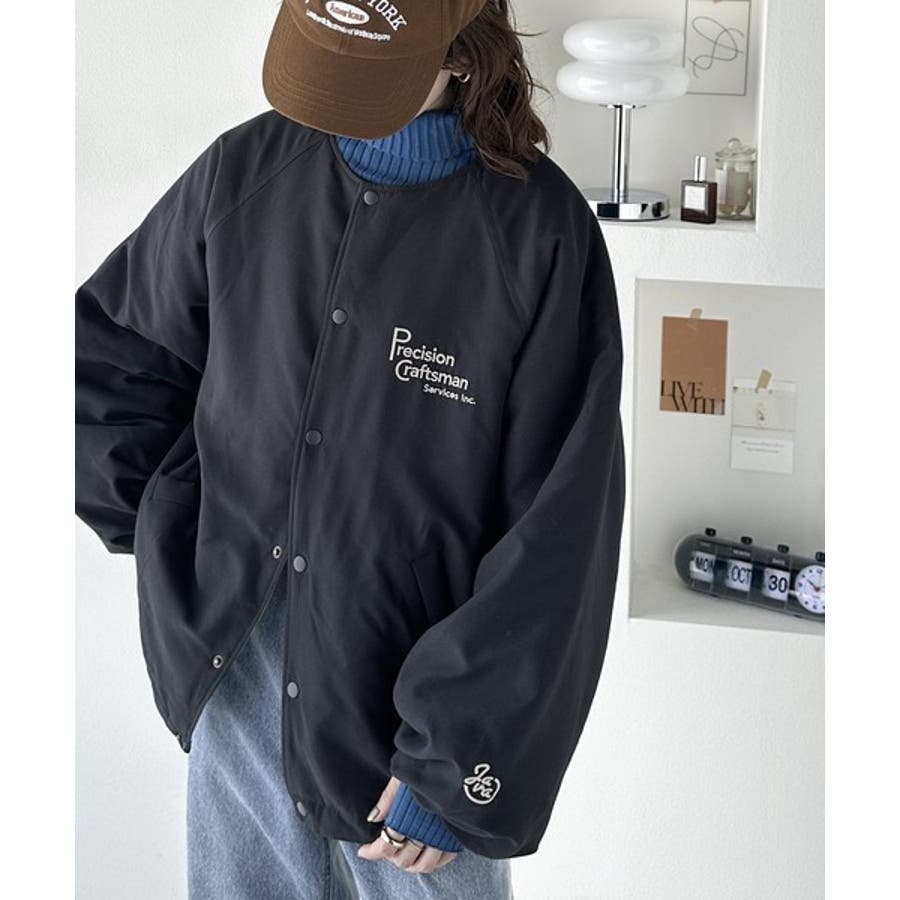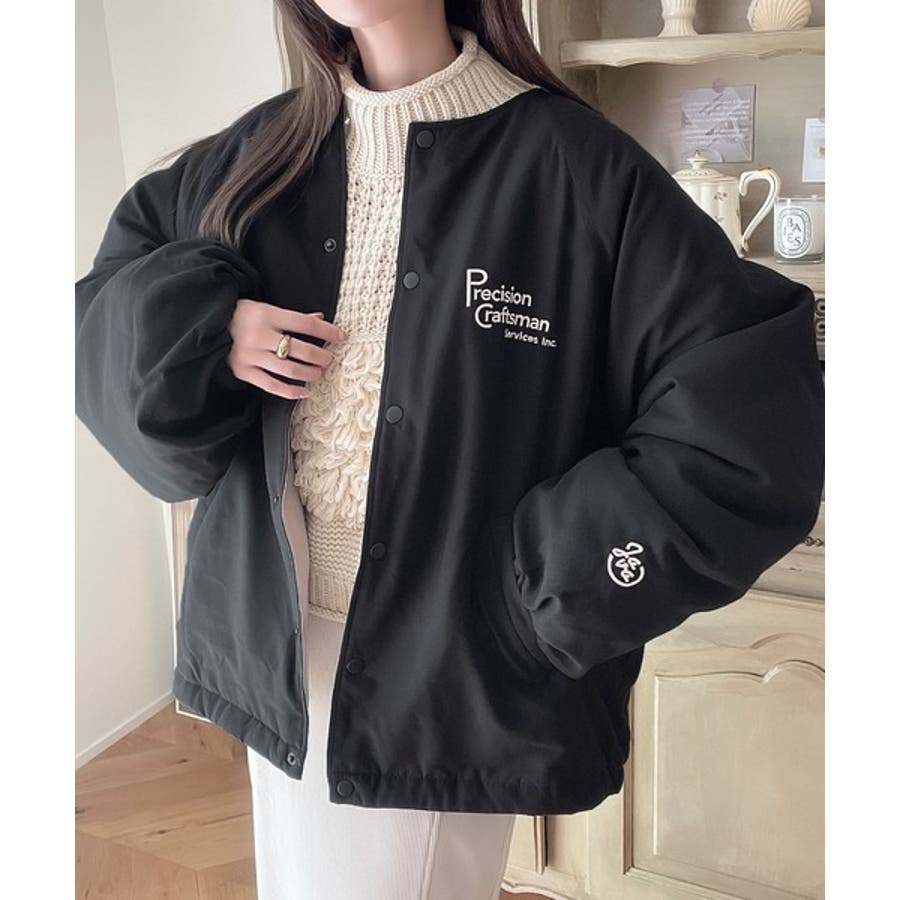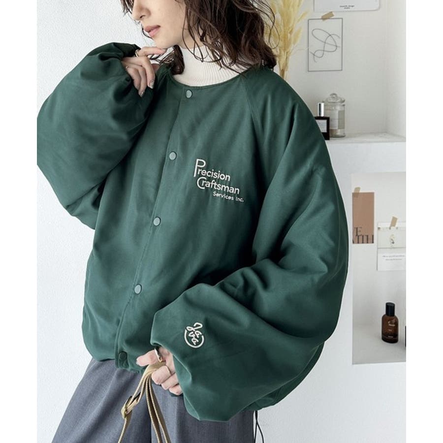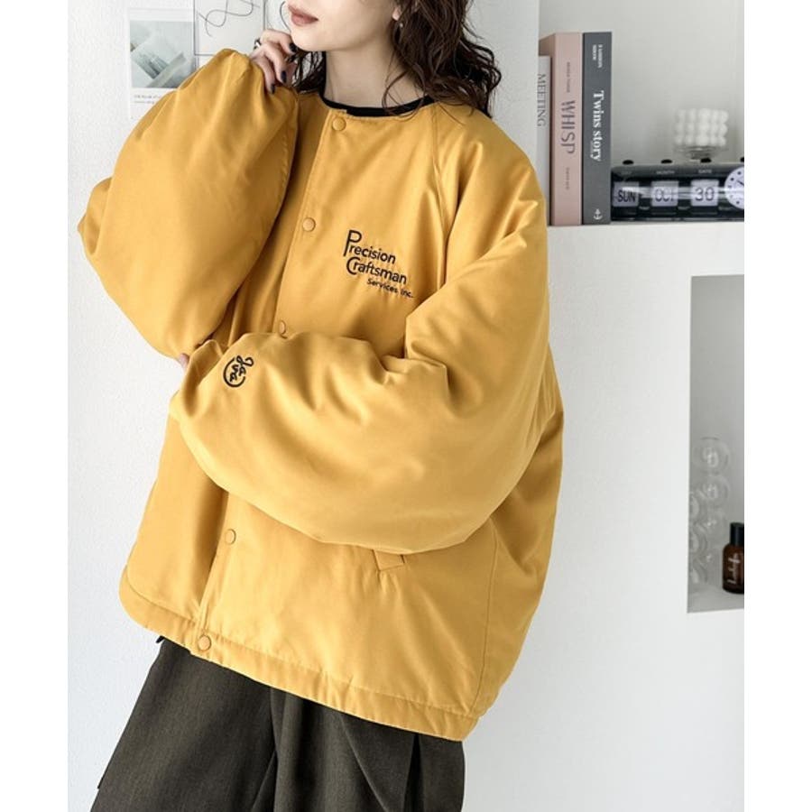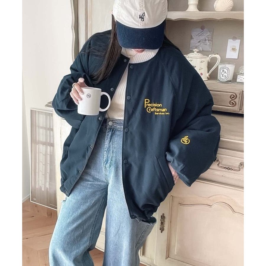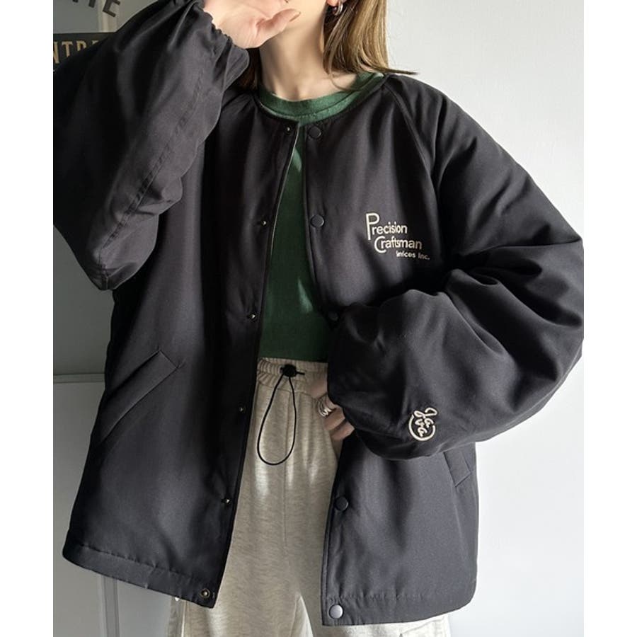 《JAVAジャバ 別注》ロゴ刺繍中綿ノーカラーブルゾン