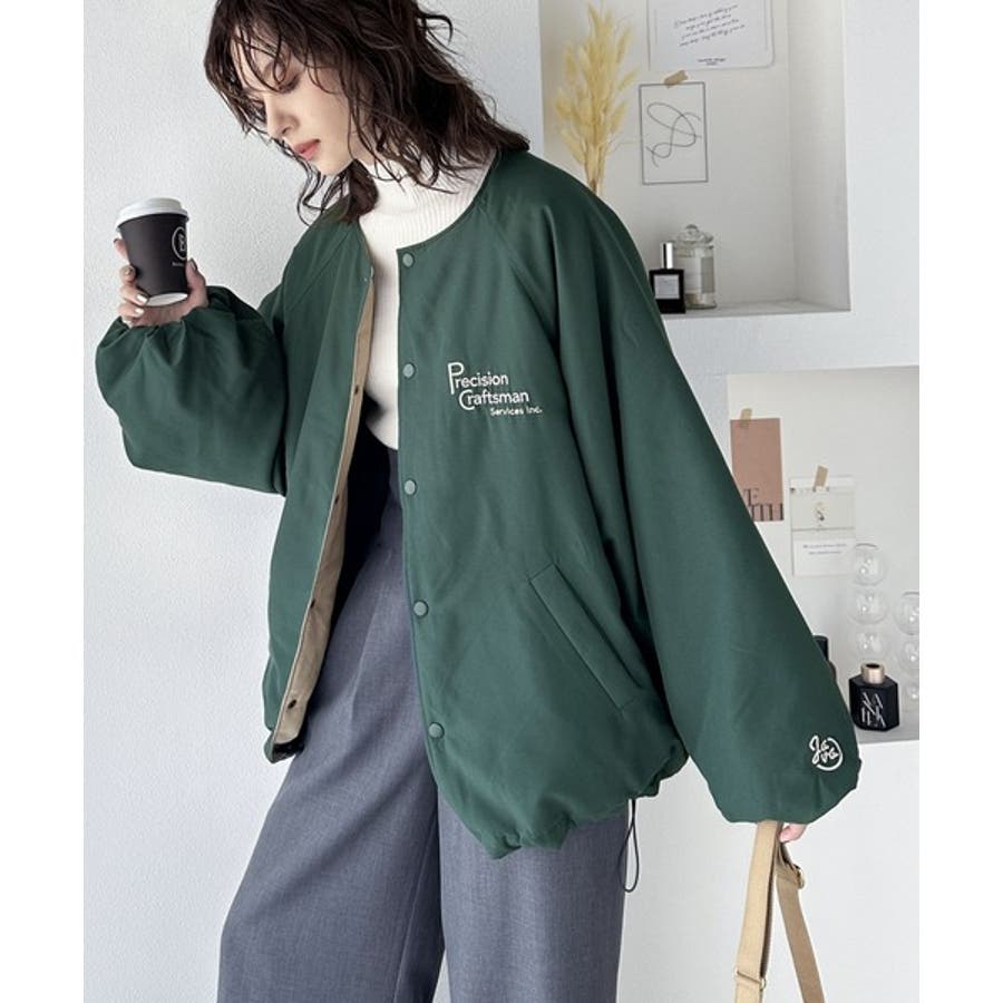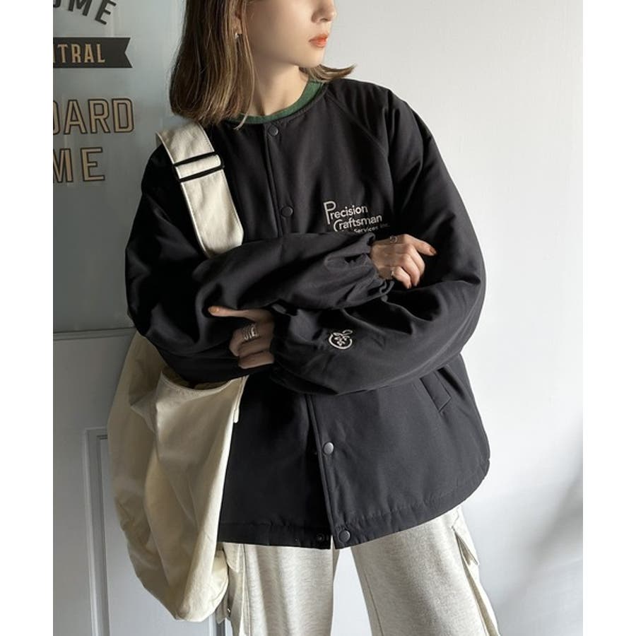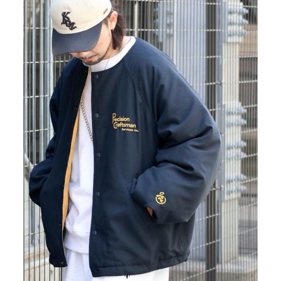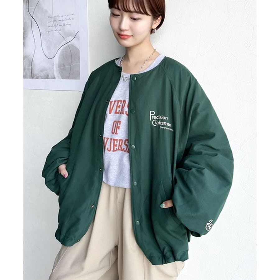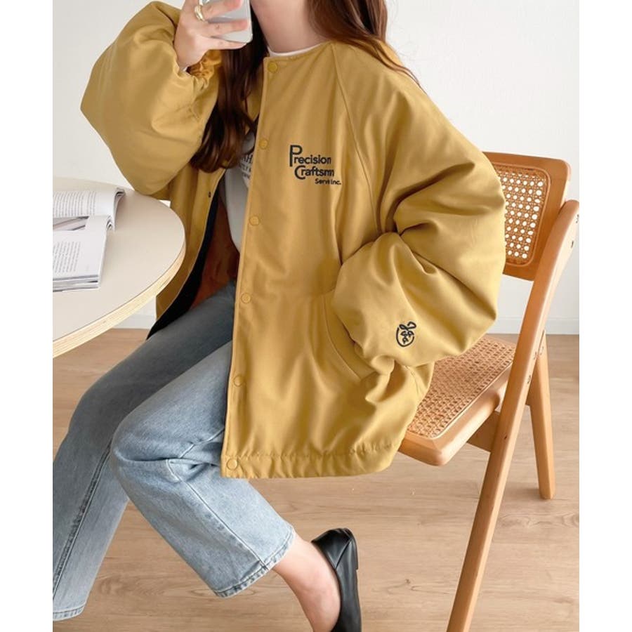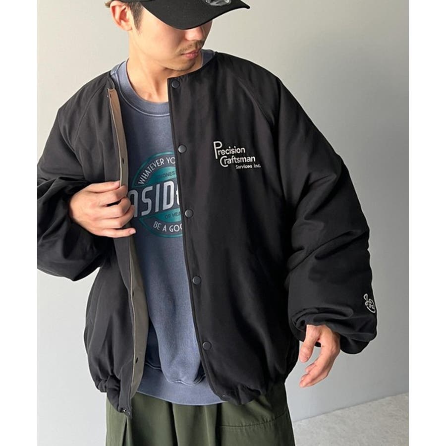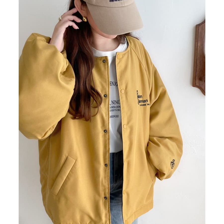 《JAVAジャバ 別注》ロゴ刺繍中綿ノーカラーブルゾン