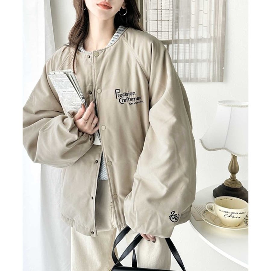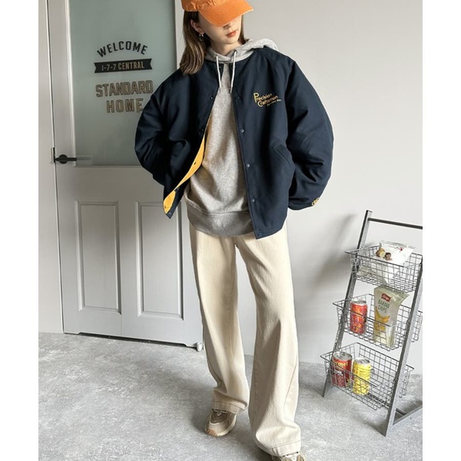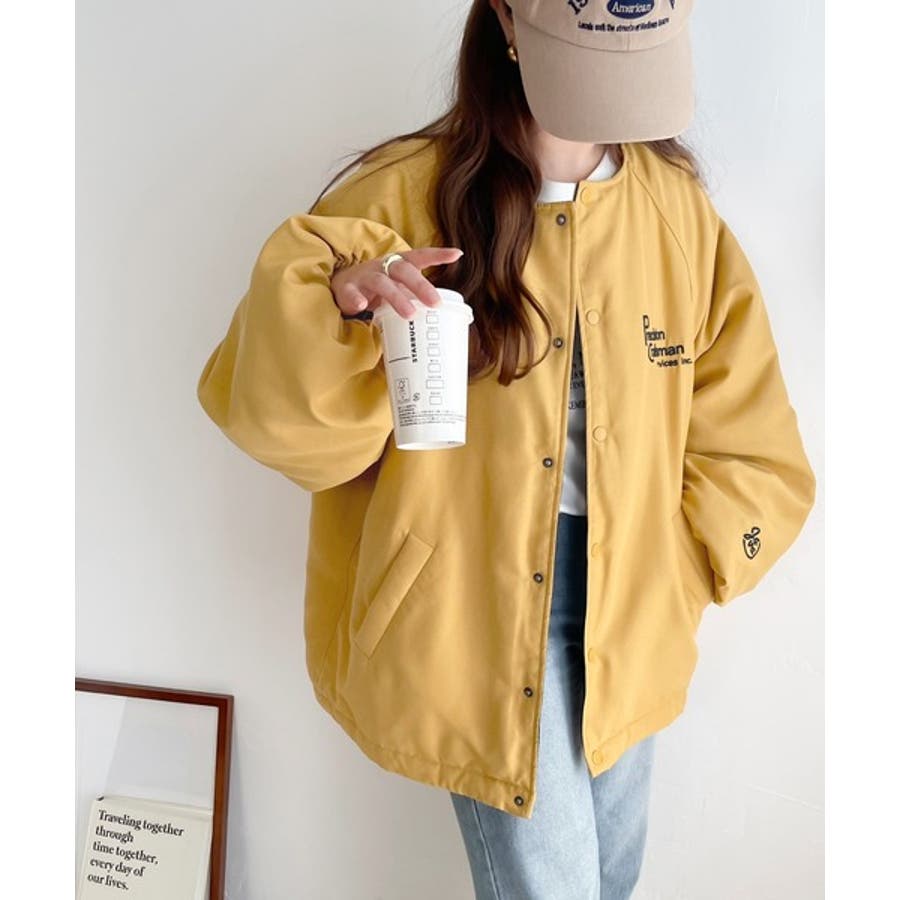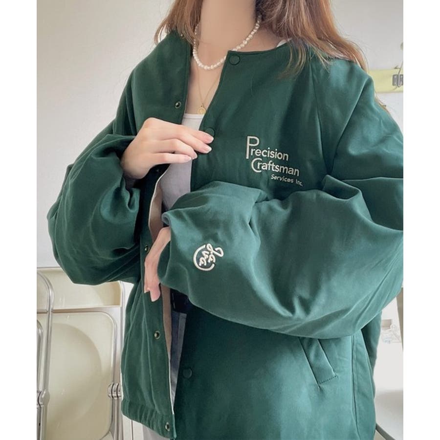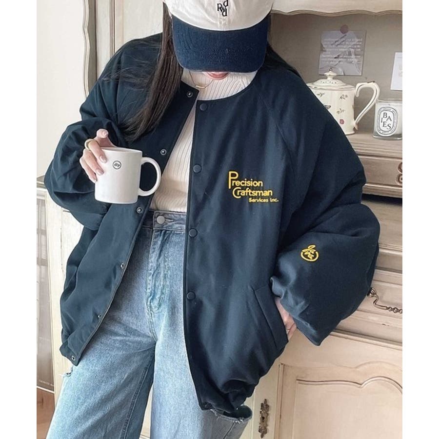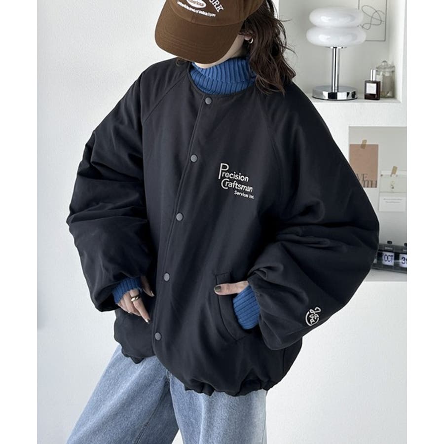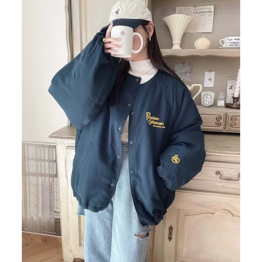 《JAVAジャバ 別注》ロゴ刺繍中綿ノーカラーブルゾン