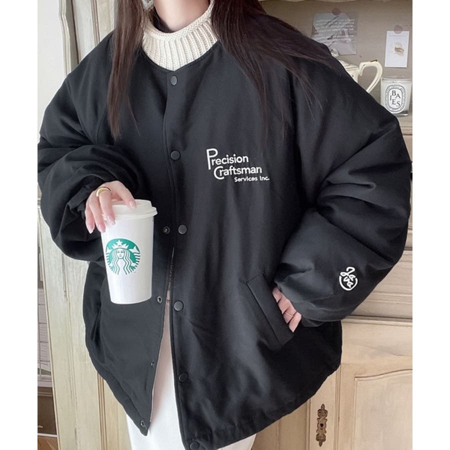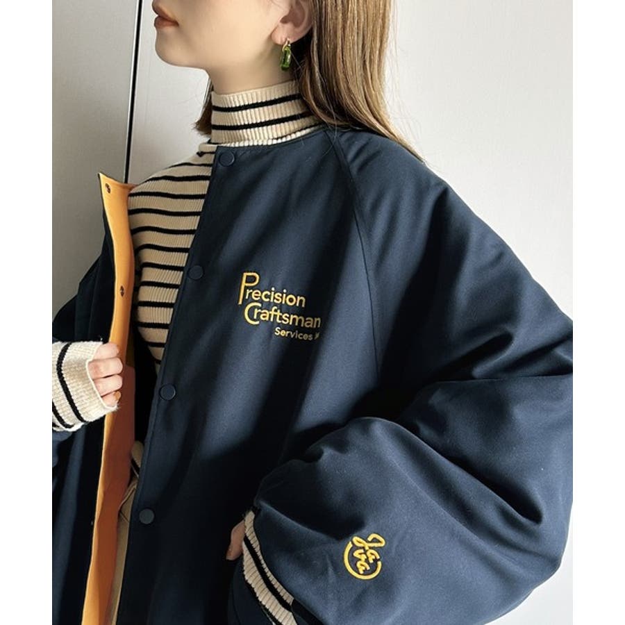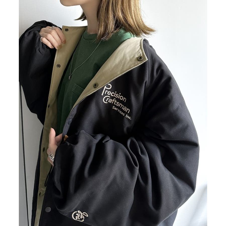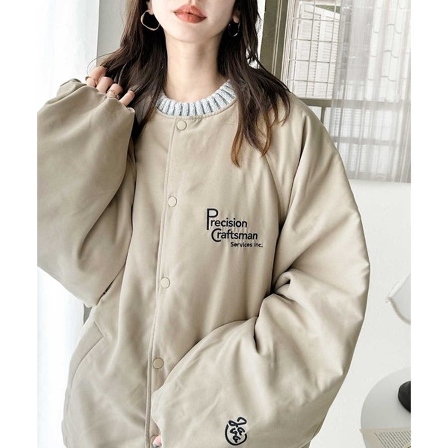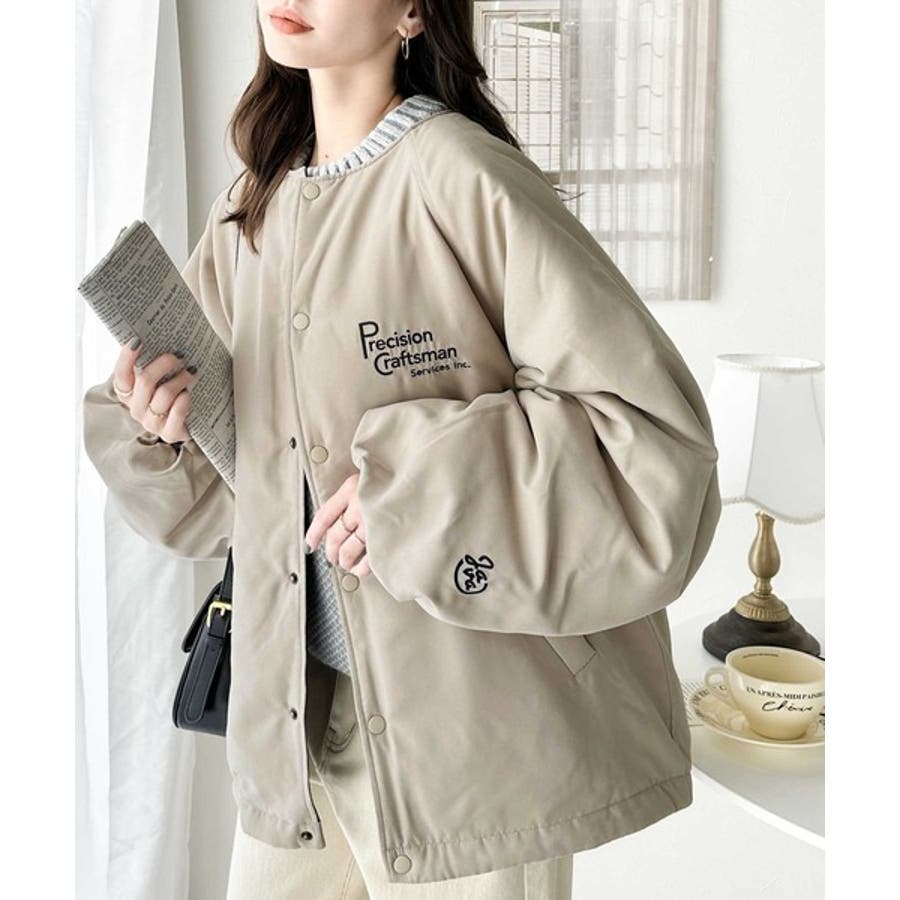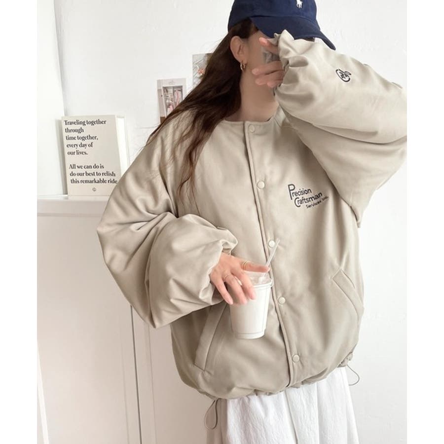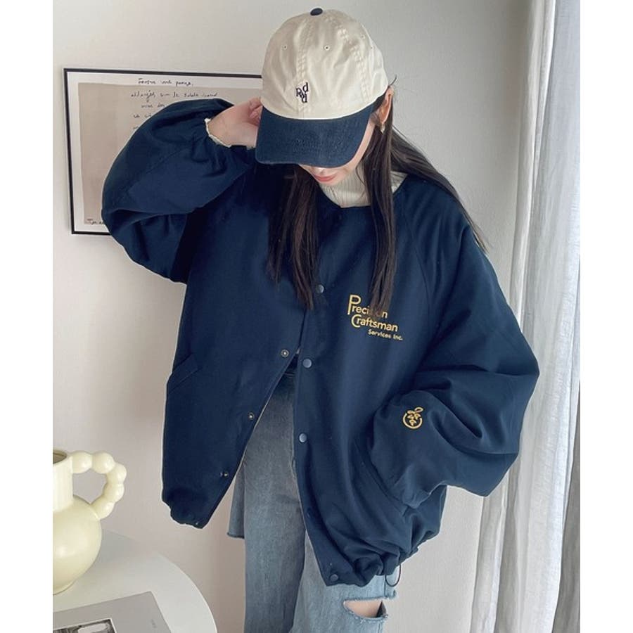 《JAVAジャバ 別注》ロゴ刺繍中綿ノーカラーブルゾン
