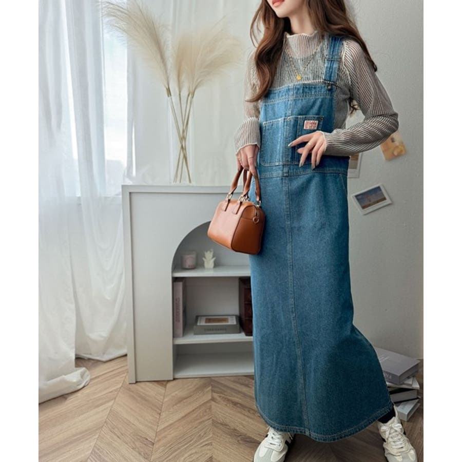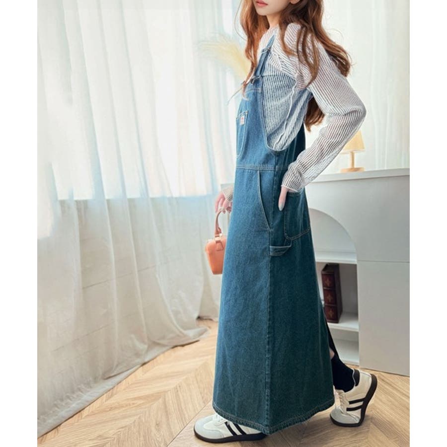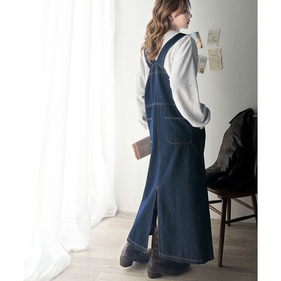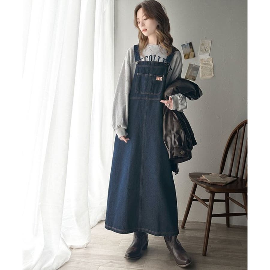 大人のリラックスカジュアル。綿100%ペインターロングデニムジャンパースカートサ…