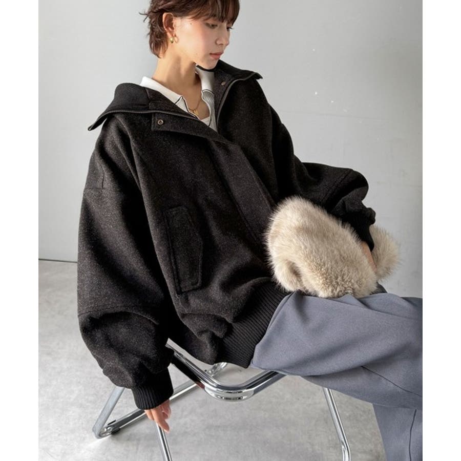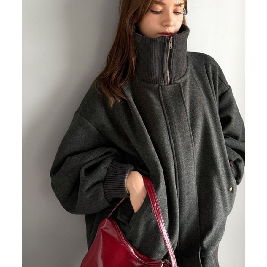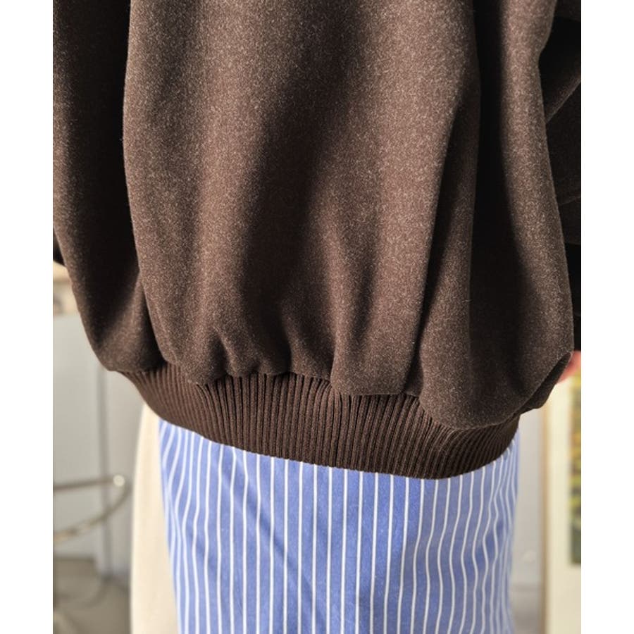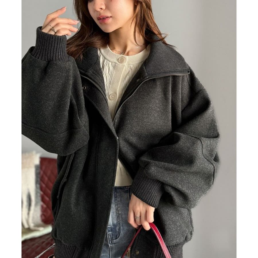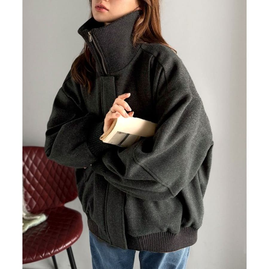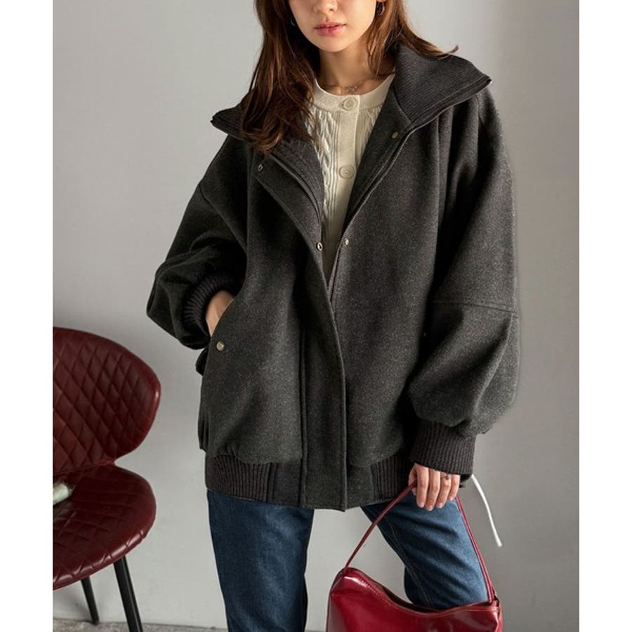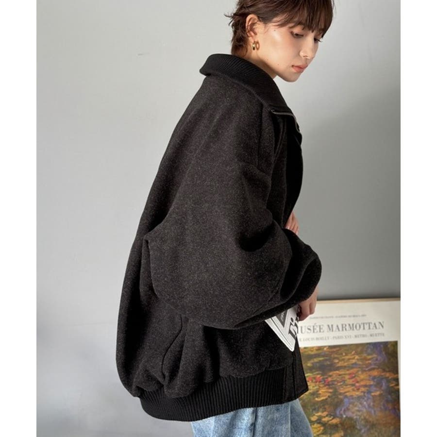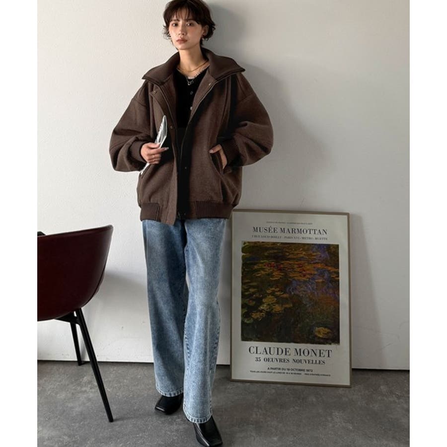 【ブラウン】デイリーに輝く一着! 襟リブニットメルトン比翼ブルゾン オーバーサイズ