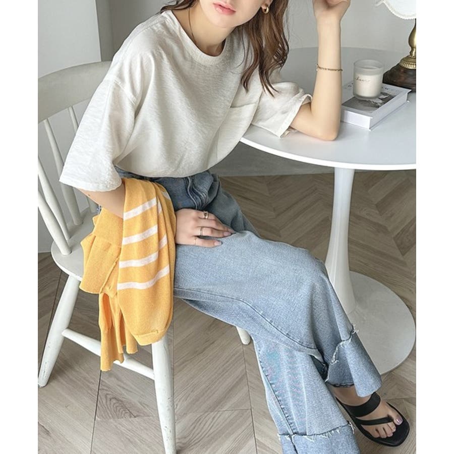ゆったりながらも絶妙な丈感でボトムスを選ばない