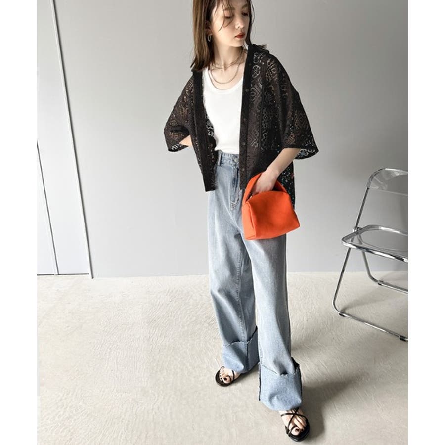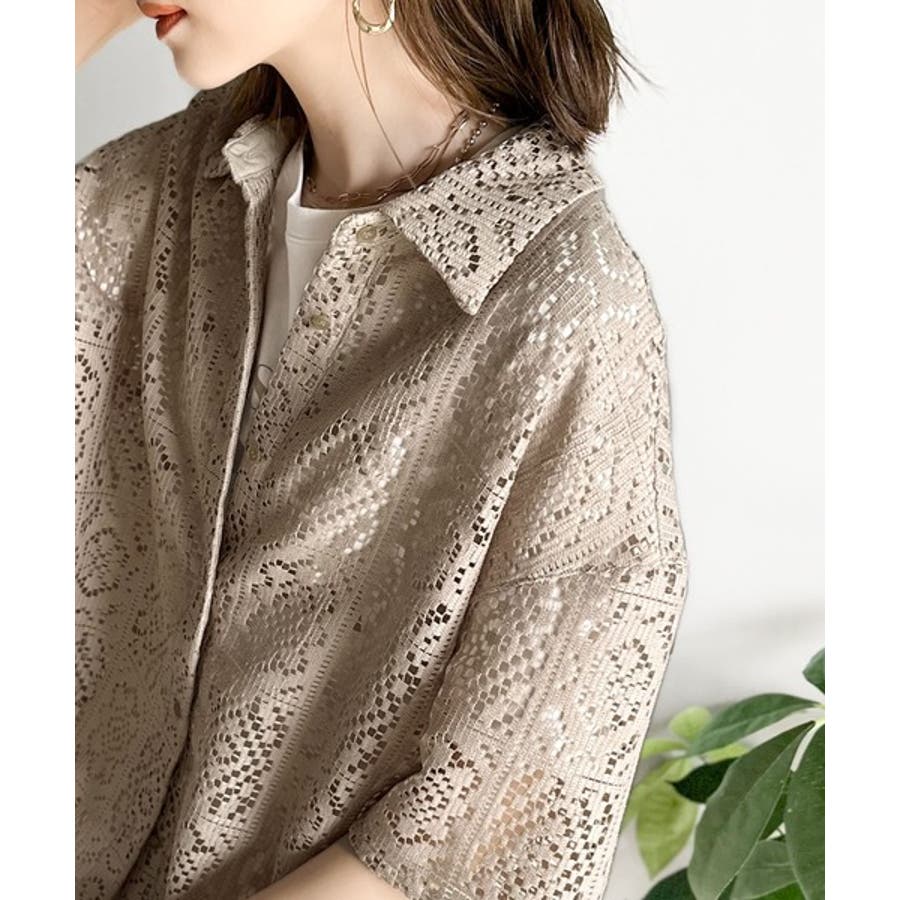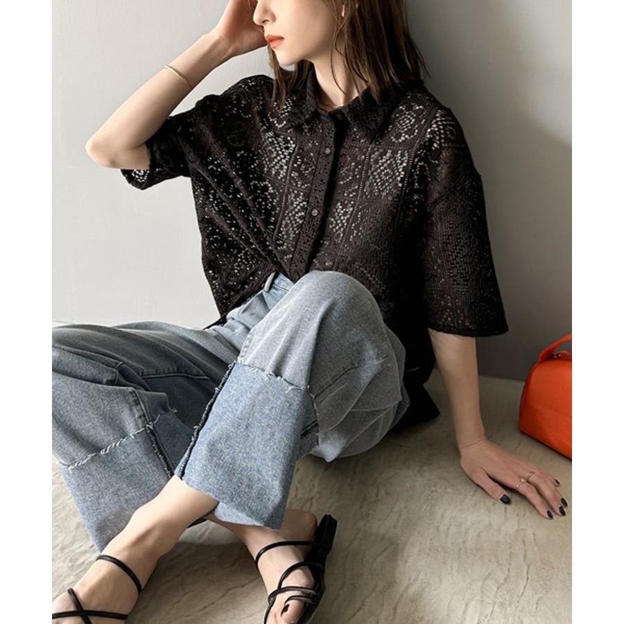 メンズライクなゆったりシルエットも総レースでしっかりカジュアルダウンしてくれます。