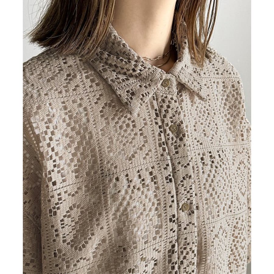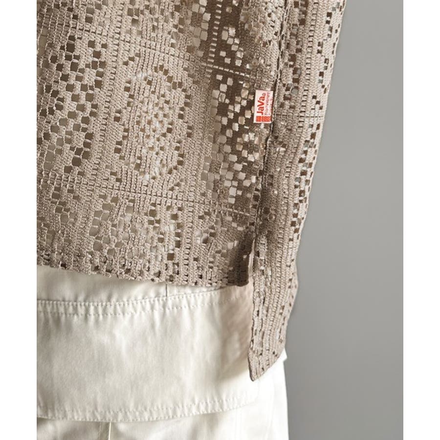 【チャコール】《JaVa ジャバコラボ》大人のクロシェ。ブロックレースブラウス