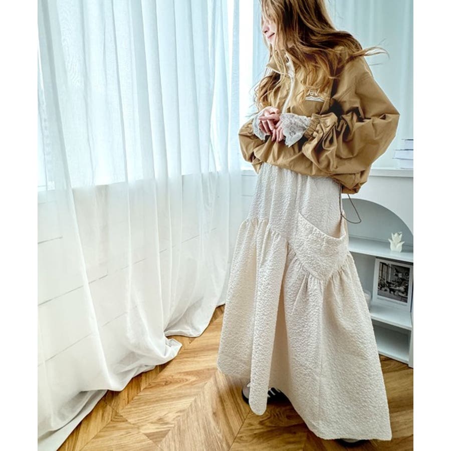 裾のドローストリングで立体的なシルエットが作れ、丈の調節も可能です。