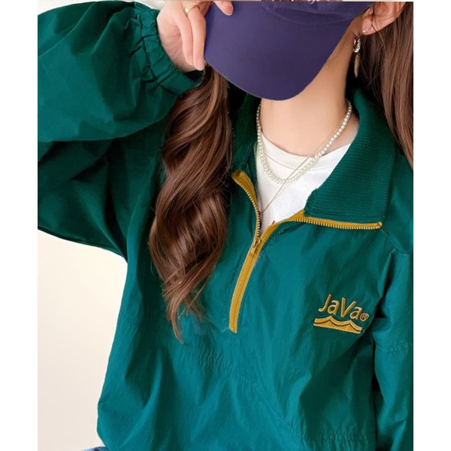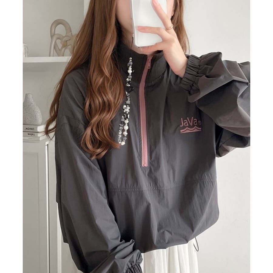 薄手でシャカシャカですが、首元だけ素材が違くて、暖かいです!意外と風除けになって春先とかいいです。ハーフジップなところもオシャレで可愛いです。