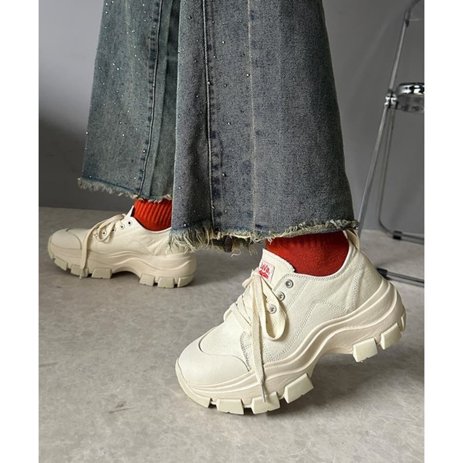 《JaVaコラボ》履くだけスタイルアップ!厚底キャンパスローカットスニーカー