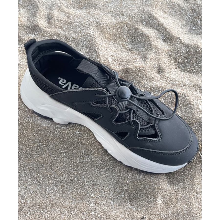 【ブラック×ホワイト】《Javaジャバコラボ》 歩きやすさと抜け感を両立。厚底スニーカーサンダル