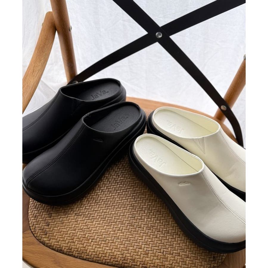 甲のステッチがさりげなく効いたJaVaコラボの厚底サボ。