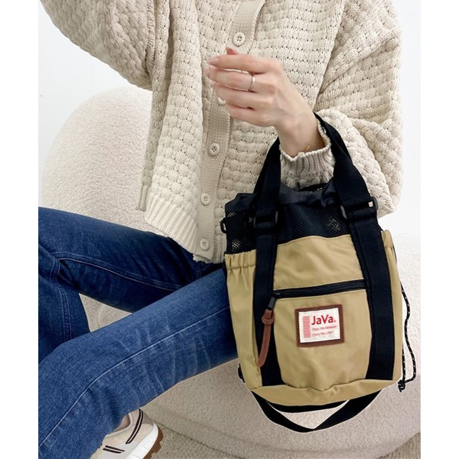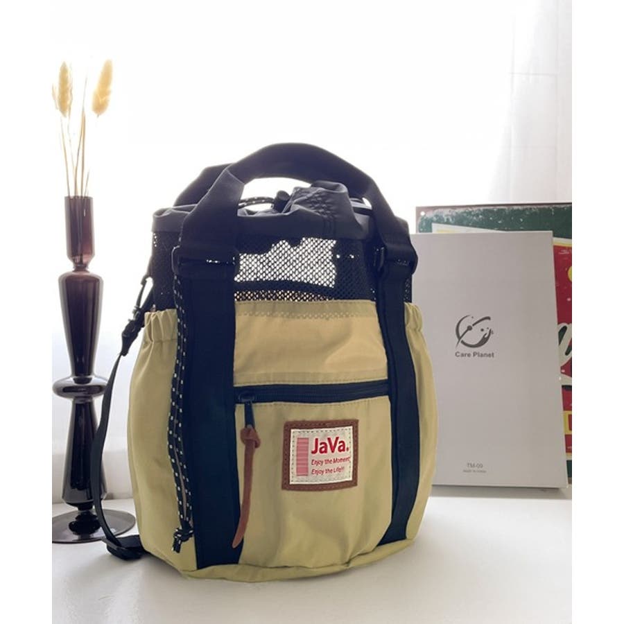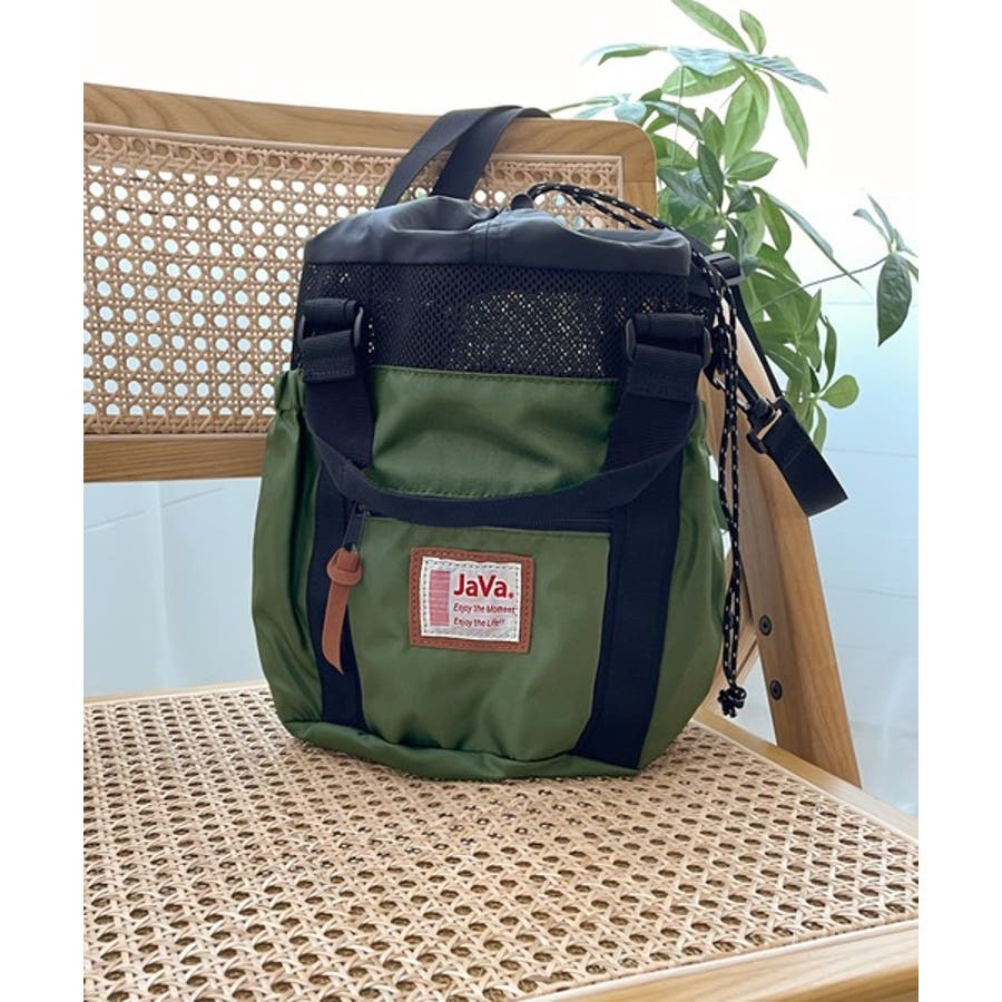 《JaVaジャバ コラボ》ころんと可愛い。2wayアウトドア巾着メッシュバッグ
