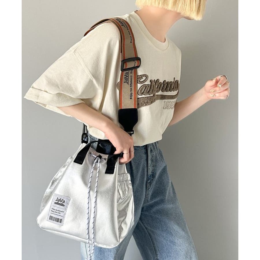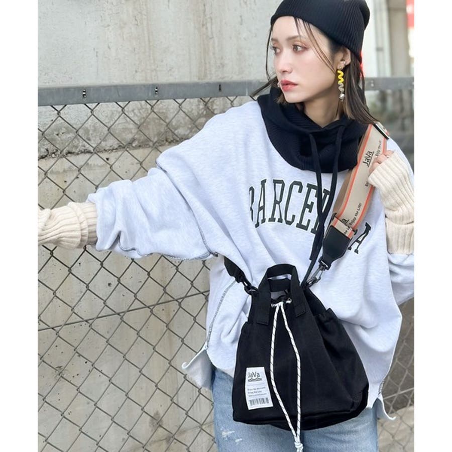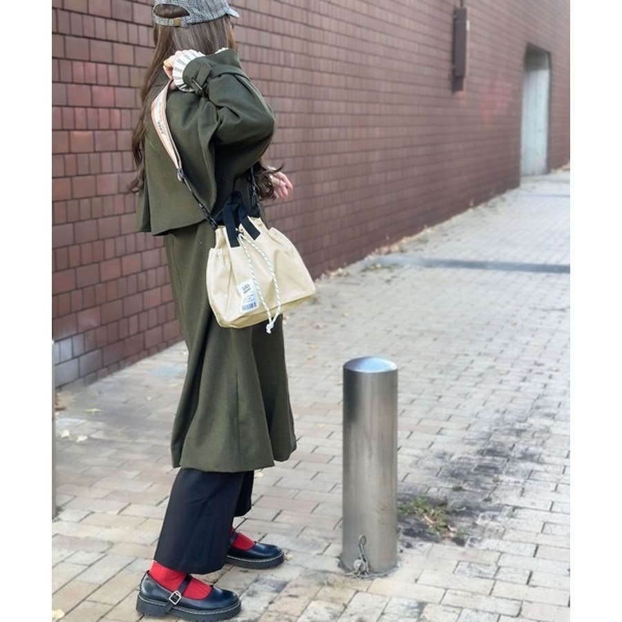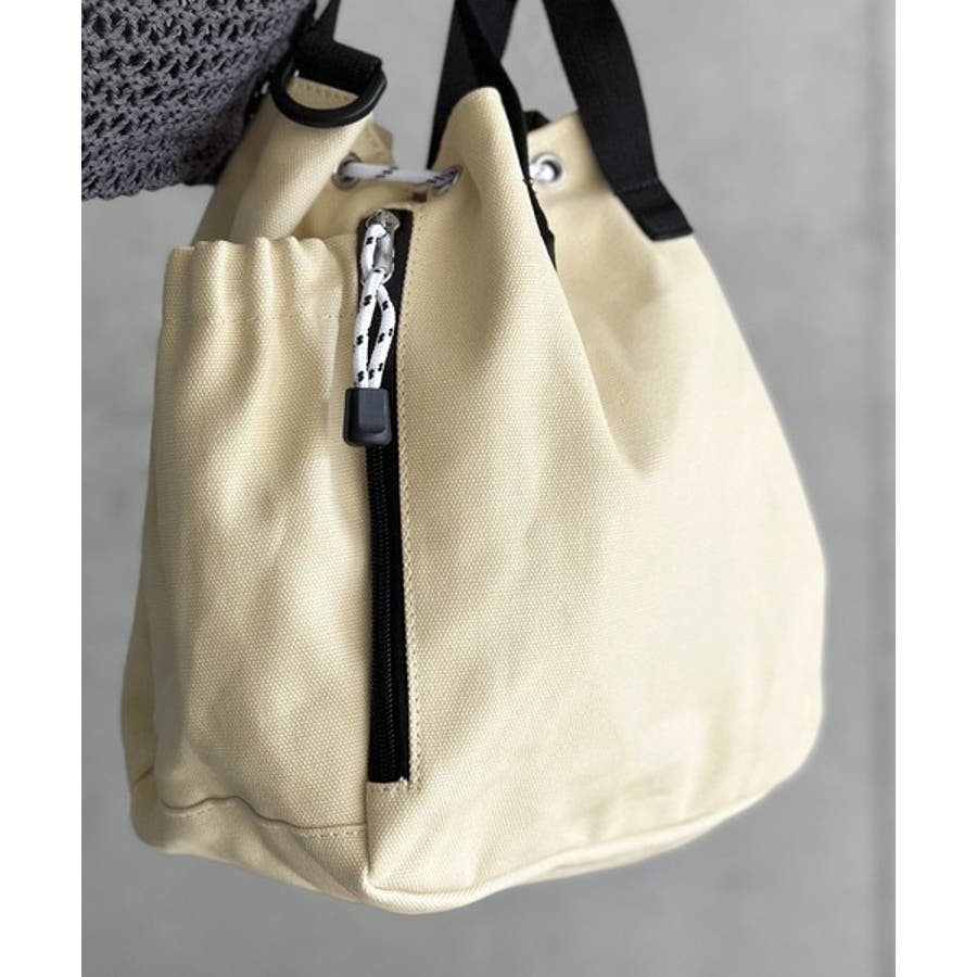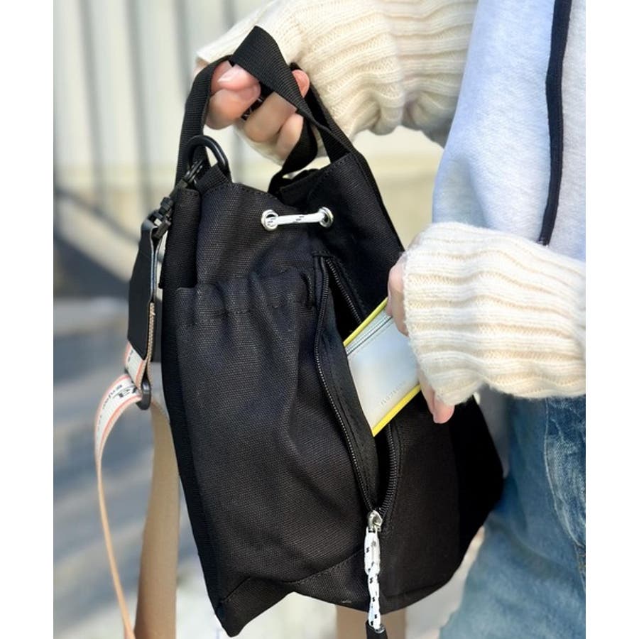 取外し可能なロゴショルダーがポイントの巾着バック。