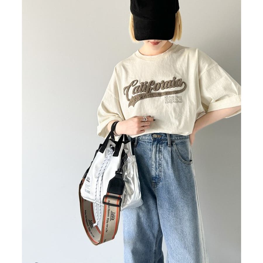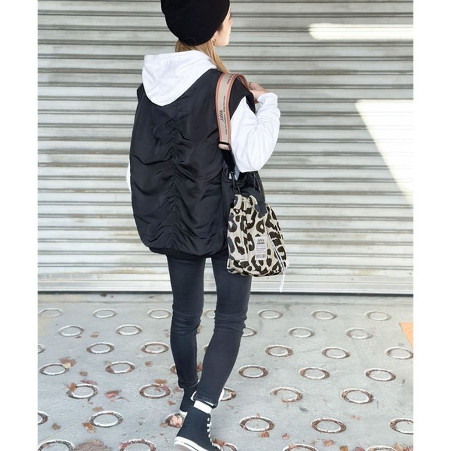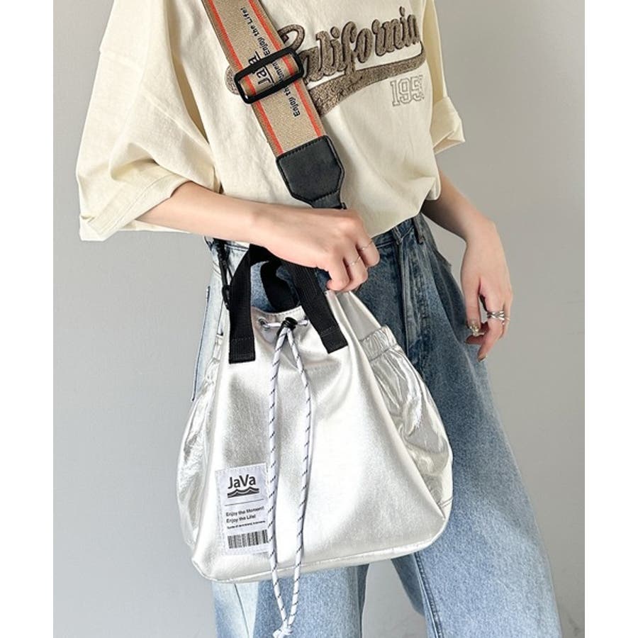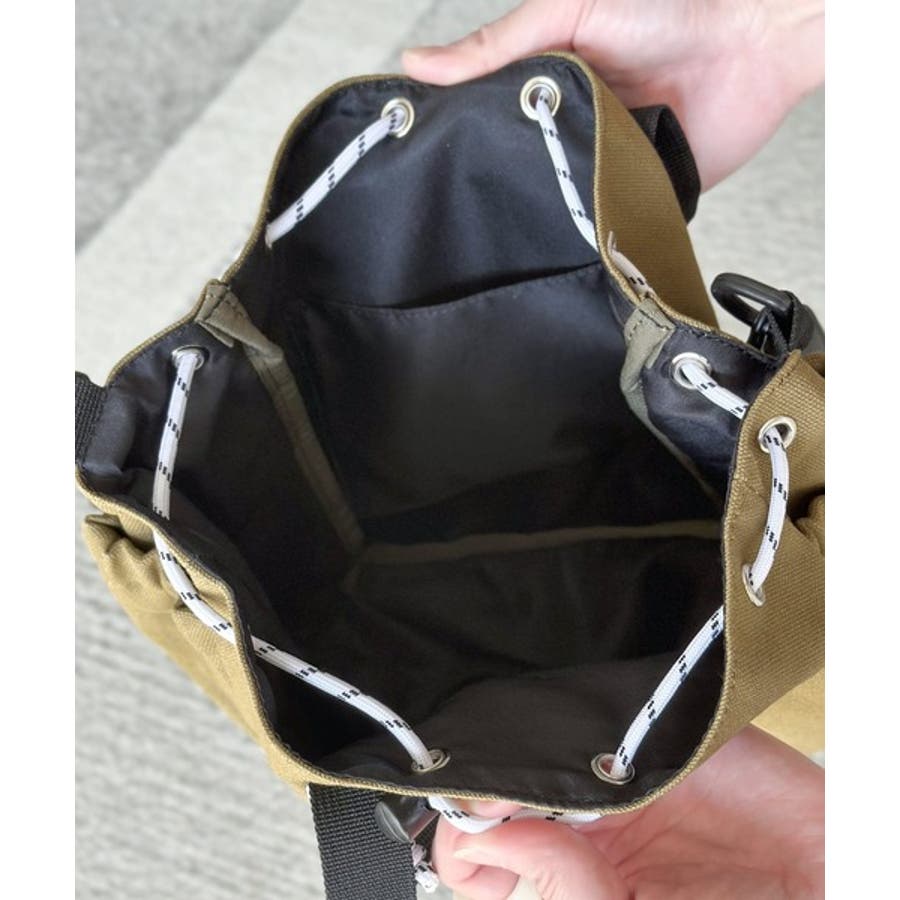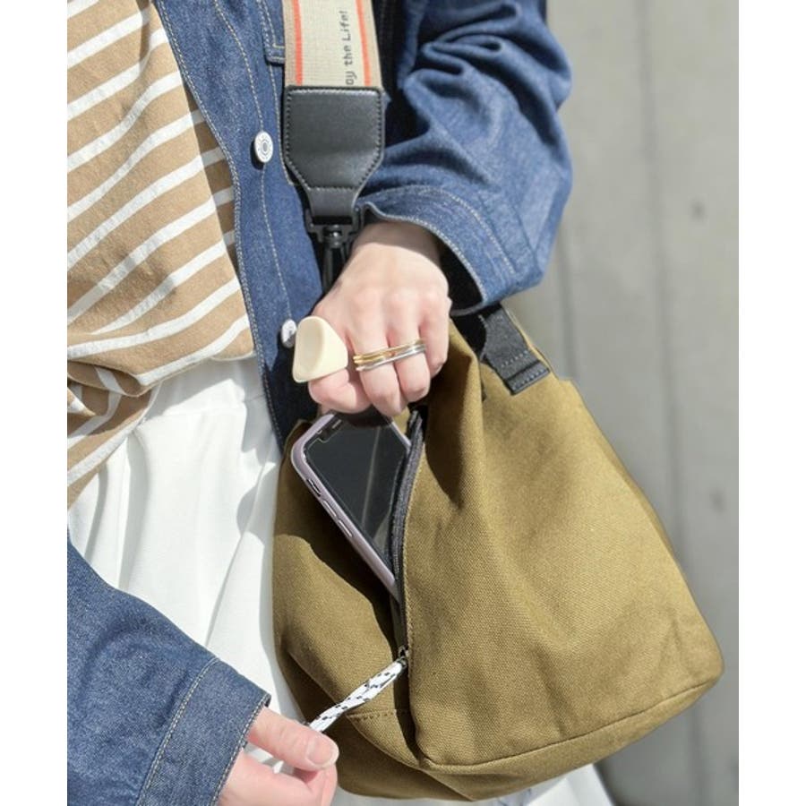 取外し可能なロゴショルダーがポイントの巾着バック。