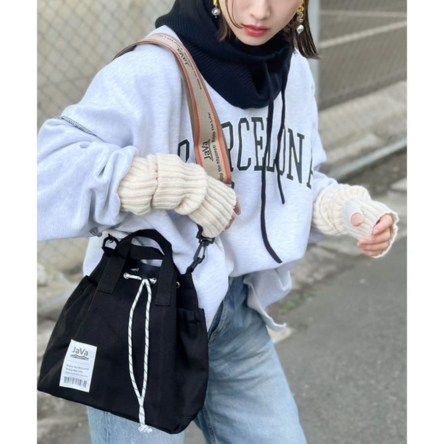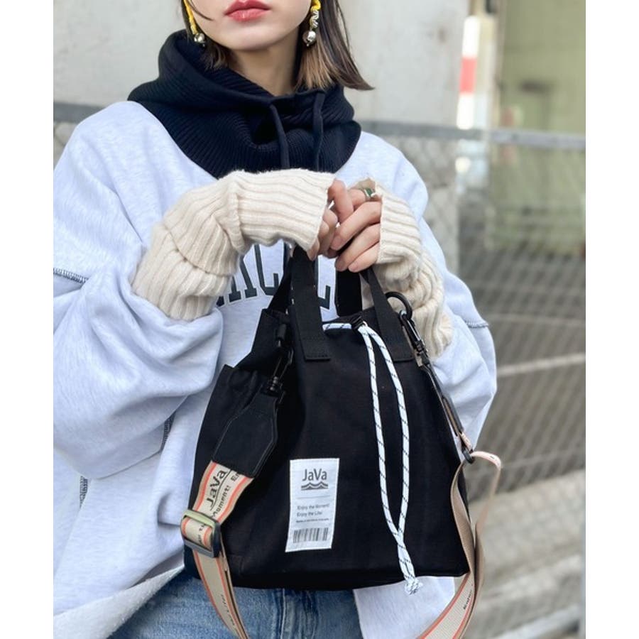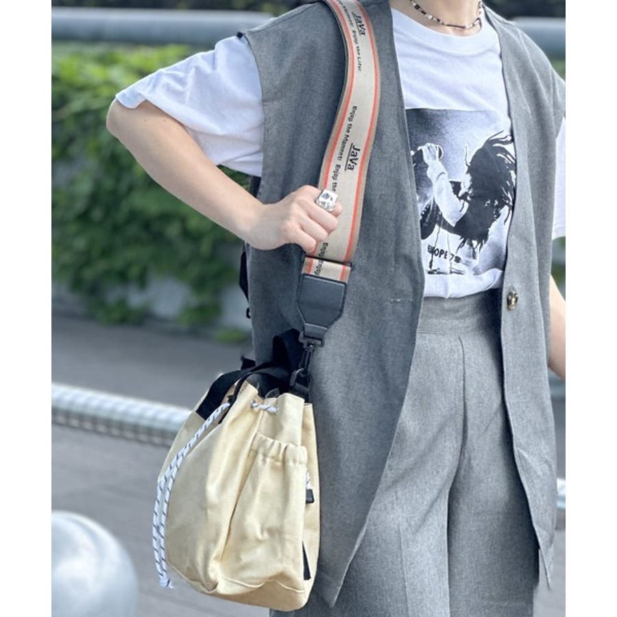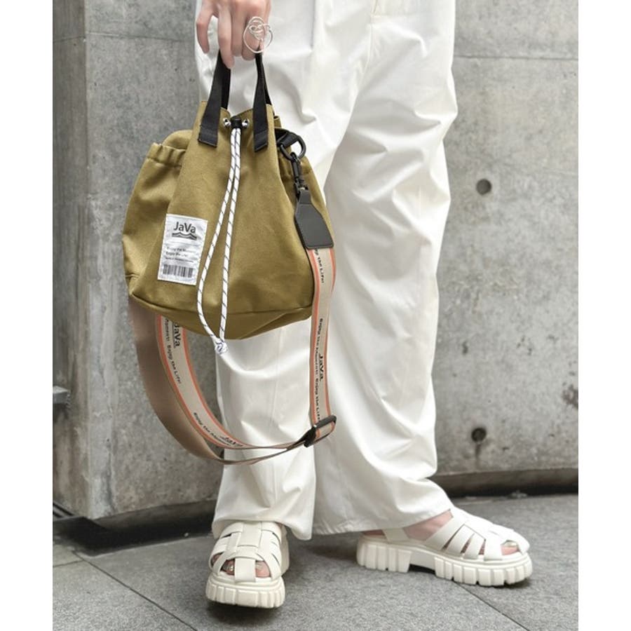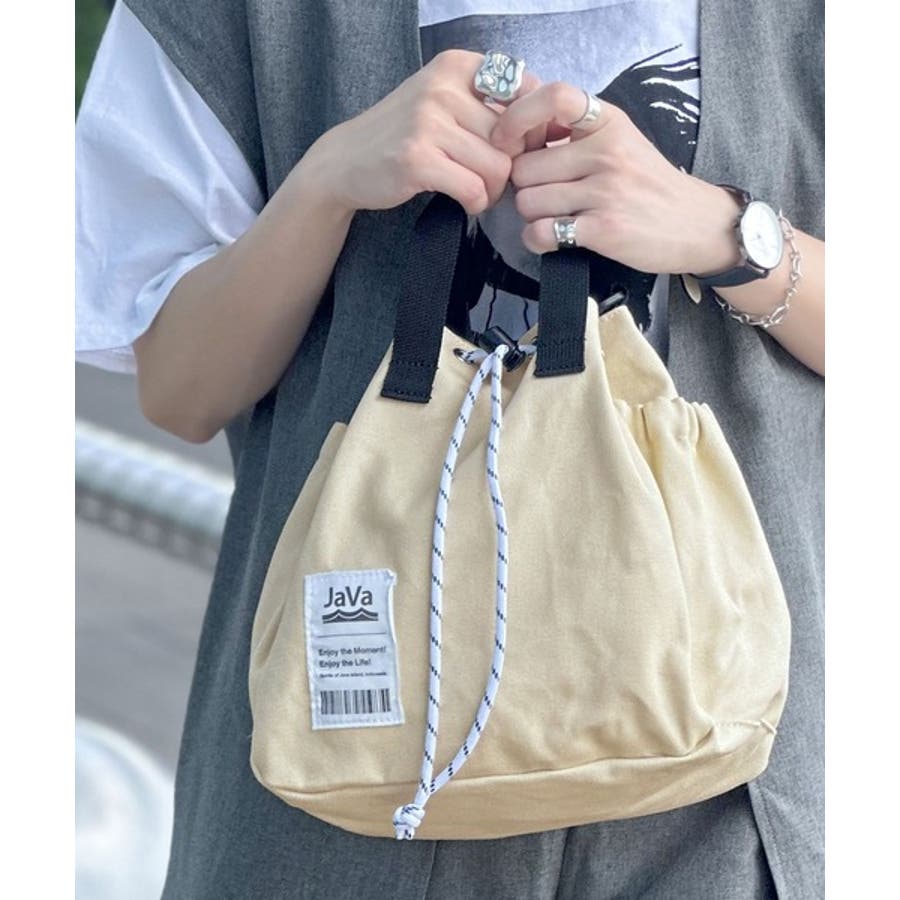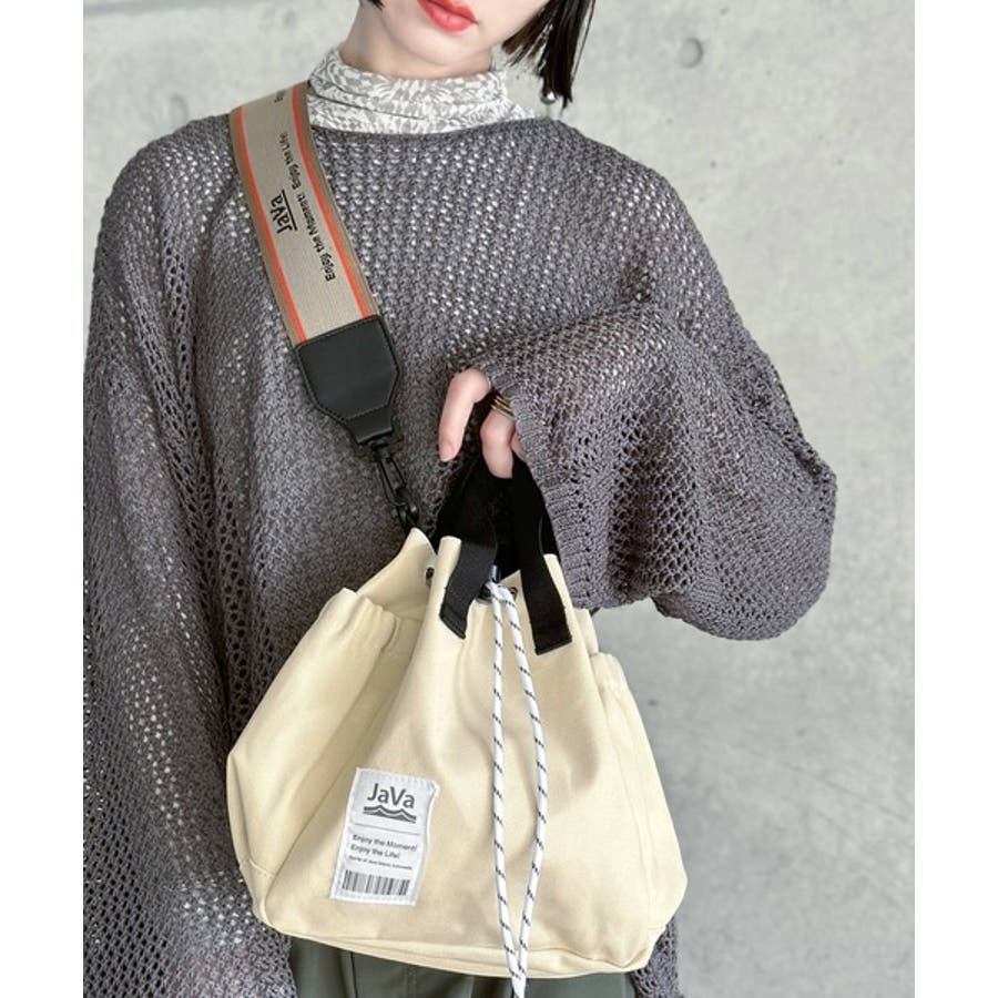 《JaVa ジャバコラボ》お洒落映え。ジャガードテープ2WAY巾着バッグ